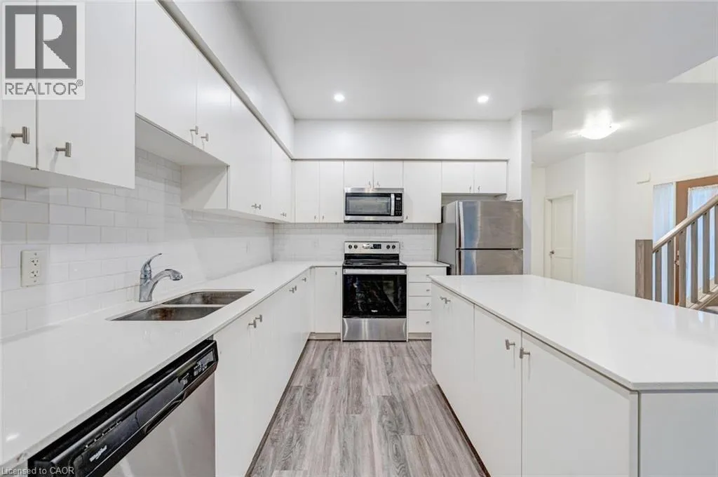 From HWY 7/8 EXIT Weber St head north then hang right on Fergus Ave Cross St: Weber St & Fergus Ave Discover modern urban living at its finest in this stunning corner 3-bedroom, 2-bath townhome at 110 Fergus Avenue Unit #40, Kitchener â a rare gem in an exclusive block of just three! Boasting 1,495 sq. ft. of stylish living space, this semi-like end unit features a versatile main-floor bedroom, a bright open-concept layout with 9-ft ceilings, a sleek kitchen with granite countertops, stainless steel appliances, modern backsplash, and a beautiful centre island. Enjoy the warmth of quality wood-grain vinyl flooring, a walk-out patio perfect for entertaining, and the convenience of no sidewalk. Ideally located in the heart of Kitchener, just off Hwy 8 and minutes to the 401, GO Station, Google, Shopify, and top schools including the University of Waterloo, Wilfrid Laurier University, and Conestoga College â this home offers the perfect blend of comfort, style, and unbeatable location! (id:27476)