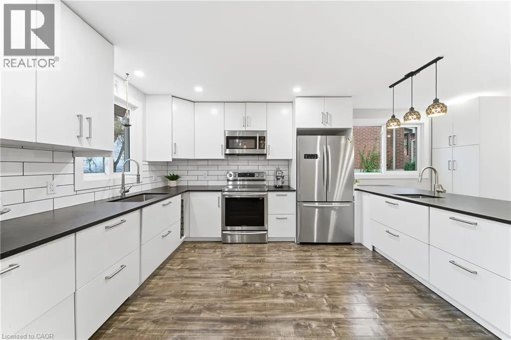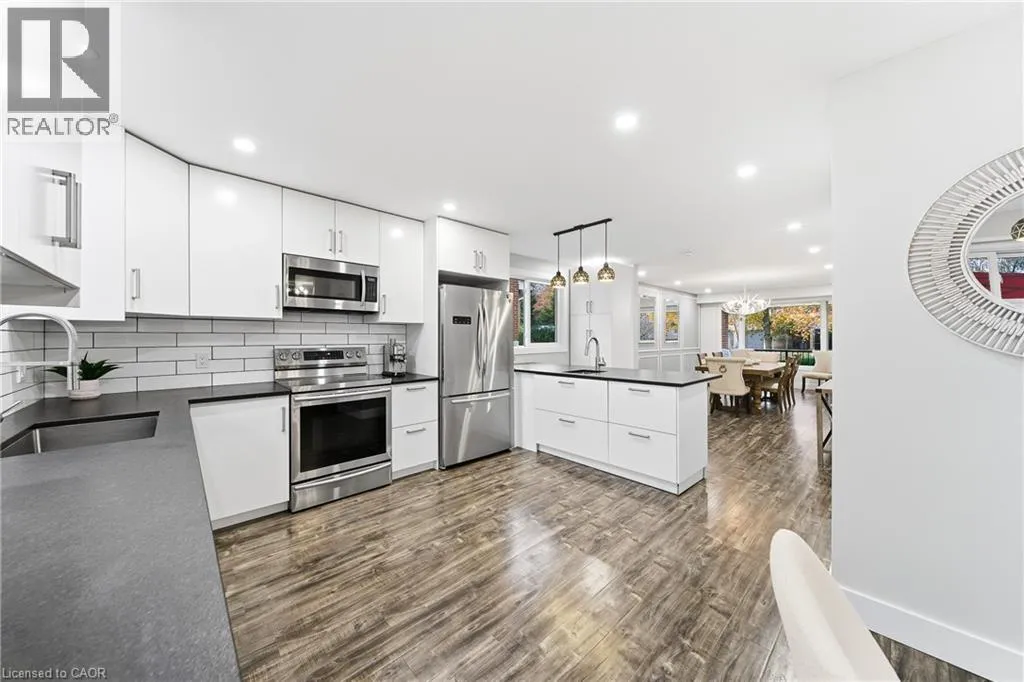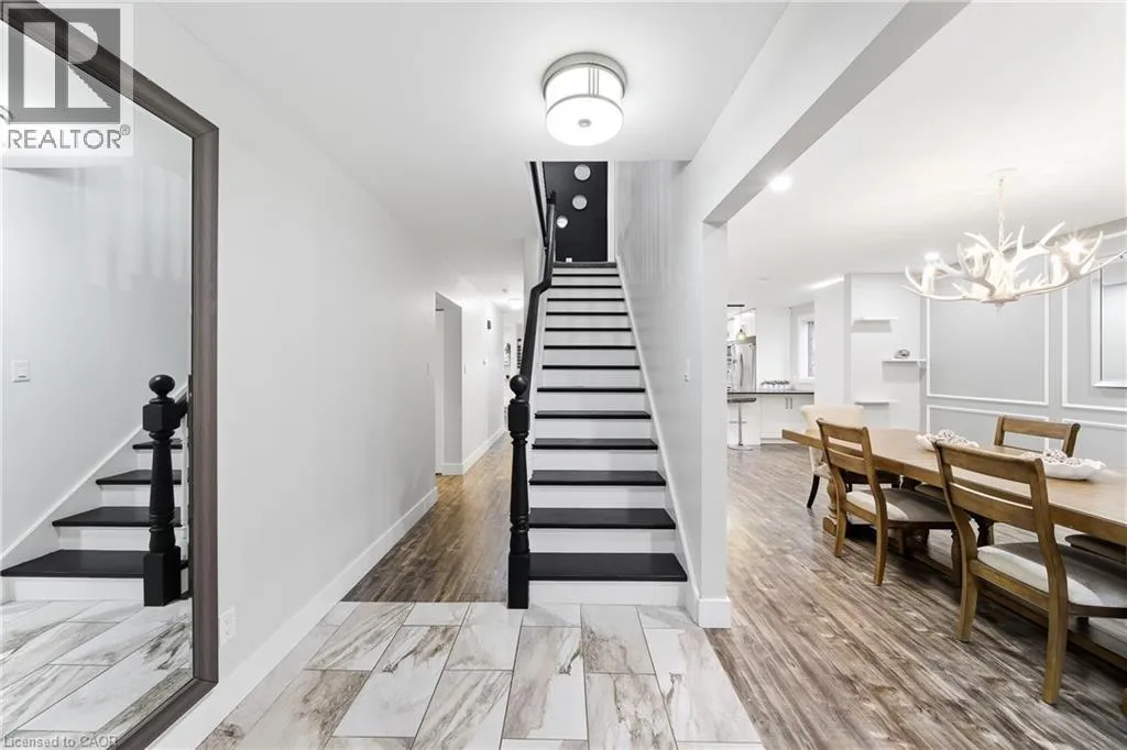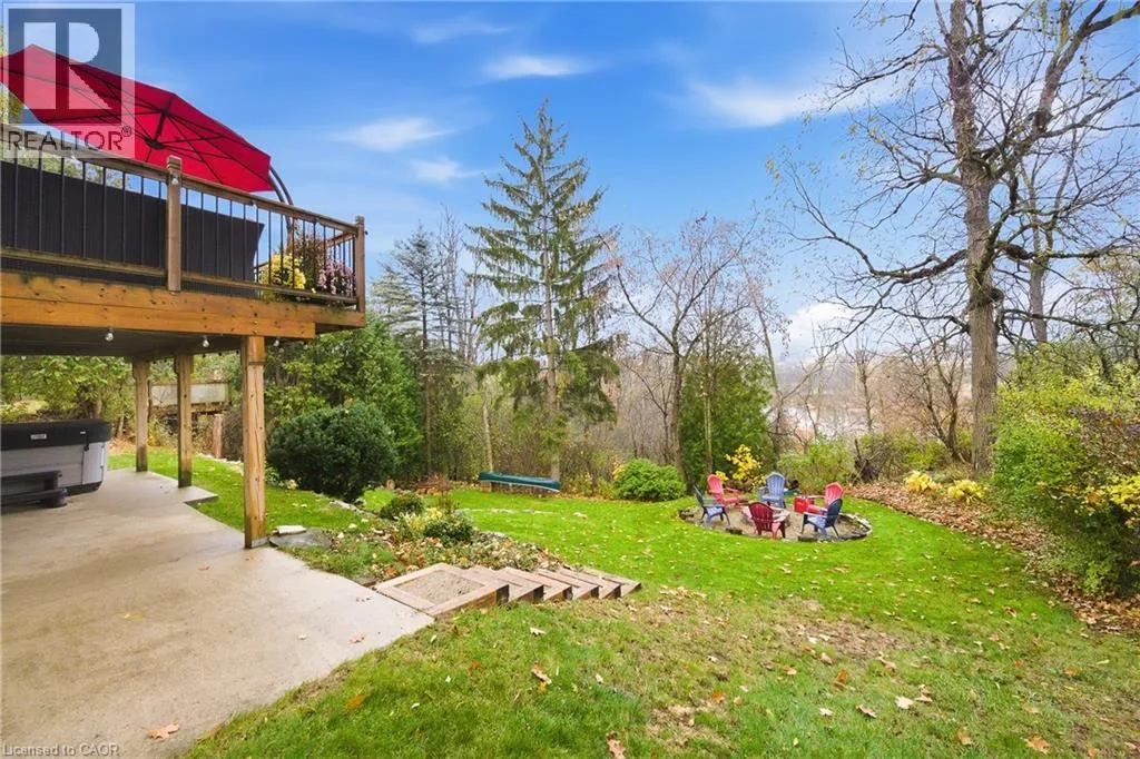 King Street E to Stonegate Drive Welcome to 23 Stonegate Drive - a fully renovated family home offering over 2,900sqft of finished living space. Featuring 5 bedrooms, 3.5 bathrooms, and a fully finished walkout basement, this home perfectly combines modern design with a rare natural backdrop. With no rear neighbours and breathtaking views of the Grand River, it offers both privacy and serenity. Every detail has been thoughtfully updated - flooring, trim, doors, lighting, kitchen, bathrooms, and appliances - creating a fresh, contemporary aesthetic throughout. The main floor showcases an impressive kitchen with granite countertops and generous cabinetry, an inviting dining area with a bay window, and a bright living room that opens onto an elevated deck overlooking mature trees. A convenient main-floor laundry room and a 2-piece powder room complete the space. Upstairs, youâll find four spacious bedrooms and two beautifully renovated bathrooms, including a serene primary suite designed for relaxation. The walkout lower level expands your living space with a large recreation room, cozy gas fireplace, fifth bedroom, updated 3-piece bathroom, and a covered patio leading to your private trail down to the river. Step outside and enjoy the outdoors right from your backyard - walk the river trails, launch a canoe, or simply take in the tranquil views. All this, just minutes from shopping, skiing, highway access, and more. (id:27476)