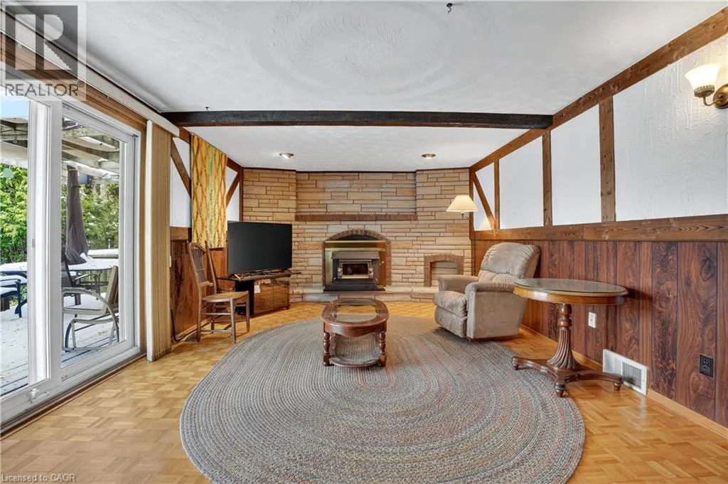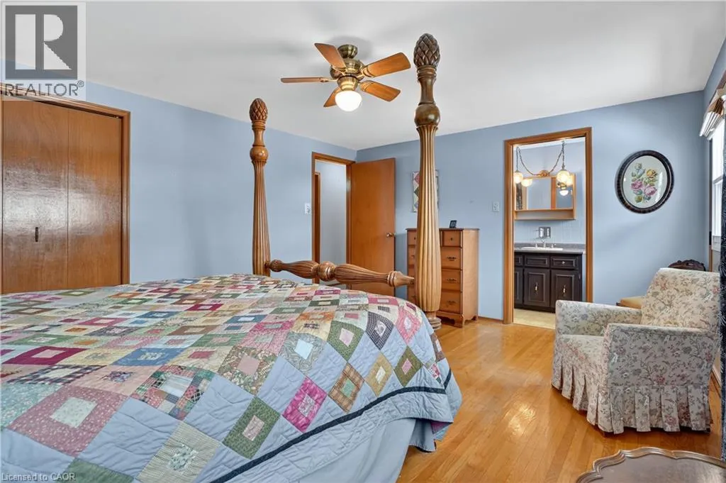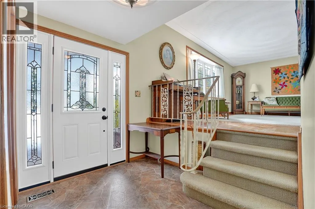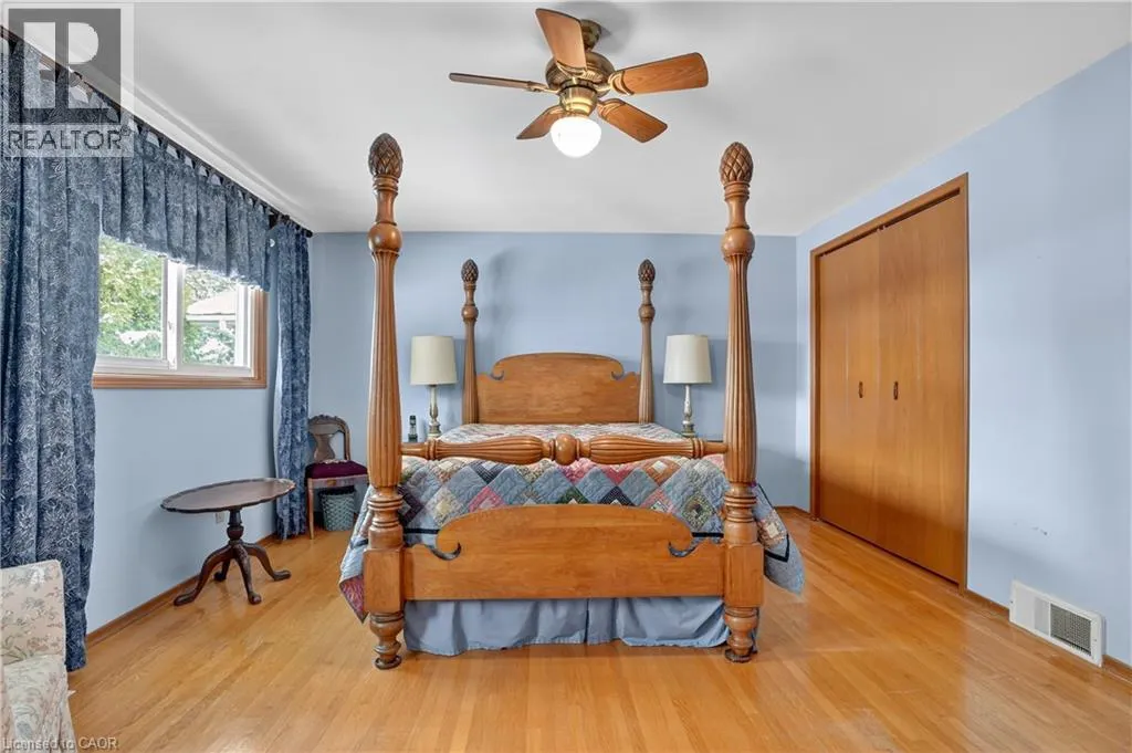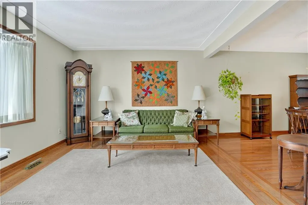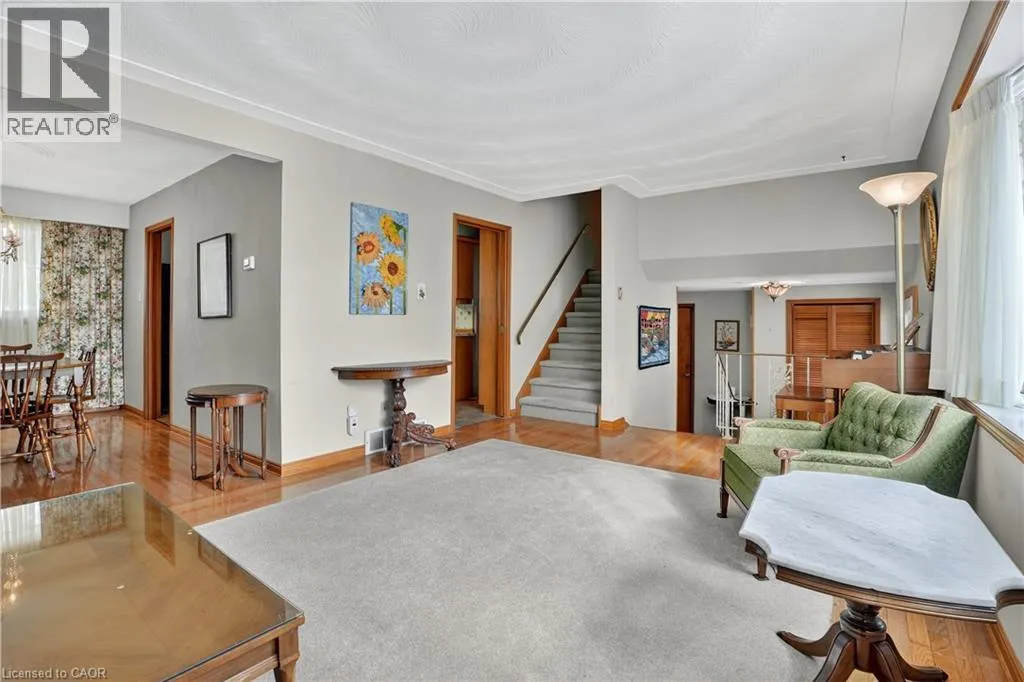 Williamsburg Road to Wilkins Drive. This clean well cared for home has had the same owner for over 30 years. Time for a new family to make memories in this large multi level home, located on a quiet street, yet walking distance to to every amenity. This home was built with quality materials that can't be matched today, like plaster construction, hardwood floors, and old school workmanship. Upstairs are 3 oversized bedrooms. The primary has its own en-suite bath plus a balcony. The kitchen has lots of cupboards and the appliances are included. The large family room has wood stove insert walkout to a beautiful yard and an extra bathroom. The furnace and central air conditioning have been updated. The home is situated on a huge 62 ft by 125 ft deep lot that today would be 2 building lots. Enjoy the privacy of the mature trees and abundance of space. (id:27476)