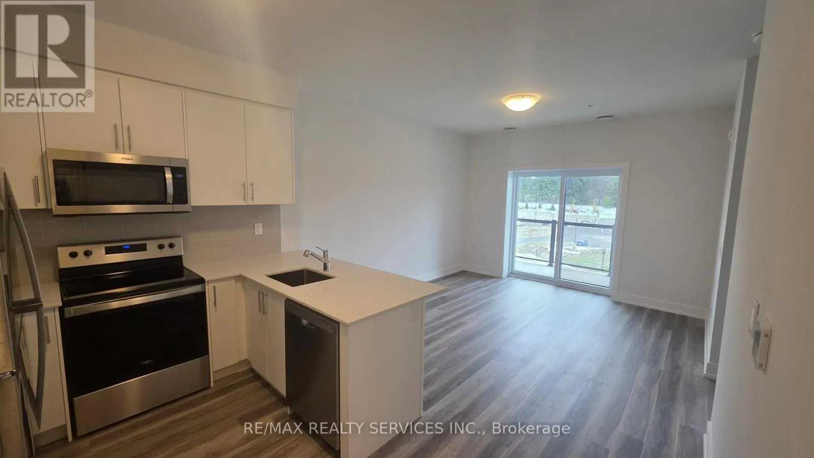 Lackner Blvd & Ottawa St. N HIGHER FLOOR ONE BEDROOOM. Experience upscale Urban Living in this beautifully finished unit featuring 9' ceilings and floor to ceiling windows that fill the space with natural light and offer spectacular South Views. This bright and stylish unit features a spacious open concept layout, a sleek modern kitchen with stainless steel appliances, a cozy living area, and a private balcony- perfect for enjoying your morning coffee or unwinding after a long day. Enjoy in suite laundry , a dedicated parking space, and a private storage locker in a secure, newly constructed building with excellent amenities, including a multi-purpose party room. Ideally located for those who value both convenience and comfort, you're just minutes from Walmart, Costco, Superstore. and Canadian Tire, and within walking distance of Food Basics, Dollarama and Rexall. With easy access to Highways 7,8 and 401, as well as Grand River Transit (GRT), commuting is effortless. Plus, you're only a short drive from the GO Station. (id:27476)