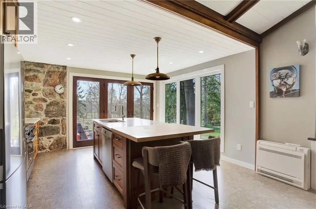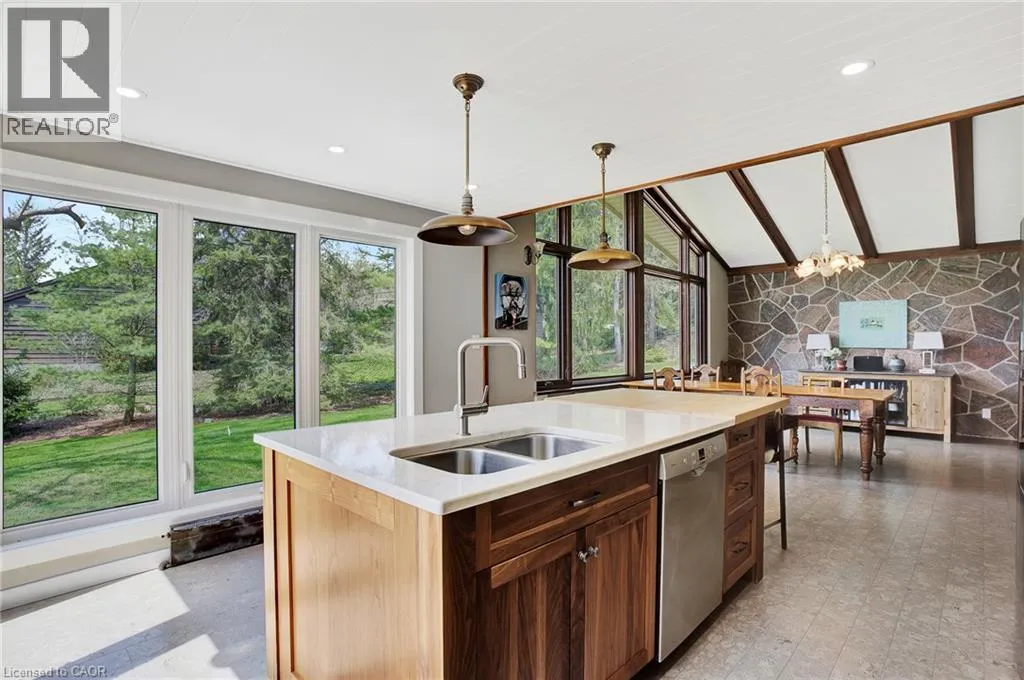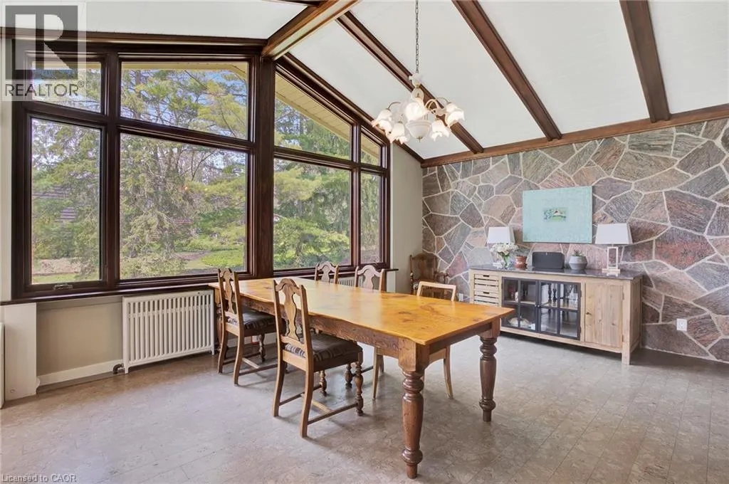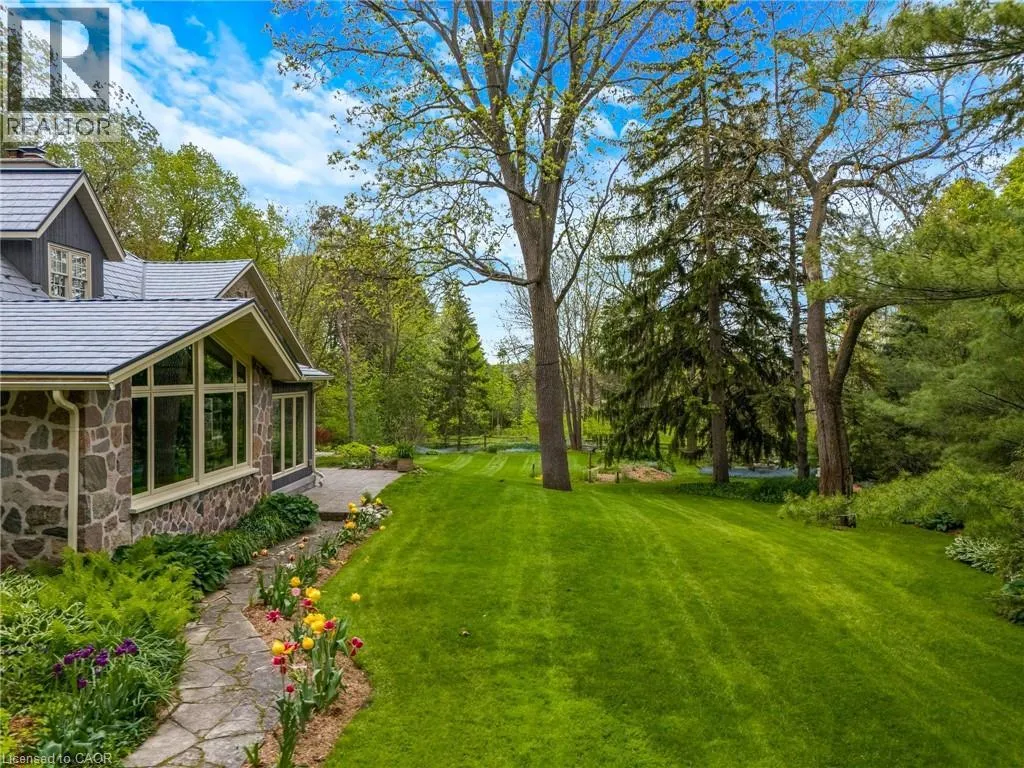 Grandhill Drive/Deer Ridge Drive A RARE PIECE OF HISTORY MEETS MODERN COMFORT â WITH UNMATCHED AMENITIES. Welcome to one of the regionâs original stone homesâan enchanting fusion of old-world charm and modern convenience, set on just under an acre of lush, private grounds. Nestled within The Kirksway, an 18-acre community of shared land, this remarkable property offers not only over 3,700sqft of living space but also access to exclusive amenities: scenic walking trails, a tennis court, a serene swimming pond, and a private beachâa lifestyle immersed in nature. This 4-bedroom, 3-bathroom residence tells a story of timeless craftsmanship and thoughtful updates. Mature trees line the property, offering a natural canopy and sense of tranquility from the moment you arrive. Inside, history lives in the detailsâexposed stone walls, warm wood finishes, and a stunning teak-walled family room that radiates character. Natural light flows through expansive windows, highlighting each roomâs unique personality. The sunroom, with panoramic views of the grounds, invites you to sip your morning coffee or entertain guests in style. Just steps away stands the original smokehouseâa charming nod to the past, now transformed into a workshop, art studio, or the ultimate retreat. Set on .96 acres, thereâs room to dream: build a garage, design a pool, or simply enjoy the peaceful seclusion. Major renovations between 2016â2025 include a custom stone addition, new vaulted roofline, metal shingles (2022), insulation, electrical, plumbing, and heating overhauls. Noteworthy features: ductless cooling (2020), new boiler (2021), windows/doors (2017 & 2025), 200AMP panel, on-demand water heater, UV filter and charcoal filter, water softener, and iron filter. This is more than a homeâitâs a legacy, a lifestyle, and a rare opportunity to own a piece of history in a truly one-of-a-kind setting. Garage drawing to show potential for future - attached plans. (id:27476)