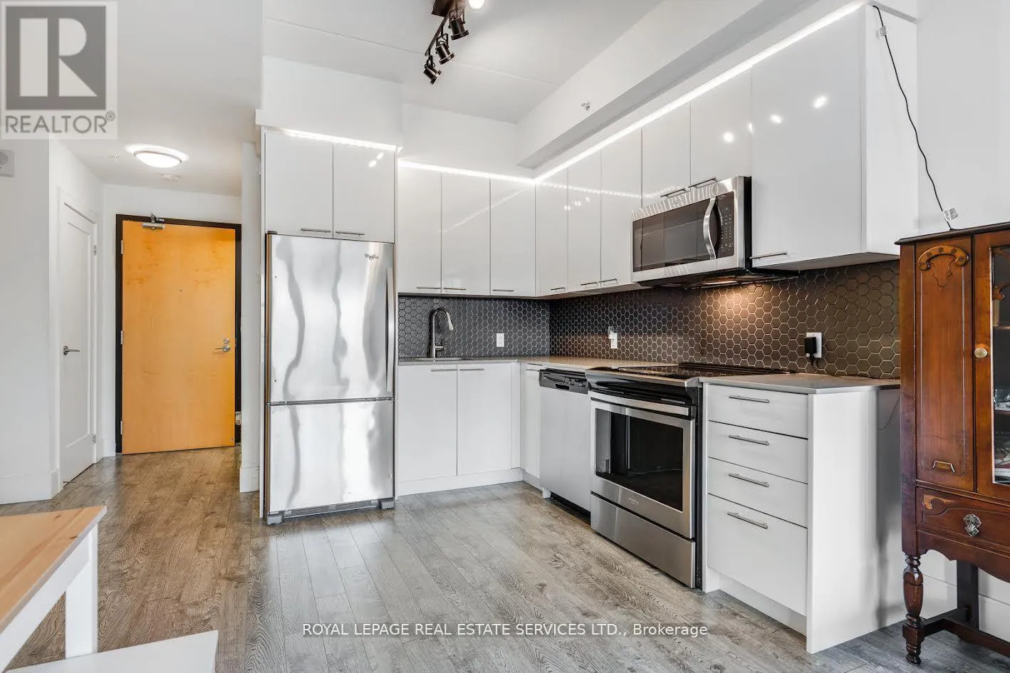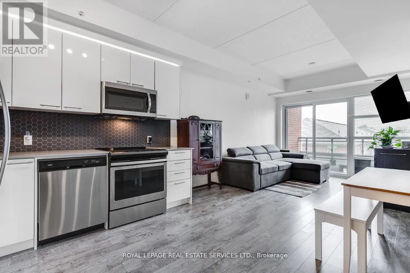 Cross Streets: GUELPH ST & LEGER ST. ** Directions: -. BRIGHT AND SPATIOUS 1 + DEN MODERN CONDO W/ 2 FULL BATHROOMS LOCATED IN VICTORIA COMMONS. STUNNING FLOOR TO CEILING WINDOWS. KITCHEN INCLUDES SLEEK CABINETS AND STAINLESS-STEEL APPLIANCES. BEDROOM OFFERS ENSUITE BATHROOM. DEN CAN BE USED AS 2ND BEDROOM. LAMINATE FLOORING THROUGHOUT. AMENITIES INCLUDE GYM, PRIVATE PARTY ROOM AND OUTDOOR RECREATION AREAS. (id:27476)