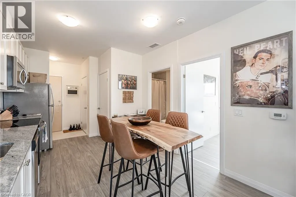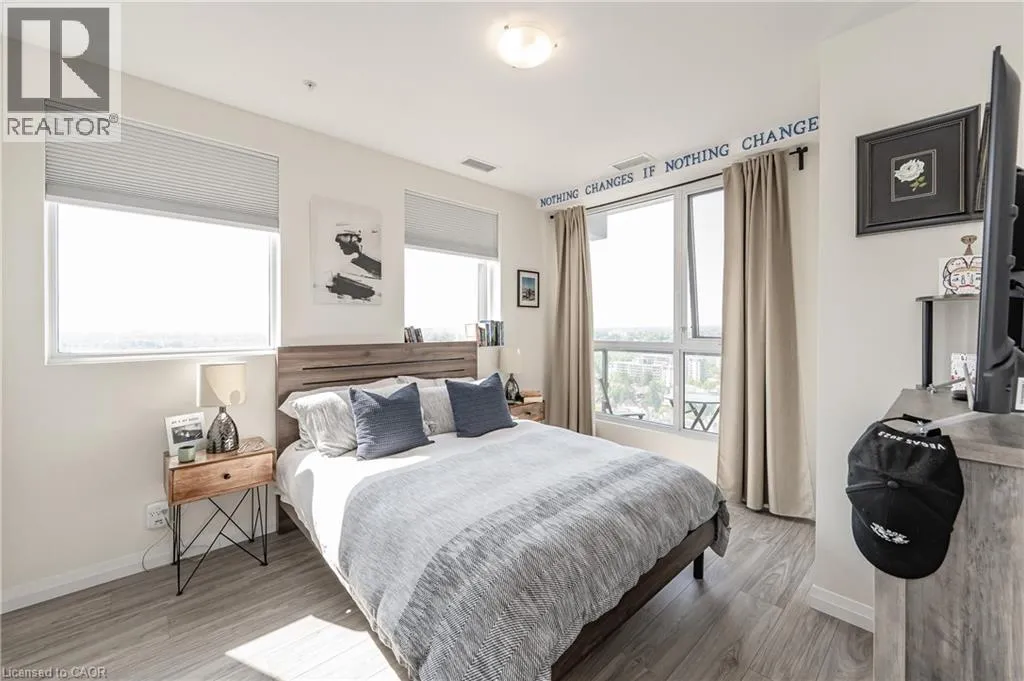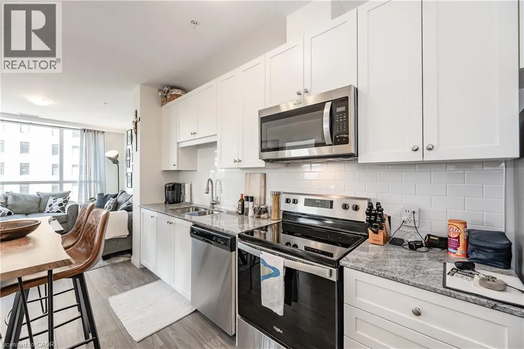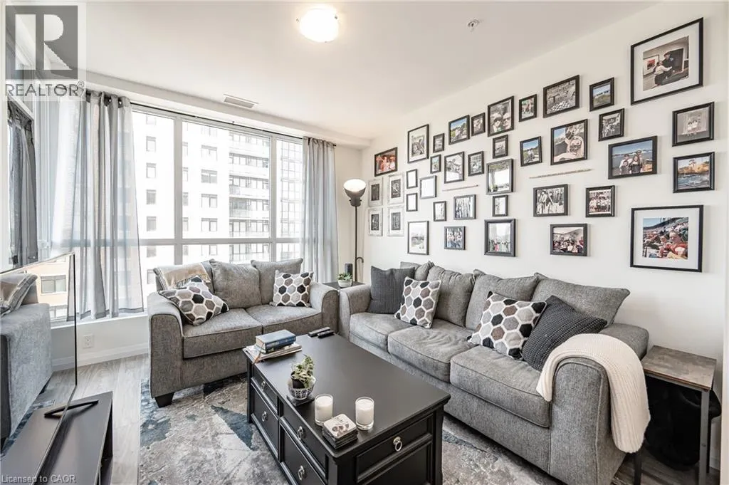 VICTORIA STREET TO CHARLES STREET Elevate your lifestyle & immerse yourself in the epitome of urban living at Garment Street Condos. Prepare to be captivated by this remarkable 1 bed/1 bath condo spanning 647 SF. Situated in the heart of the vibrant DTK, this SE-facing corner unit boasts an enviable array of exceptional features. Step inside & discover a thoughtfully designed layout that seamlessly blends functionality/spaciousness. Modern finishes adorn every corner, creating an ambiance of sophistication & style. The well-appointed kitchen effortlessly opens to the inviting living room, forming a harmonious space perfect for entertaining guests. Private balcony, which overlooks Victoria park, allowing you to bask in the fresh air & savor panoramic views. The oversized bedroom easily accommodates a king-sized bed & is complemented by a generous walk-in closet, ensuring ample storage for your belongings. Included is a large 4-piece bath and in-suite laundry. As a bonus, a conveniently situated in-unit storage room. Enhancing the allure of this extraordinary residence, laminate flooring adds a touch of elegance, while floor-to-ceiling windows drench the interior w/ natural light & offer captivating vistas of the nearby Victoria Park. 1 underground parking spot is included. The building itself offers a wealth of amenities, including a well-equipped gym, a vibrant party room, a serene rooftop deck/garden, & a dynamic co-working space. Embrace the ease of high-speed Internet included in the condo fees, ensuring seamless connectivity throughout your home. Unparalleled location, placing you mere steps away from the vibrant downtown Kitchener. Google, KPMG, & Deloitte are in close proximity, alongside the future LRT hub, Go Train station, D2L, Communitech, the School of Pharmacy, the School of Medicine, & a myriad of shops, restaurants, & entertainment options. Garment Street Condos are a top choice for the most discerning tenant (id:27476)