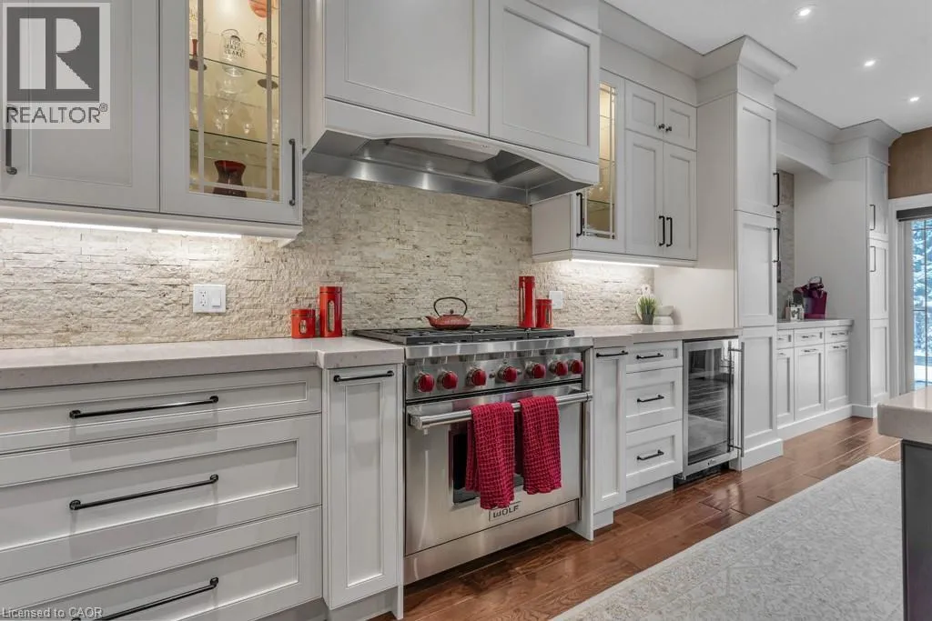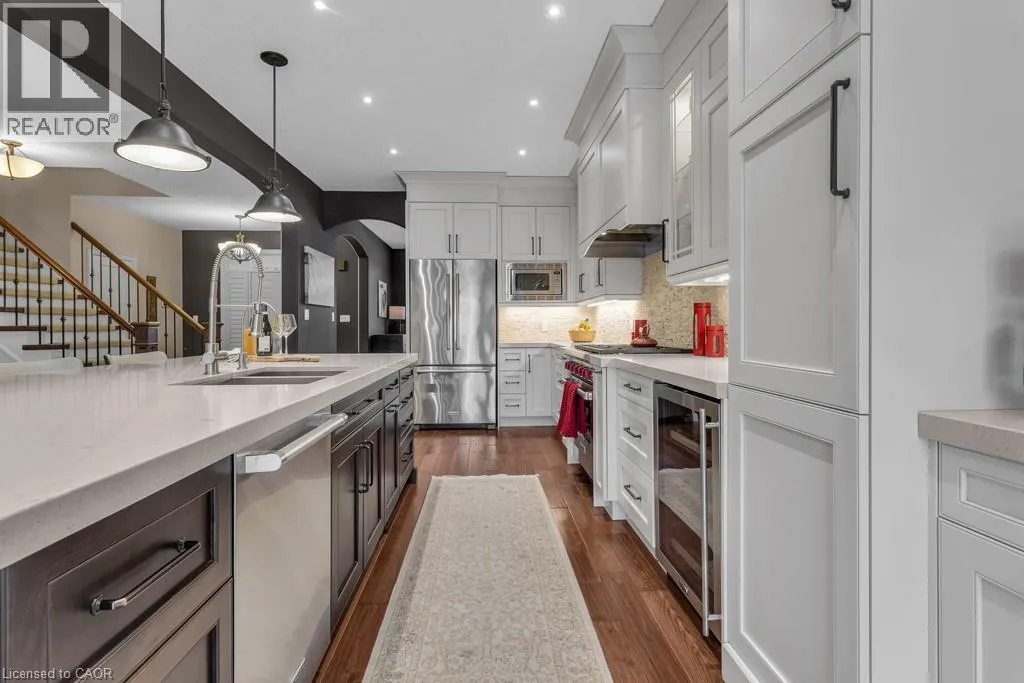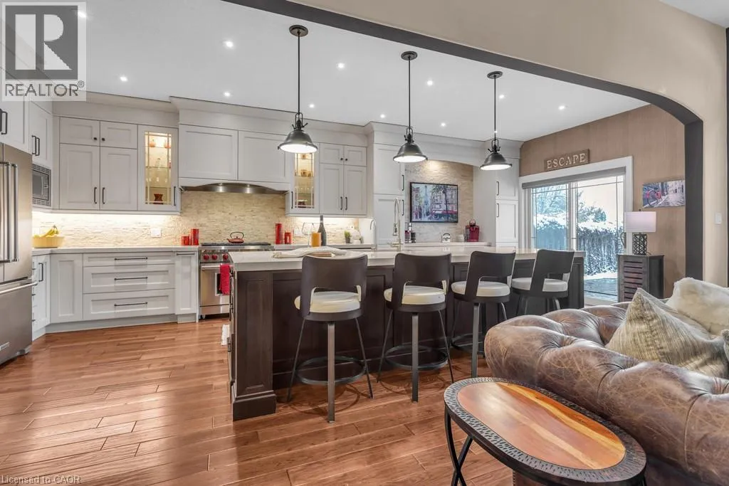Turn Left onto Deer Ridge Dr, Turn Right onto Terrace Wood Cres Step into unparalleled luxury and privacy at Terrace Wood Crescentâa masterpiece of Heisler classic elegance nestled in the prestigious Deer Ridge community, just minutes from Highway 401. Imagine coming home to your own private oasis: a beautifully landscaped lot backing directly onto a serene greenbelt, complete with a heated saltwater pool and a Sundance Maxxus Hot Tub under a custom 10 x 15 cedar-shingled pavilion. This exquisite 4+1 bedroom, 4 bathroom residence boasts impressive 11 and 9-foot ceilings, solid oak hardwood floors, and striking architectural details throughout. The heart of the home is a gourmet kitchen designed for true culinary enthusiastsâshowcasing a âWolfâ 6-burner professional gas stove, stunning quartz counters, an expansive 10 x 5 ft island, two pantries, and custom pull-out drawers. With all high-end appliances included and all California shutters throughout, every detail has been thoughtfully curated for comfort and sophistication. Host unforgettable gatherings on your massive stamped concrete patioâover 1,000 sq ft of entertainment spaceâand enjoy easy living with the oversized garage and aggregate stone driveway. The stone and stucco exterior delivers jaw-dropping curb appeal that sets you apart from the moment you arrive. Why settle for ordinary when you can own extraordinary? Make Terrace Wood Crescent yours today (id:27476)