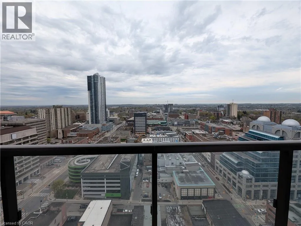 Duke & Young St Stylish 1-Bedroom Condo with Spectacular City Views â Young Condos, Downtown Kitchener Experience urban living at its best in this modern 1-bedroom, 1-bathroom condo located on the 21st floor of the highly sought-after Young Condos. Enjoy breathtaking panoramic views of the Kitchener skyline and a vibrant downtown lifestyle right at your doorstep. This bright, open-concept unit is filled with natural light and features a sleek kitchen with quartz countertops, stainless steel appliances, custom cabinetry, and ample counter space â perfect for cooking and entertaining. Additional highlights include in-suite laundry and contemporary finishes throughout. Ideally situated in the heart of downtown Kitchener, youâre just steps from restaurants, cafés, shopping, museums, nightlife, the library, public transit, and the LRT â everything you need within walking distance. Building amenities include: 24-hour concierge Fully equipped fitness center Rooftop running track 5th-floor outdoor terrace with BBQs and lounge seating Party room for hosting On-site dog park Whether you're a young professional, first-time buyer, or investor, this property offers the perfect blend of location, lifestyle, and modern design. Donât miss your opportunity to own in one of Kitchenerâs premier downtown buildings. (id:27476)