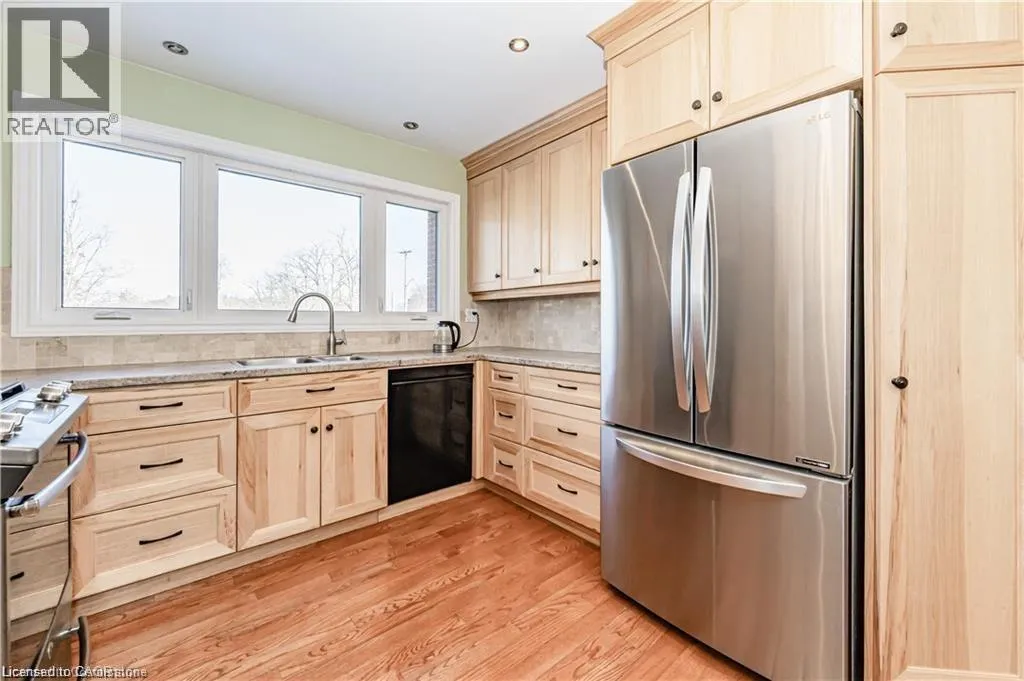STIRLING ave S and Greenbrook Dr Welcome to 15 Greenbrook Dr! Nestled in a tranquil and family-friendly neighborhood, this beautiful fully furnished townhome is your perfect retreat from the hustle and bustle of city life. The inviting exterior features a charming brick facade and an attached garage, exuding a classic yet contemporary appeal. Step inside to a thoughtfully designed main floor that effortlessly combines comfort and functionality. The spacious family room is bathed in natural light streaming through oversized windows, creating a warm and welcoming ambiance for relaxing evenings or entertaining guests. The fully equipped kitchen is a culinary delight, boasting stainless steel appliances, gleaming granite countertops, and ample cabinetry to store all your essentials. Adjacent to the kitchen, a formal dining area offers an intimate space to share meals and create lasting memories. Upstairs, you'll find three generously sized bedrooms, each designed to provide ultimate comfort. The primary bedroom is a true sanctuary, featuring a private balcony that overlooks lush greenery â an idyllic spot to savor your morning coffee or unwind with a book. A well-appointed full bathroom serves the upper level, ensuring convenience for all. Additional features of this home elevate its appeal, including a private backyard perfect for outdoor gatherings or gardening, a fully furnished home, and an additional full bathroom in the basement. Located just minutes from three bus stops, Highway 8, this townhome offers seamless access to parks, scenic trails, and bustling shopping centres. Whether you're exploring the local amenities or commuting to work, this central location meets all your lifestyle needs. Donât miss this incredible opportunity to call 15 Greenbrook Drive your new home. Schedule your viewing today. (id:27476)