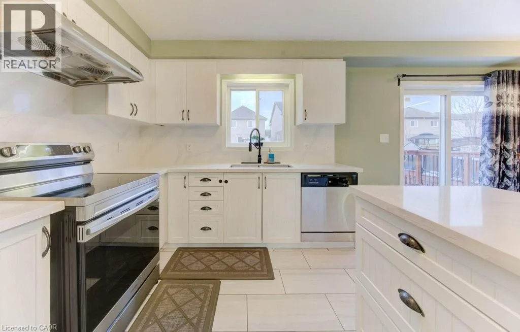 Doon south/Cranbrook st Welcome to this stunning 3-bedroom, 3-bathroom home located in the highly sought-after, family-friendly community of Doon South. The main floor features an inviting open-concept living room complete with a cozy gas fireplace with a stone surround, perfect for relaxing or entertaining. The spacious eat-in kitchen provide stainless steel appliances, a tile back splash, a centre island, and convenient sliders leading to a two-tier deck overlooking the fully fenced backyard ideal for summer gatherings. Upstairs, the primary bedroom includes a large walk-in closet and a luxurious four-piece ensuite with his-and-hers sinks. The second and third bedrooms are both generously sized and filled with natural light. The lower level features a beautifully finished rec room, perfect for family movie nights or a play area. The utility area provides additional storage space and even a small office nook for working from home. This home provide the perfect blend of comfort, functionality, and modern style all in a welcoming neighbourhood close to schools, parks, and amenities. (id:27476)