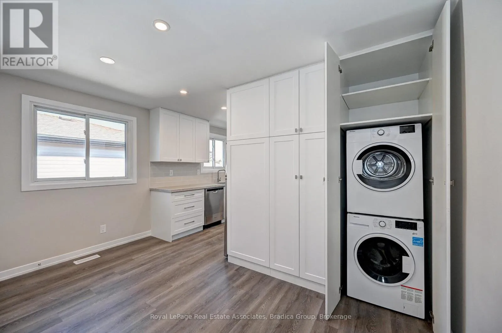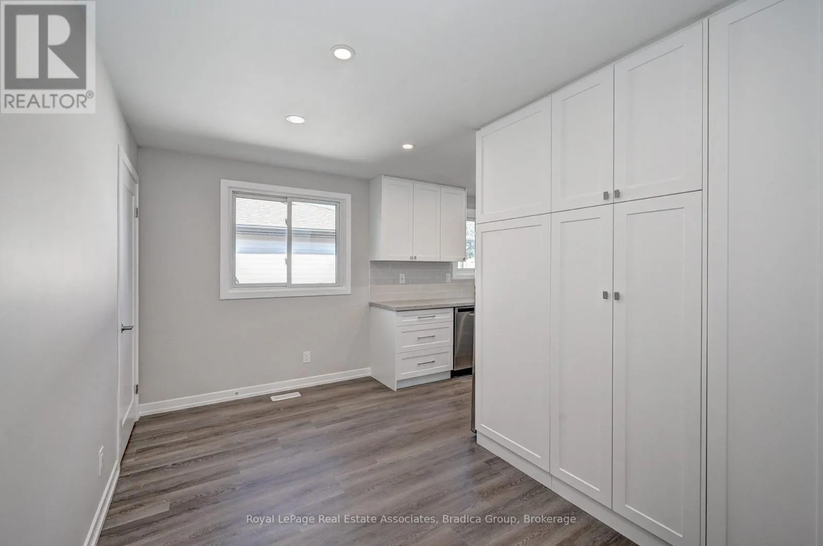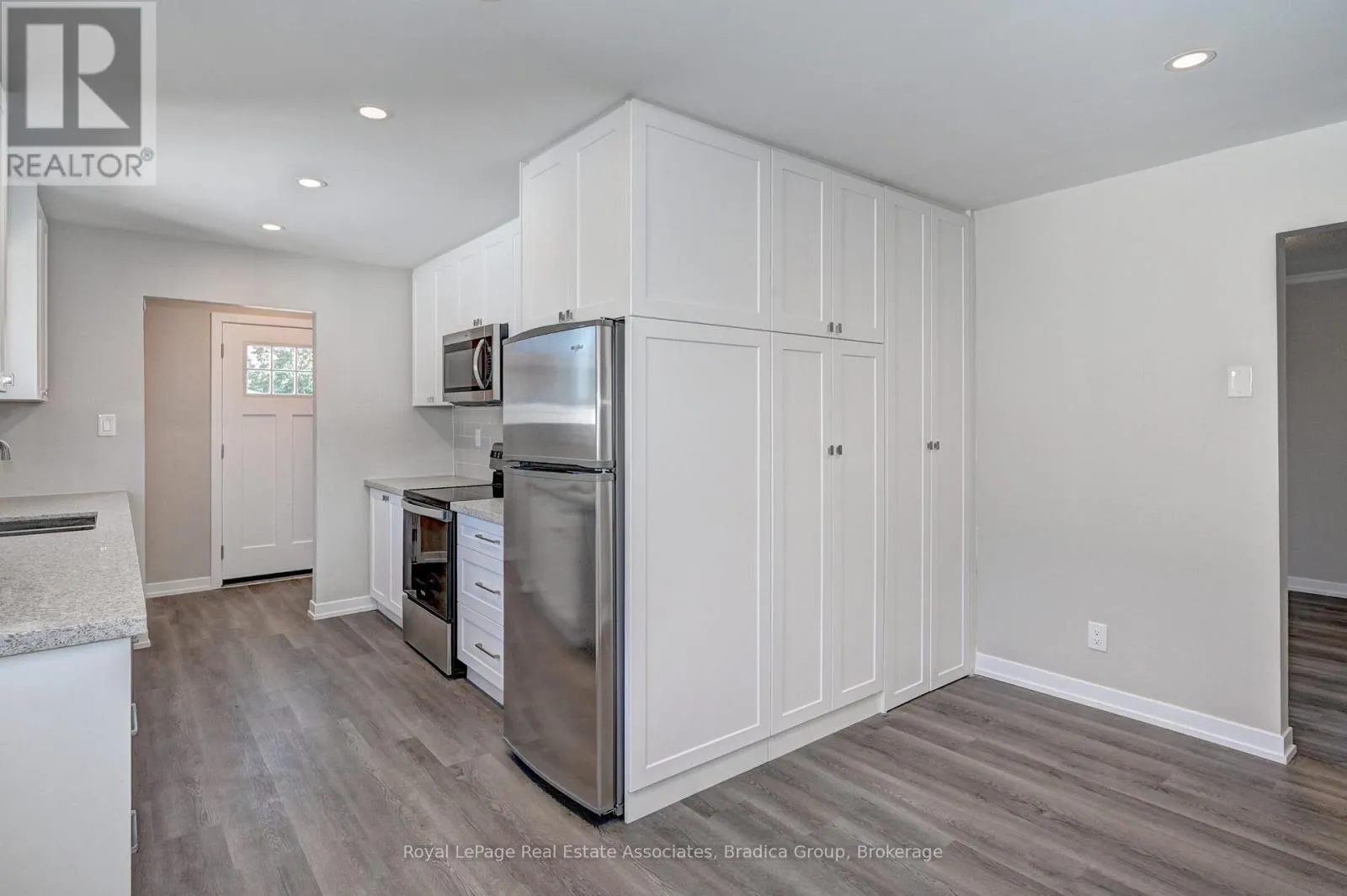 Ottawa St. S. & Strasburg Rd. This stunning, newly renovated detached bungalow offers a rare opportunity to enjoy modern living in one of Kitchener's most desirable family-friendly neighbourhoods. Stylish upgrades include quartz kitchen countertops, stainless steel appliances, pot lighting, and carpet-free flooring throughout. The bright, open layout provides a comfortable living space with three bedrooms suitable for families or professionals. Step outside to a fully fenced yard with direct access to McLennan Park, known for its walking trails, playground, splash pad, skatepark, and dog park. Enjoy both privacy and convenience with parking for two vehicles, in-suite laundry, and central air conditioning. With Sunrise Shopping Centre and Laurentian Power Centre, schools, restaurants, and Highway 7/8 only minutes away, this home offers an unbeatable location with everything you need close by. (id:27476)