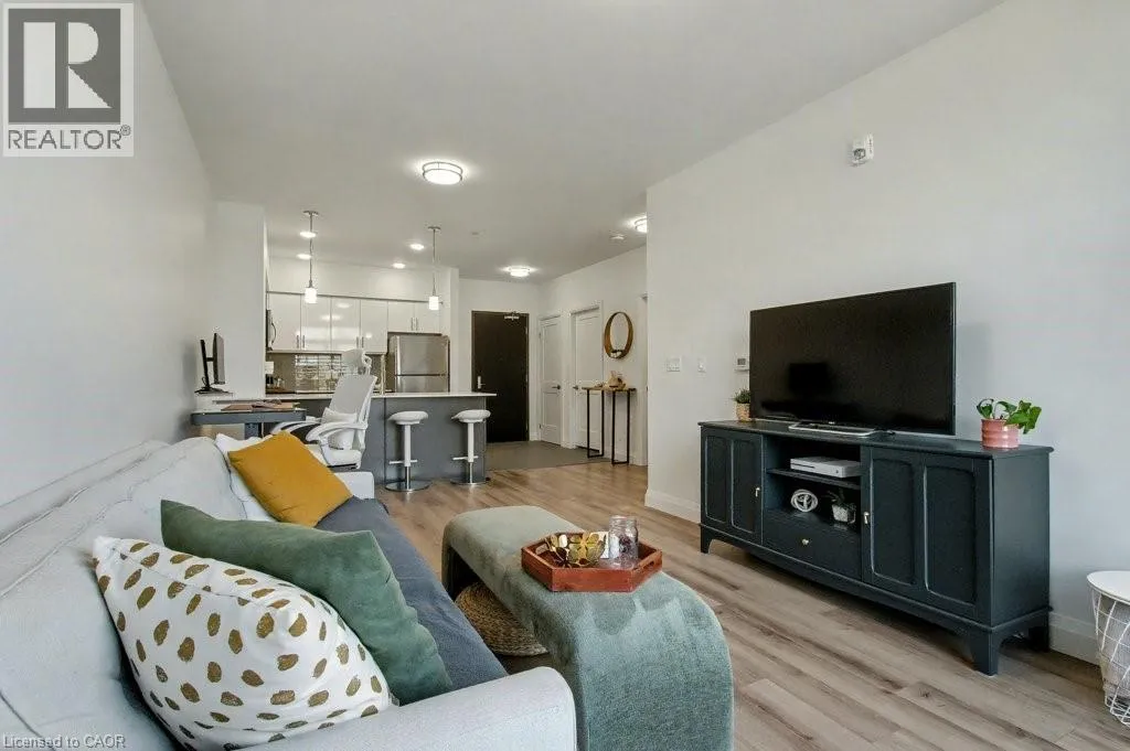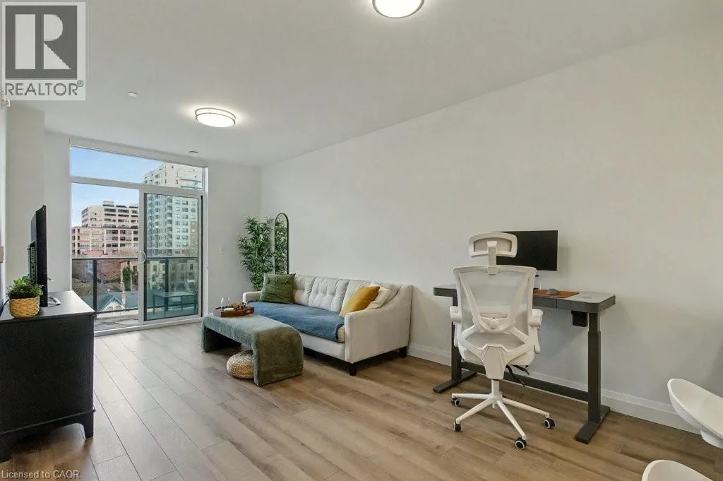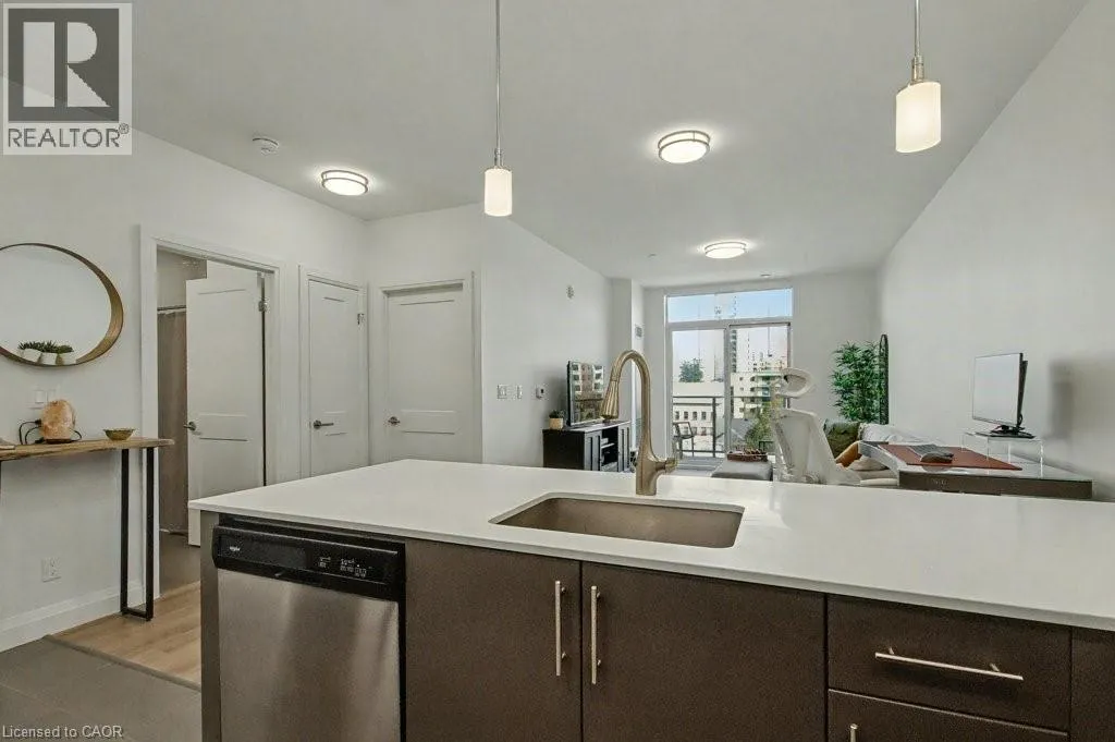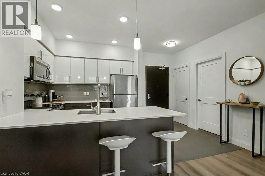 QUEEN ST. S. NEAR COURTLAND AVE. Welcome to Barra on Queen! Discover this beautiful one-bedroom suite, ideally situated near the heart of downtown Kitchener and its vibrant, ever-expanding urban core. Residents will appreciate the convenience of being just minutes away from key destinations such as the LRT, Victoria Park, the Ironhorse Trail, Google, and Kitchener's Innovation District. Included with the suite is one underground parking spot. Suite Features include: 9-foot ceilings, private balcony, modern quartz countertops, stainless steel appliances, tiled backsplash and in-suite laundry. Building Amenities include: guest room, fitness facility, party room, additional patio space, BBQ area, bike racks, dog wash station in the garage and visitor parking for your guests. Enjoy condo living and all that downtown Kitchener has to offer. (id:27476)