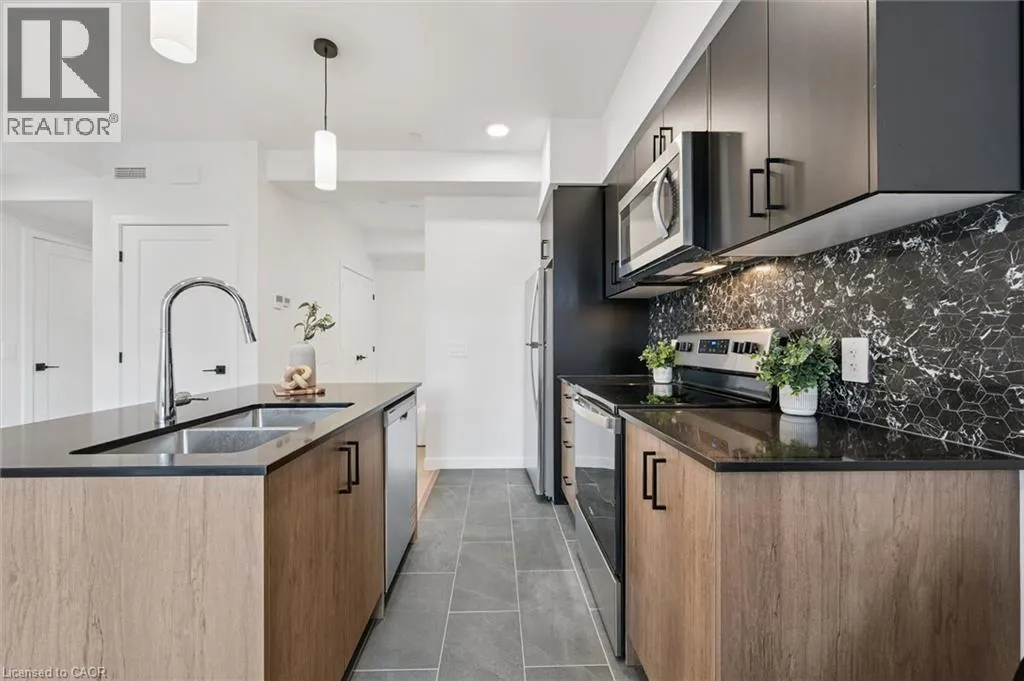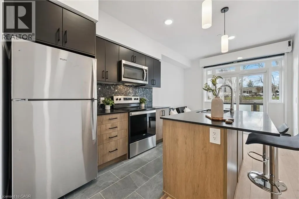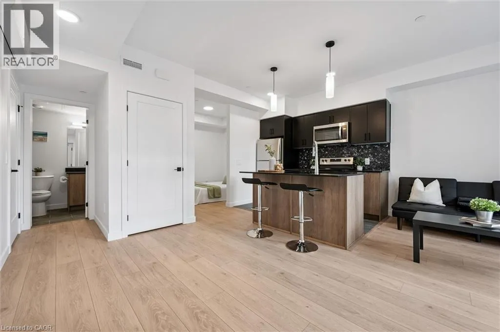 Mill Street and Queen Street NOVEMBER FREE! Live at Viva, the newest community along Mill Street, and enjoy vibrant downtown living in this bright and modern studio just steps from the Iron Horse Trail, Victoria Park, the iON LRT, and all the restaurants, cafés, and shops of Kitchenerâs core. This open-concept Musa model offers approx. 500 sq ft with a sleek kitchen featuring quartz countertops, a breakfast bar, stainless steel appliances, luxury vinyl plank and ceramic flooring, a sleeping alcove, full bathroom, and a private balcony. Unit can be furnished for an additional $100/month, and off-site parking is available for $100/month. Heat, hydro, water, and hot water heater are paid by the tenant. Available immediately. (id:27476)