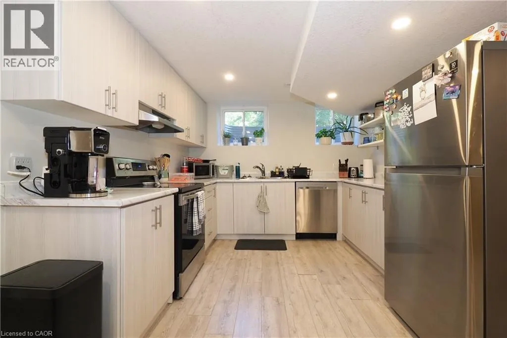Edna Street becomes Dumfries Ave. **PUBLIC OPEN HOUSE: SAT & SUN NOVEMBER 22 & 23, 2:00-4:00 PM** Are you an investor, looking for a multi-generational home, or interested in a mortgage-helper opportunity? Welcome to 296 Dumfries Avenue, a solid all-brick legal duplex ranch bungalow on a large 60â x 135â fully fenced lot in a quiet, family-friendly neighbourhood. This property offers flexibility, income potential, and peace of mind with key updates already completed. The main level (now vacant) features four bedrooms, a bright living room with hardwood floors and pot lights, a well-maintained kitchen with a separate dining area, and a 4-piece bath. The lower unit, professionally built out in 2020, includes two bedrooms, a generous eat-in kitchen, a spacious living room with a large window, and a 4-piece bath. Both units have their own laundry and come with five appliances each. Major mechanicals include the furnace, A/C, two water heaters, and two softeners - all new in 2020. The home also includes a single-car garage (assigned to the lower unit) and a double driveway for use by the upper unit. Tenants pay utilities, (except heat), this property offers strong returns for investors while still being perfectly suited for extended families or buyers seeking rental income support. The oversized backyard is ideal for children, pets, or entertaining, and the location puts you close to the expressway, schools, parks, Frederick Mall, and everyday amenities. A versatile opportunity in a prime setting - this one checks all the boxes. (id:27476)