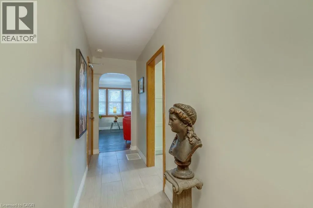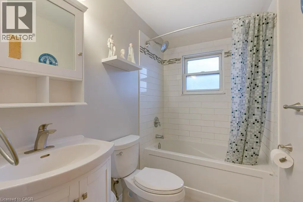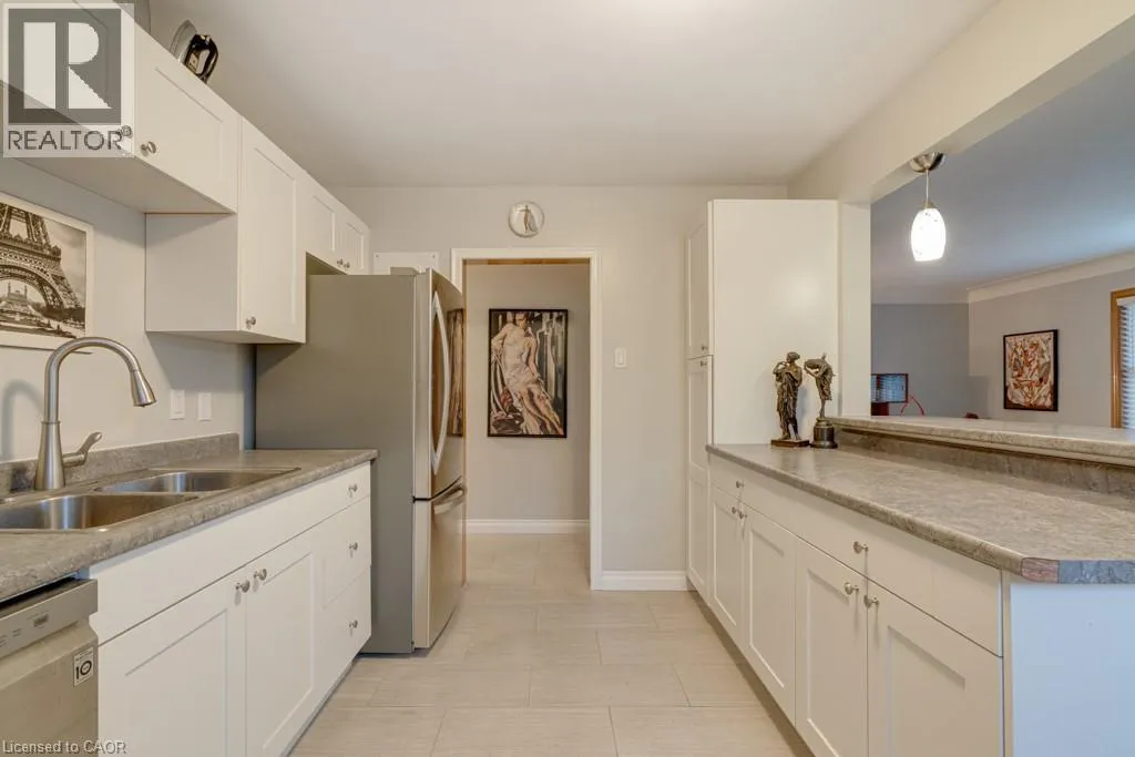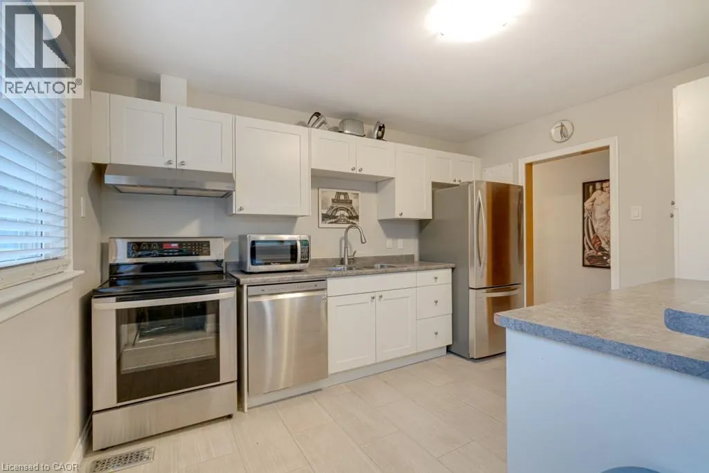 Hwy 401 to Hwy 8. Bruce St to Edinburgh Rd. ROSEMOUNT NEIGHBOURHOOD â Bright and spacious, this carpet free 2 bedroom, 1 bathroom upper level apartment is located in the quiet, family friendly community of Rosemount. The open concept living and dining area offers plenty of room to relax or create a dedicated home office. The updated kitchen features white cabinetry, stainless steel fridge, stove and dishwasher, and a large peninsula with seating. From the kitchen, walk out to your private balcony, ideal for morning coffee or an evening drink. Down the hall are two generous bedrooms with large windows and an updated 4 piece bathroom. Shared laundry is located on the lower level. The unit includes 2 parking spaces (1 large private garage space and 1 private driveway space). Centrally located close to parks, schools, shopping, restaurants, public transit and major highway access. (id:27476)