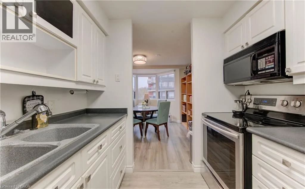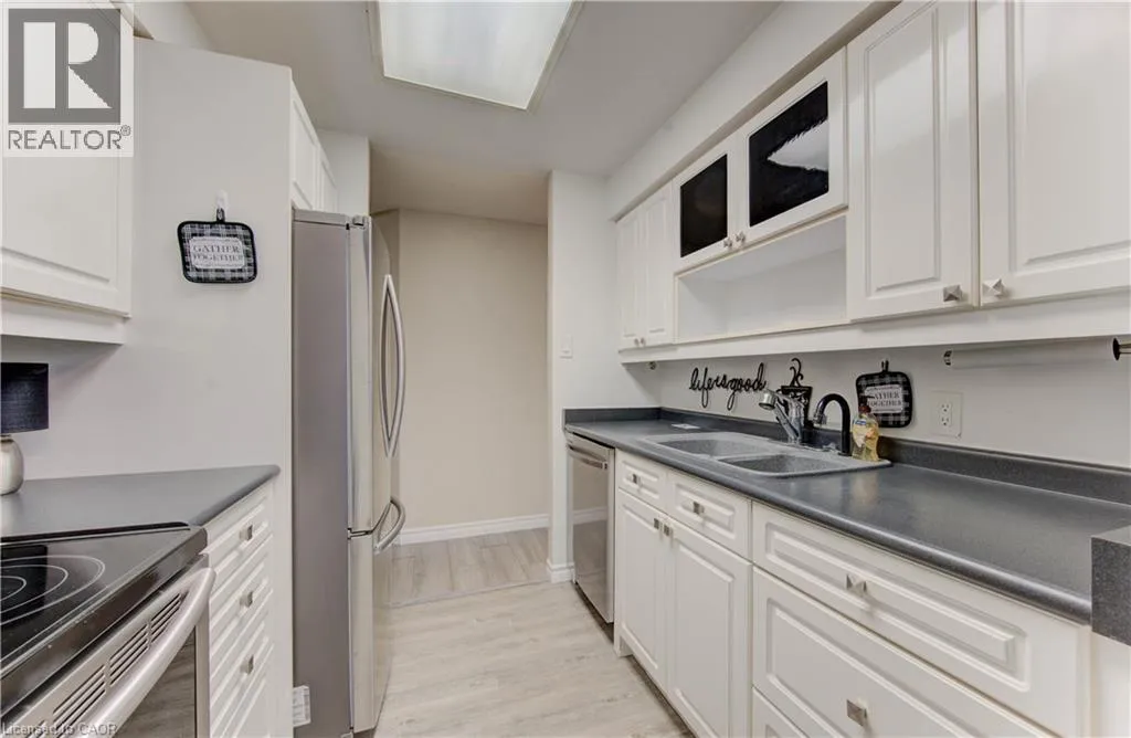 Lancaster Street E/Queen street N to Ellen St E Welcome to Unit 303 at 20 Ellen St E., Kitchener. A beautifully maintained 2 bedroom, 1 bathroom condo offering stylish urban living in DTK. This open-concept suite features laminate flooring throughout, stainless steel appliances, and large windows that fill the space with natural light. The layout includes a spacious living and dining area, perfect for relaxing or entertaining. The primary bedroom features a walk-in closet, and the bathroom offers a clean, well-designed 4-piece layout with ample space and comfort. Enjoy the convenience of in-suite laundry and ample storage, plus a private locker for additional space. Recent updates include a new AC/heating unit, new windows, and a new hot water heater, providing peace of mind and added efficiency. Underground parking is included. Residents enjoy excellent building amenities such as a community BBQ area, exercise room, party room, and visitor parking. Located steps from Kitchenerâs vibrant downtown, transit, parks, and shopping, this condo is perfect for first-time buyers, downsizers, or investors. (id:27476)