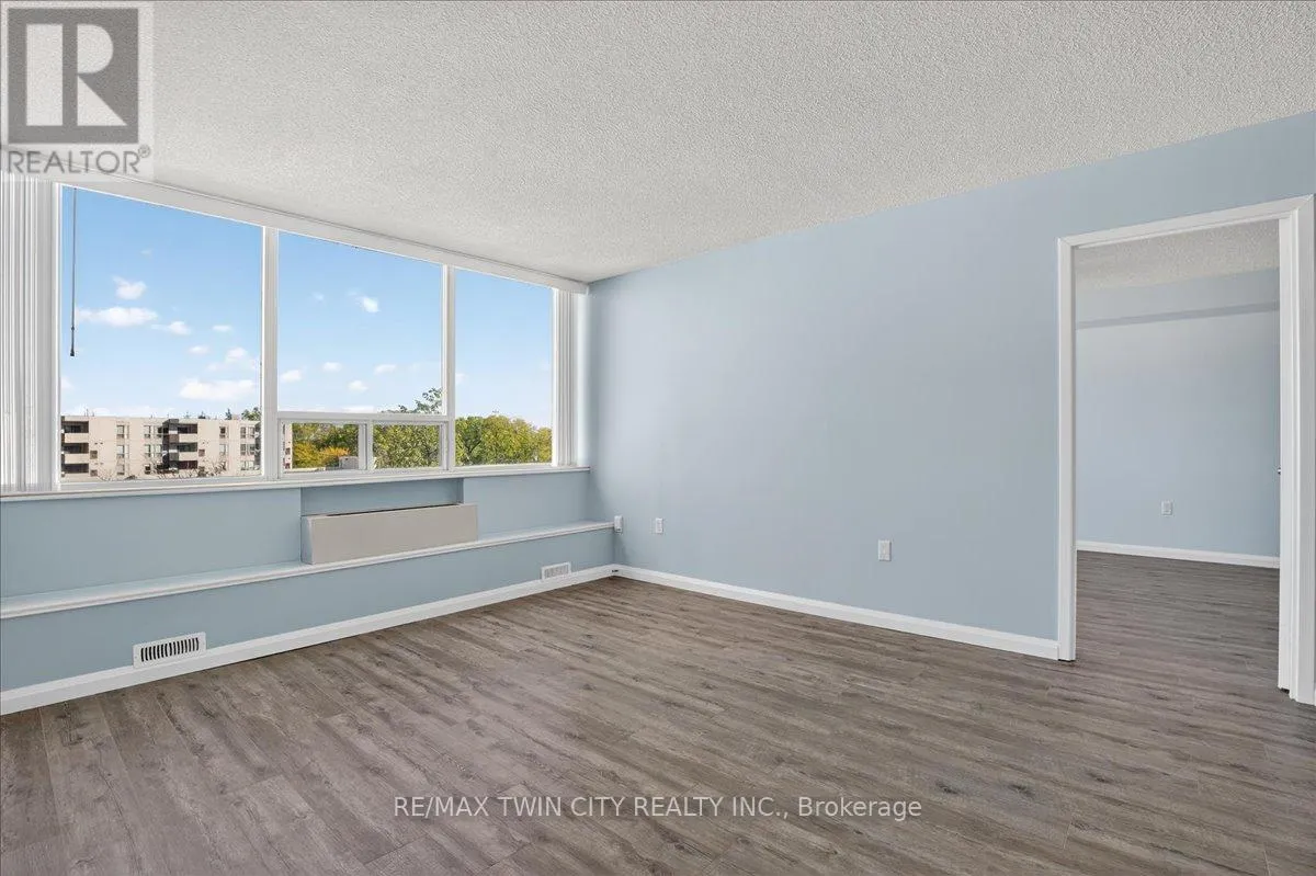 Cross Streets: Fairway Road South. ** Directions: Fairway Road South to King Street East. Welcome to effortless condo living in The Regency! Recently beautifully renovated 2 bedroom 2 full bath unit is the perfect home for first time home buyer or someone looking to downsize. Bright open concept Living Room & Dining Room, large Primary Bedroom with walk-in closet and 3 piece Ensuite, good sized 2nd Bedroom, 4 piece Bathroom, Storage Room. 2025 renovations include: ensuite Bath with glass shower & massage panel, 54" vanity with new sink & faucet, new toilet and LED lights, porcelain floor & shower tiles. The 2nd bathroom with new tap, 30" vanity with faucet, new dual flush toilet, LED lights, porcelain tile floor and tub surround. All new Stainless Steel kitchen appliances, soft close cabinet doors and ceiling fan. New stackable washer/dryer. New click waterproof vinyl planks in Living/Dining/2 Bedrooms and storage. New custom window vertical blinds by Levelor in Living Room. Cordless soft lift blinds in both bedrooms from Blinds To Go. Close to Chicopee Ski Hill, walking trails, Fairview Park Mall, grocery stores, Costco, restaurants, easy access to Highway 8 & 401.Condo Fee Includes: building insurance, building maintenance, Cable TV, common elements, ground maintenance/landscaping, high-speed internet, parking, private garbage removal, property management fees, snow removal, water. Amenities include: exercise room, library, party room, pool, visitor parking. (id:27476)