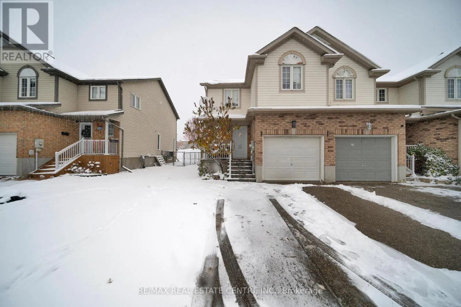 Cross Streets: OTTAWA. ** Directions: Ottawa Street S To Prosperity. Welcome to this beautifully updated freehold end unit townhouse. Located in a prime area, this home offers unparalleled convenience with schools, parks, shopping, recreation, and the expressway just a stone's throw away. Step inside to an inviting open-concept main floor with garage access, featuring a 2pc bath, dining area, eat-in kitchen with ample countertop space plus an island with sliders to the deck and fully fenced backyard which overlooks the serene Foxglove Park. The upper level features an oak staircase, spacious primary bedroom with a walk-in closet, offering plenty of storage. Two additional generously sized bedrooms and a well-appointed 4pc bathroom complete this level, making it ideal for a growing family. The professionally finished basement further extends your living space, providing a large rec room for entertainment and a 3pc bathroom for added convenience. Recent updates include vinyl flooring throughout the main and upper level, a new oak staircase, fresh paint throughout, and a roof shingles in 2020. The furnace and A/C were serviced in 2022, ensuring year-round comfort and efficiency. This delightful townhouse is move-in ready, offering all the modern comforts and conveniences you desire. Don't miss the chance to make this your new home! (id:27476)