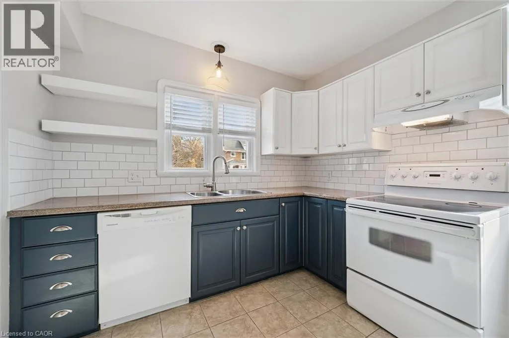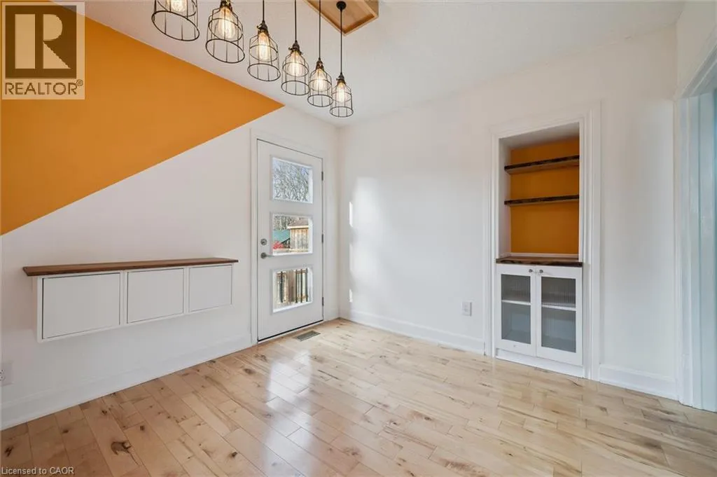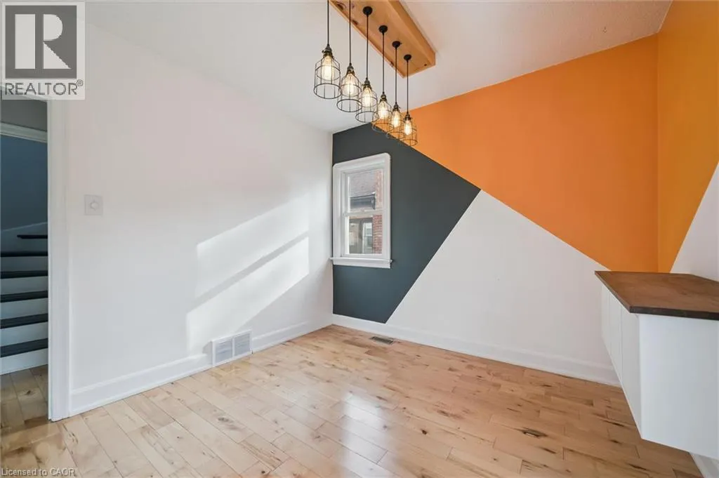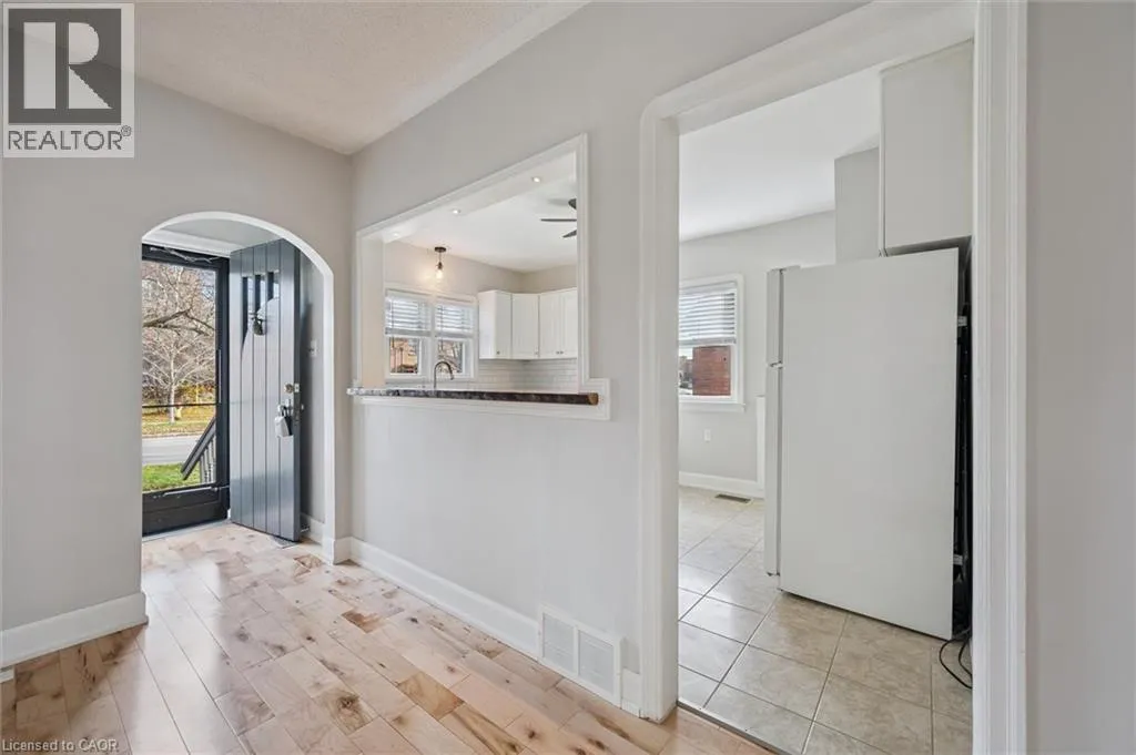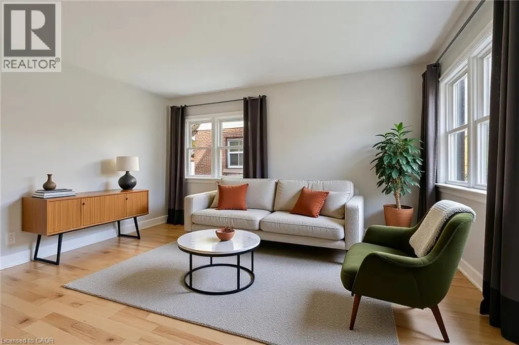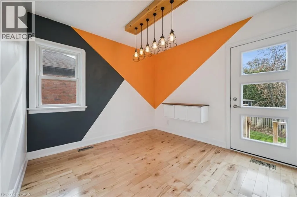 Between Glasgow and Dominion Check everything off your list! Located in Midtown just a short walk to Uptown Waterloo, Belmont Village, Downtown Kitchener, Waterloo Region Health Network, Victoria Park, Google and Catalyst, this adorable one and a half storey features a spacious lower level with separate entrance, perfect for entertaining extended family, teenagers, or even the possibility of income! Step inside the bright open concept floorplan, with large living room featuring warm wide plank flooring and updated windows with views of the mature streetscape. The nearby kitchen has timeless shaker cabinetry with floating shelves, classic tiled backsplash and handy live edge breakfast bar (preserved from the historical St. Jacobs Farmer's Market) The additional separate dining room (or main floor office!) has a built in buffet nook and bright garden door with backyard access! The primary bedroom is also on this level with plenty of storage space and a four piece bathroom nearby. Upstairs is carpet free with two generous bedrooms, a two piece bathroom, and plenty of space for an office area on the upper landing. The lower level (with stairs to separate side door entrance) is a perfect cozy retreat and features a huge recreation room with wet bar, and an additional updated four piece bathroom. A convenient laundry/storage room is nearby. The private backyard with mature landscaping is fully fenced with a huge deck and privacy wall. Long driveway with parking for two or possibly three vehicles. Minutes to everything you need at popular shopping and restaurants of Uptown Waterloo, Downtown Kitchener and Belmont Village! Weâve included some virtually staged images to give you some decorating ideas. An amazing opportunity for a classic home in a mature and tree lined neighbourhood! (id:27476)