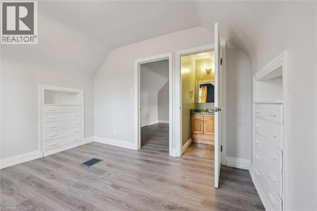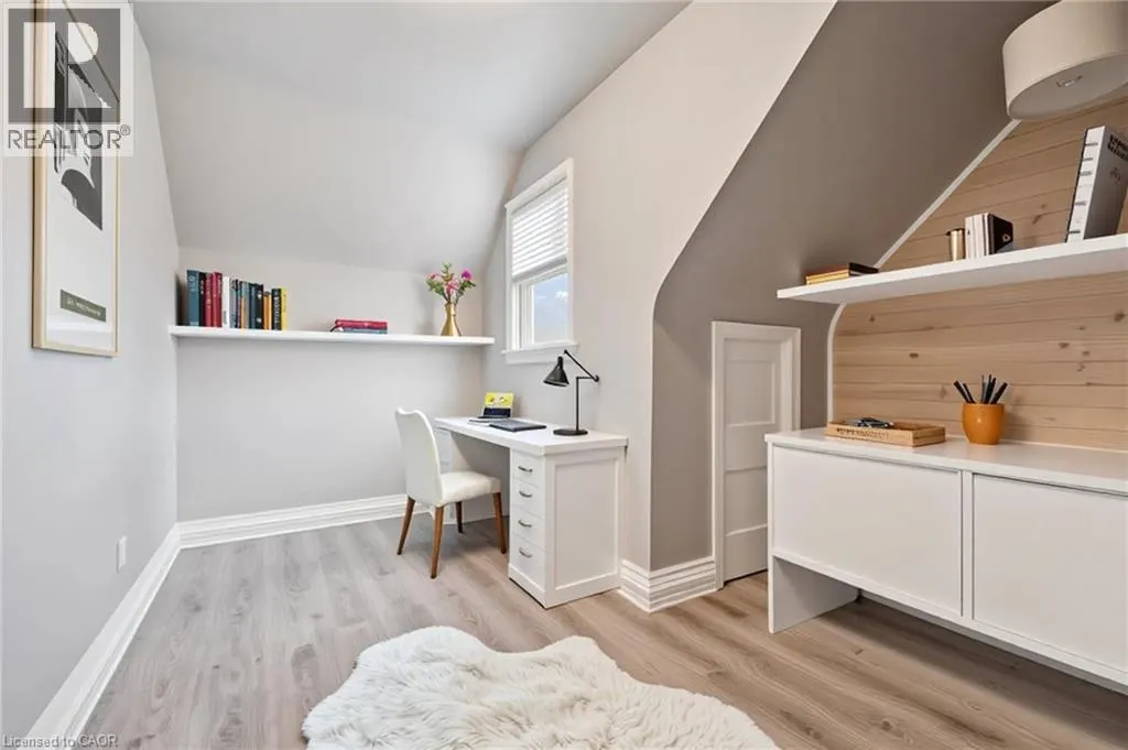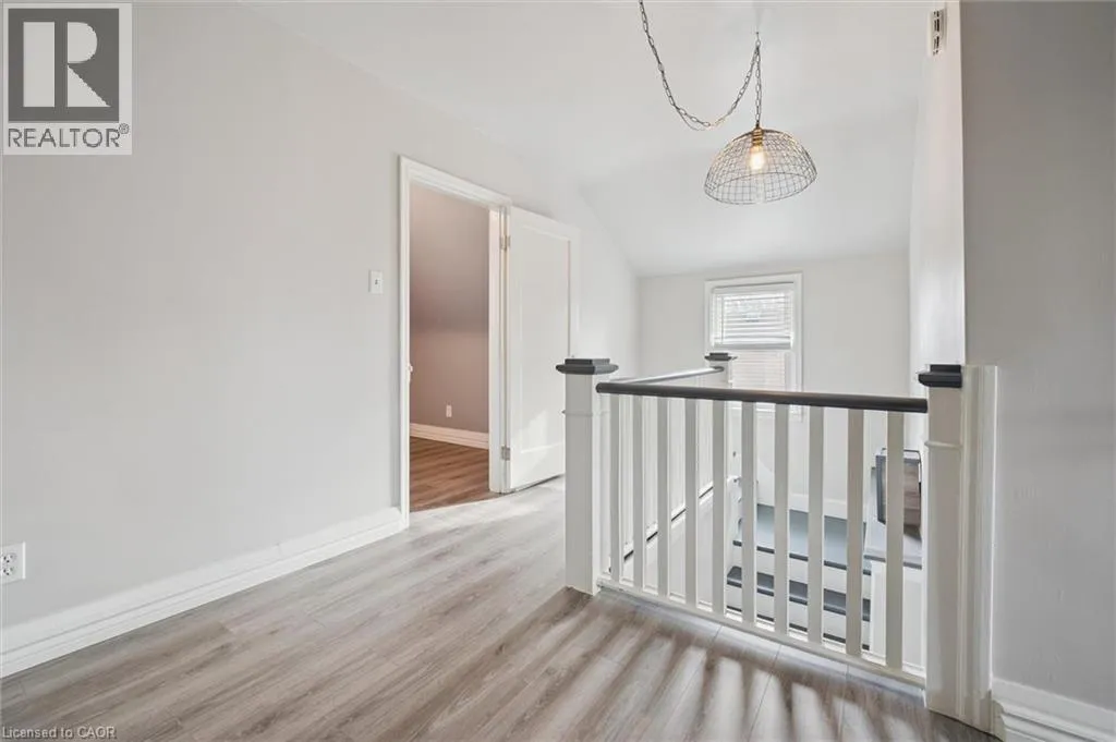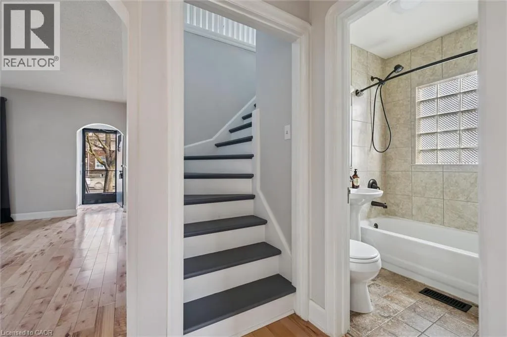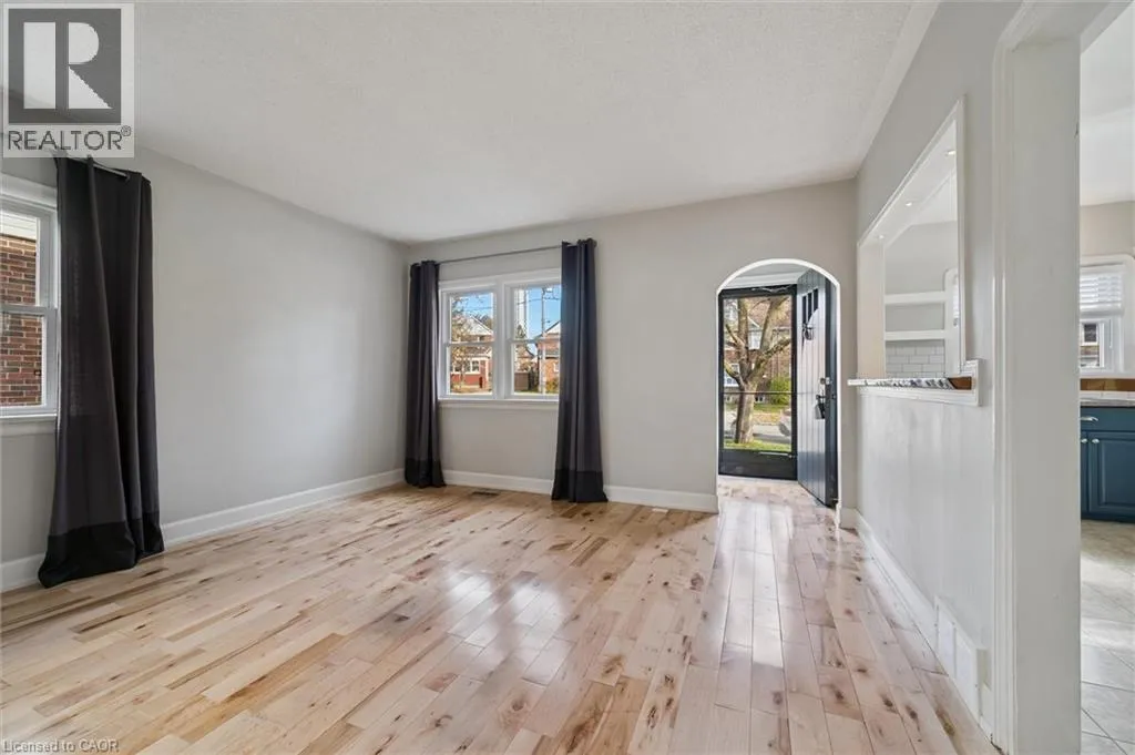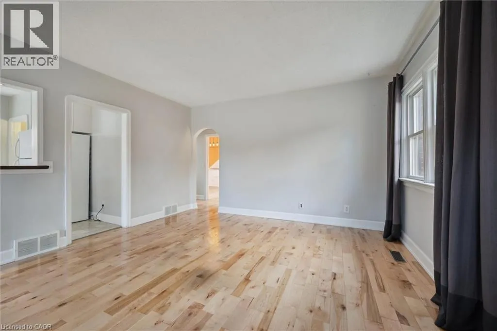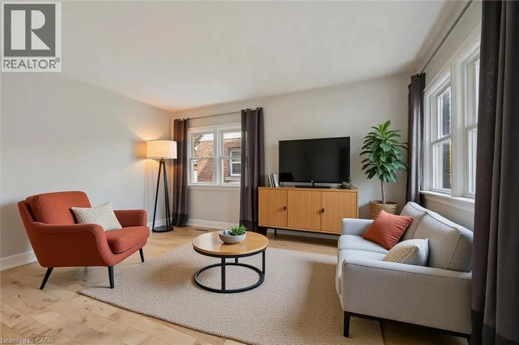 Between Glasgow and Dominion Check everything off your list! Located in Midtown just a short walk to Uptown Waterloo, Belmont Village, Downtown Kitchener, Waterloo Region Health Network, Victoria Park, Google and Catalyst, this adorable one and a half storey features a spacious lower level with separate entrance, perfect for entertaining extended family, teenagers, or even the possibility of income! Step inside the bright open concept floorplan, with large living room featuring warm wide plank flooring and updated windows with views of the mature streetscape. The nearby kitchen has timeless shaker cabinetry with floating shelves, classic tiled backsplash and handy live edge breakfast bar (preserved from the historical St. Jacobs Farmer's Market) The additional separate dining room (or main floor office!) has a built in buffet nook and bright garden door with backyard access! The primary bedroom is also on this level with plenty of storage space and a four piece bathroom nearby. Upstairs is carpet free with two generous bedrooms, a two piece bathroom, and plenty of space for an office area on the upper landing. The lower level (with stairs to separate side door entrance) is a perfect cozy retreat and features a huge recreation room with wet bar, and an additional updated four piece bathroom. A convenient laundry/storage room is nearby. The private backyard with mature landscaping is fully fenced with a huge deck and privacy wall. Long driveway with parking for two or possibly three vehicles. Minutes to everything you need at popular shopping and restaurants of Uptown Waterloo, Downtown Kitchener and Belmont Village! Weâve included some virtually staged images to give you some decorating ideas. An amazing opportunity for a classic home in a mature and tree lined neighbourhood! (id:27476)