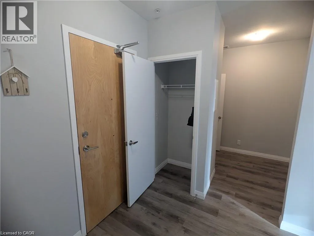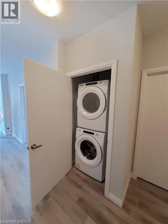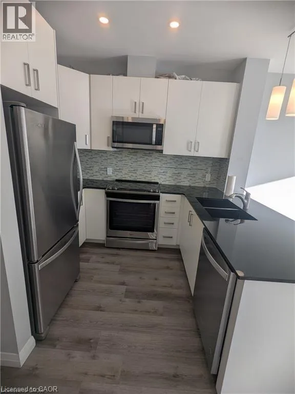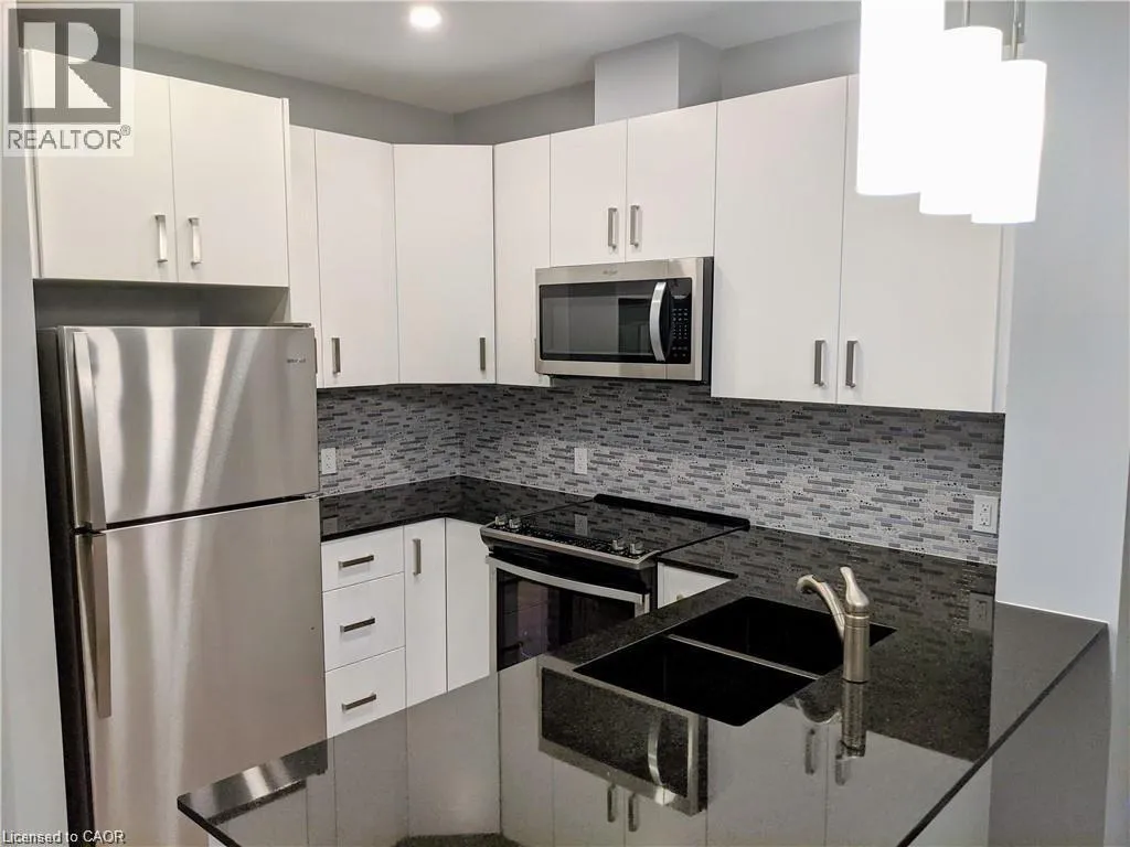 VICTORIA ST Urban living within Garment Street Tower 2, located in the heart of Kitchener. This meticulously designed and specious unit features a total of 760 sq.ft (708 sq.ft interior plus 53 sq.ft private balcony); offering 1 bedroom plus a versatile den bonus which can be conveniently transformed into a home office. The bedroom offers a walk-in closet with organizer while the kitchen boasts granite countertops, a breakfast bar and stainless steel appliances, including - fridge, stove, microwave, plus an in-suite washer and dryer for ultimate convenience. Located in a prime area of KW, you'll enjoy close proximity to shopping, Victoria Park, fantastic dinning options, and all major transit routes. Just one block from ION transit and close to the GO train - this location is perfect for commuters. For your safety underground parking is also included. Immediate occupation available. Don't miss this incredible opportunity! (id:27476)