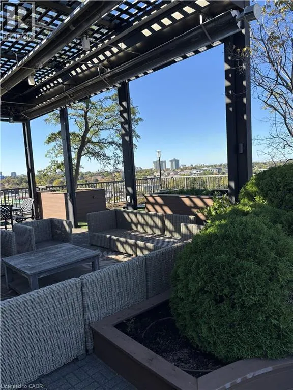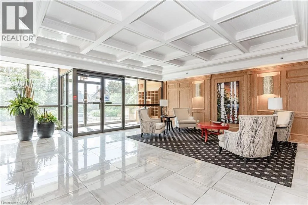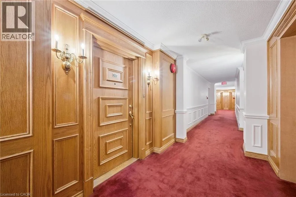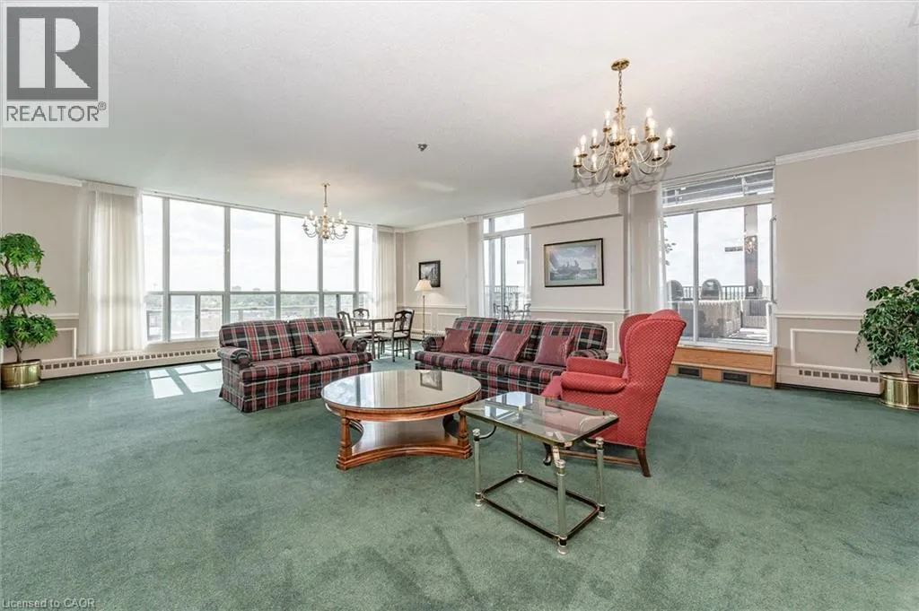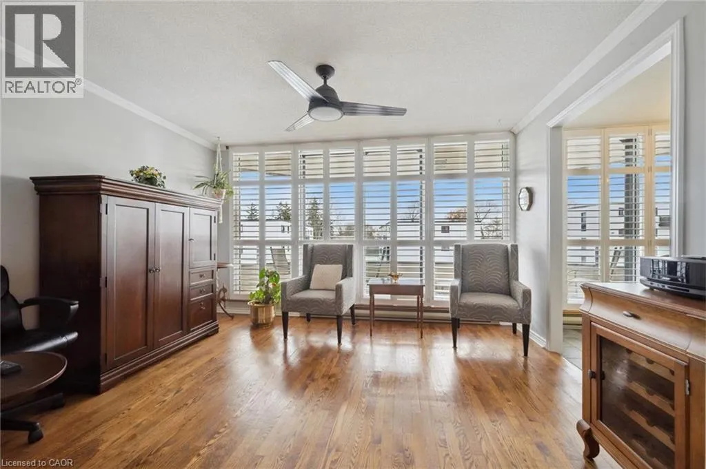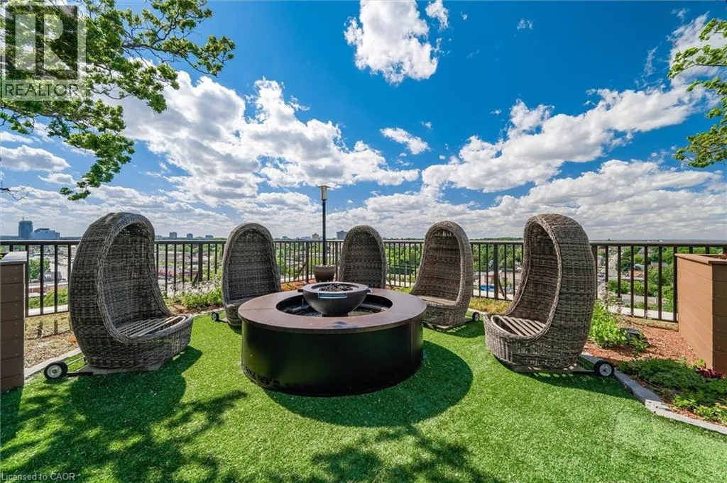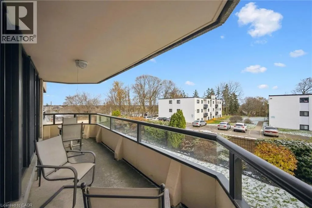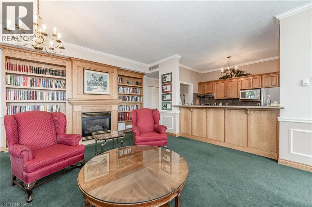 Victoria / Queen to Lancaster Welcome to Queens Heights one of the areas most desirable bespoke buildings. Carefree condo living at its finest. Large 1722 square ft 2 bedroom, 2 bathroom unit plus a den. A spacious entry foyer with plenty of closet space. Double French doors lead to the formal dining room, oak flooring, plenty of space for your table and hutch plus a wall to wall custom built-in. 0versized living room, good sized kitchen, handsome dark cabinetry, loads of counter and cupboard space, 2 pantries, storage galore. Bright breakfast room, great spot for your morning coffee, next to the main level den, sliding glass doors with California shutters lead to the balcony area. Two bedroom including a luxury sized primary , can easily accommodate a king sized bed, 4 piece ensuite. Second large bedroom, walk in closet, and an additional updated main level bath with walk in shower. In suite laundry room with additional storage space. Appliances included. Fantastic amenities, controlled entry, large lobby, guest suites, party room, billiards, library. fitness area, Fantastic rooftop terrace, BBQ area, underground parking with its very own carwash, Designated parking spot. Exceptionally maintained building, oak paneled hallways, immaculate, award winning summer gardens. Walk to shopping ,dining, Centre in the Square, library, downtown, farmers market, easy highway access. If you are looking for the ease of condo living in a friendly environment without sacrificing the space of a home then this meets all of the requirements. Begin your next chapter here. (id:27476)