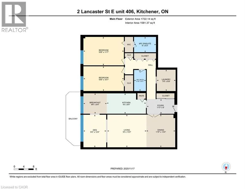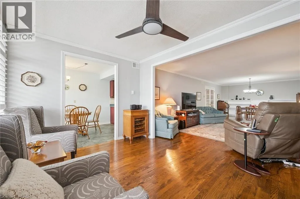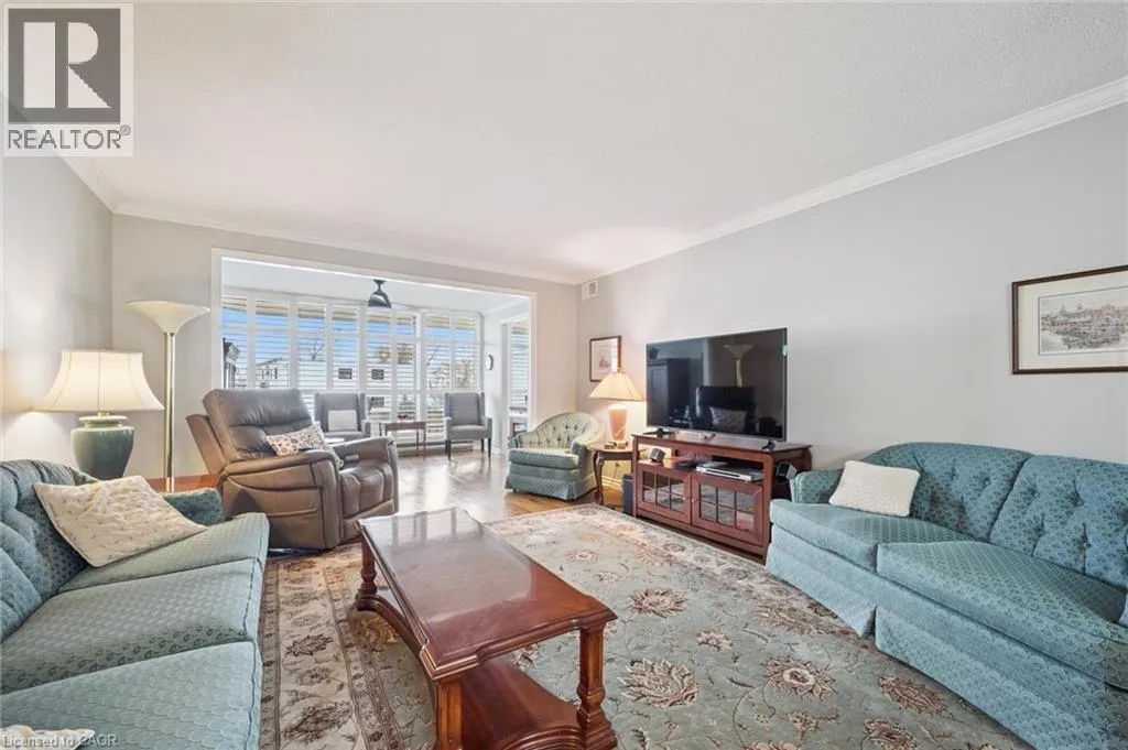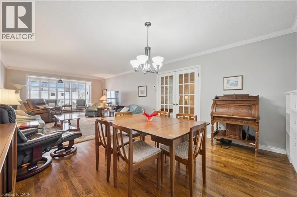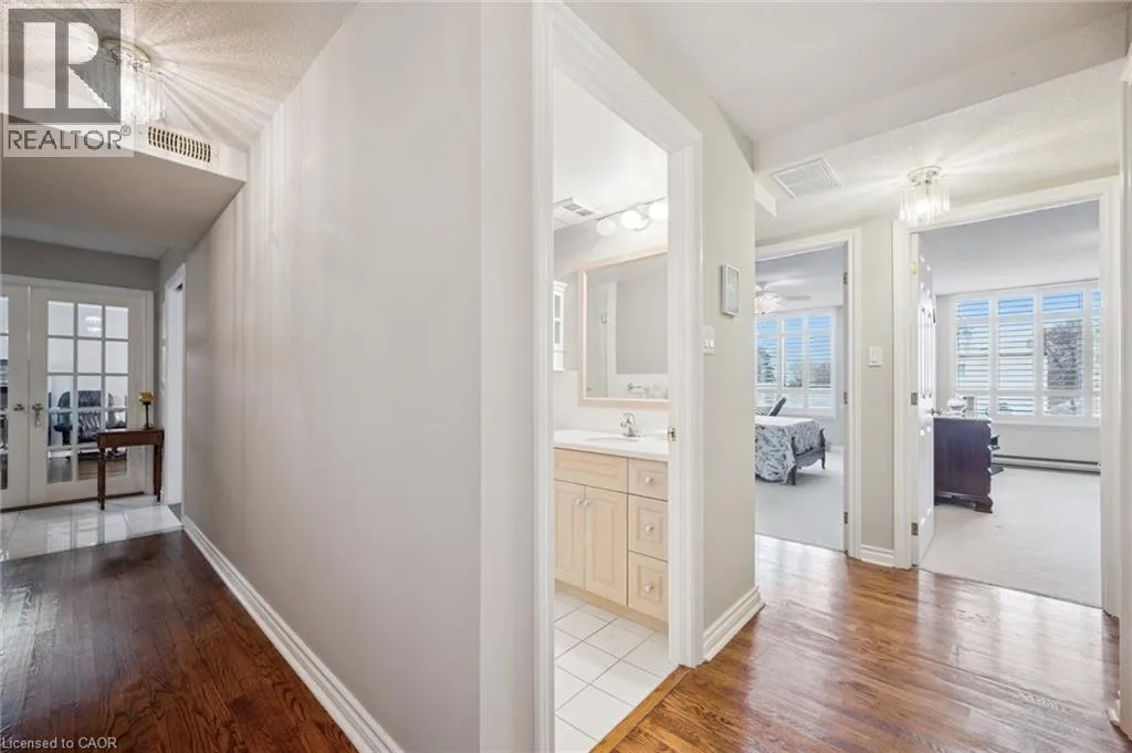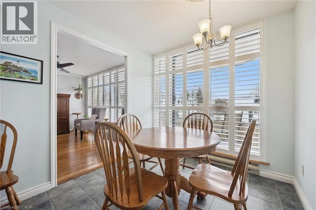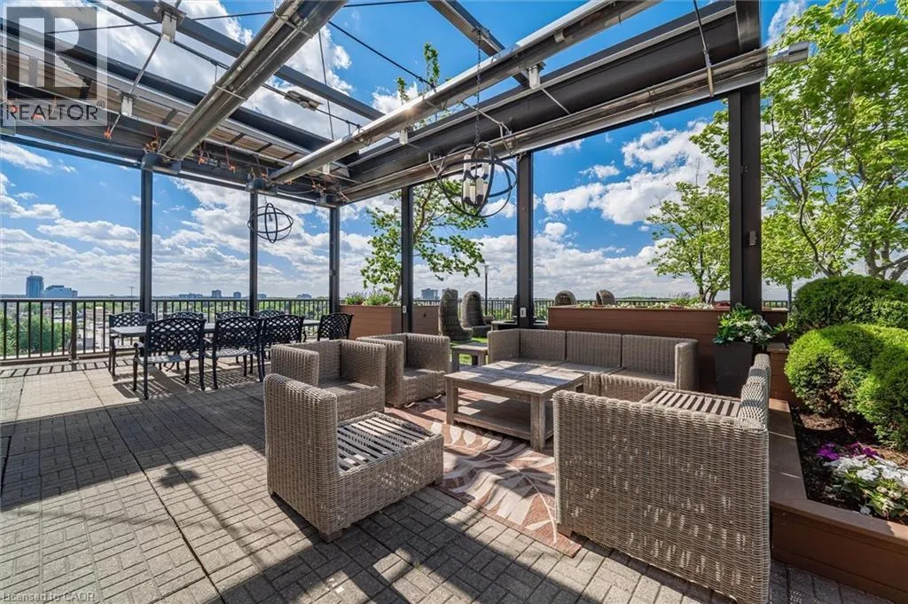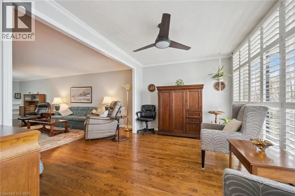 Victoria / Queen to Lancaster Welcome to Queens Heights one of the areas most desirable bespoke buildings. Carefree condo living at its finest. Large 1722 square ft 2 bedroom, 2 bathroom unit plus a den. A spacious entry foyer with plenty of closet space. Double French doors lead to the formal dining room, oak flooring, plenty of space for your table and hutch plus a wall to wall custom built-in. 0versized living room, good sized kitchen, handsome dark cabinetry, loads of counter and cupboard space, 2 pantries, storage galore. Bright breakfast room, great spot for your morning coffee, next to the main level den, sliding glass doors with California shutters lead to the balcony area. Two bedroom including a luxury sized primary , can easily accommodate a king sized bed, 4 piece ensuite. Second large bedroom, walk in closet, and an additional updated main level bath with walk in shower. In suite laundry room with additional storage space. Appliances included. Fantastic amenities, controlled entry, large lobby, guest suites, party room, billiards, library. fitness area, Fantastic rooftop terrace, BBQ area, underground parking with its very own carwash, Designated parking spot. Exceptionally maintained building, oak paneled hallways, immaculate, award winning summer gardens. Walk to shopping ,dining, Centre in the Square, library, downtown, farmers market, easy highway access. If you are looking for the ease of condo living in a friendly environment without sacrificing the space of a home then this meets all of the requirements. Begin your next chapter here. (id:27476)