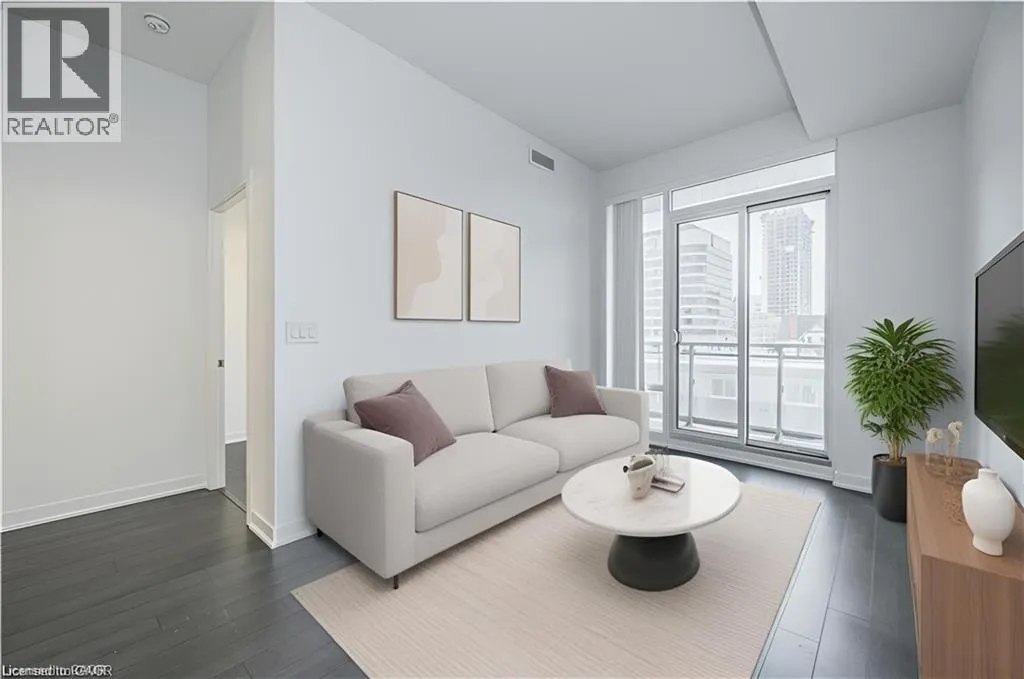 YOUNG/DUKE Sought-after DTK building - City Centre, 1 BED + DEN available January 1st, 2026. This unit features an open concept kitchen and living room with soaring ceilings, hardwood flooring, granite countertops, stainless steel appliances and kitchen island. A true den that offers enough space for a good sized desk for those working from home days. The bedroom features large walk-in closet, the bathroom features granite countertops and the unit features in-suite laundry. The oversized balcony, that extends the width of the unit provides ample space for those looking to enjoy the outdoors. Comes with one underground parking spot and storage unit. This condominium building offers plenty of great amenities such as a party room with kitchen, lounge, private outdoor dining and BBQ area. Enjoy a maintenance-free living in a trendy, convenient area. There is a convenient LRT stop right outside the front door on Duke St. Walking distance to all amenities, City Hall, Victoria Park, amazing restaurants and shopping. Easy access to the expressway. Do not miss this great opportunity! Some photos virtually staged. (id:27476)