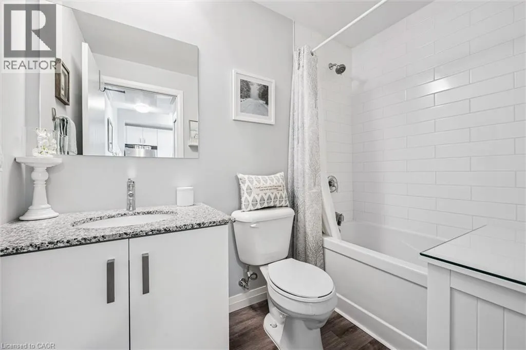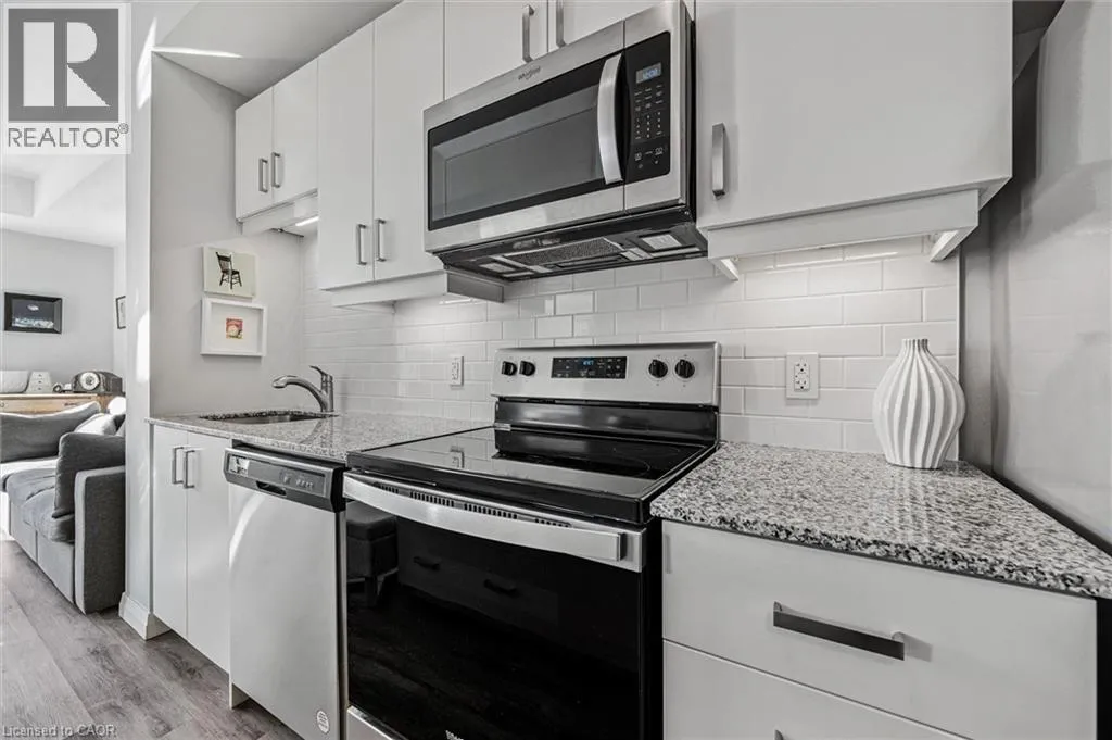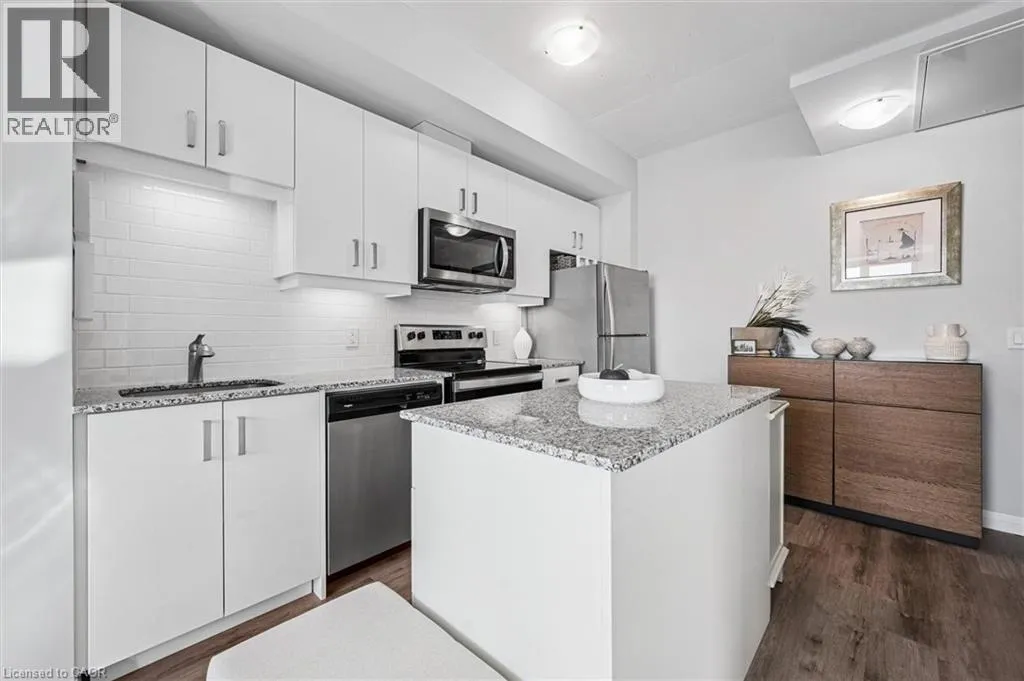 Victoria Street to Garment Street Welcome to Garment Street Condos â where modern design meets downtown convenience. This state-of-the-art building offers exceptional amenities including a rooftop pool, sports court, urban rooftop park with BBQs, yoga studio, fully equipped fitness centre and pet run â all designed to elevate your lifestyle. This spacious 1-bedroom is situated on the top floor of the buildings podium and is a quiet corner unit. This unit showcases premium finishes throughout such as premium vinyl flooring throughout, stainless steel appliances, and professionally installed motorized window coverings. Located in the heart of the Innovation District, youâre just a short walk to Googleâs Campus, Central LRT Station, Deloitte, Victoria Park, and KPMGâs newest offices. This is your opportunity to live where Kitchenerâs future is being built! (id:27476)