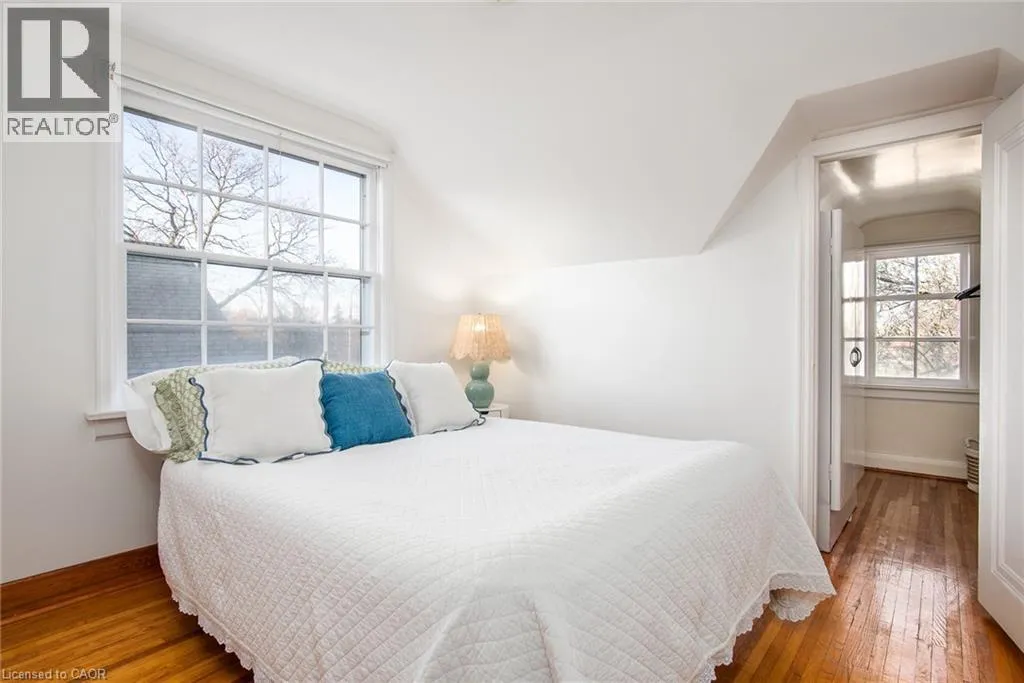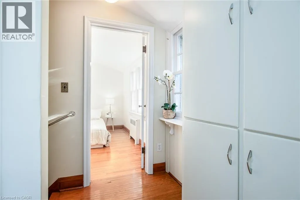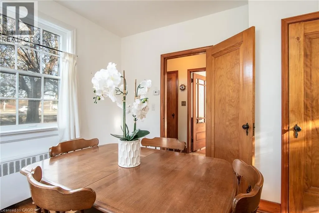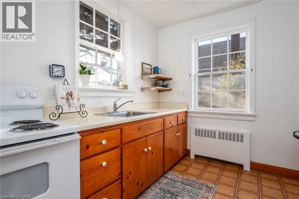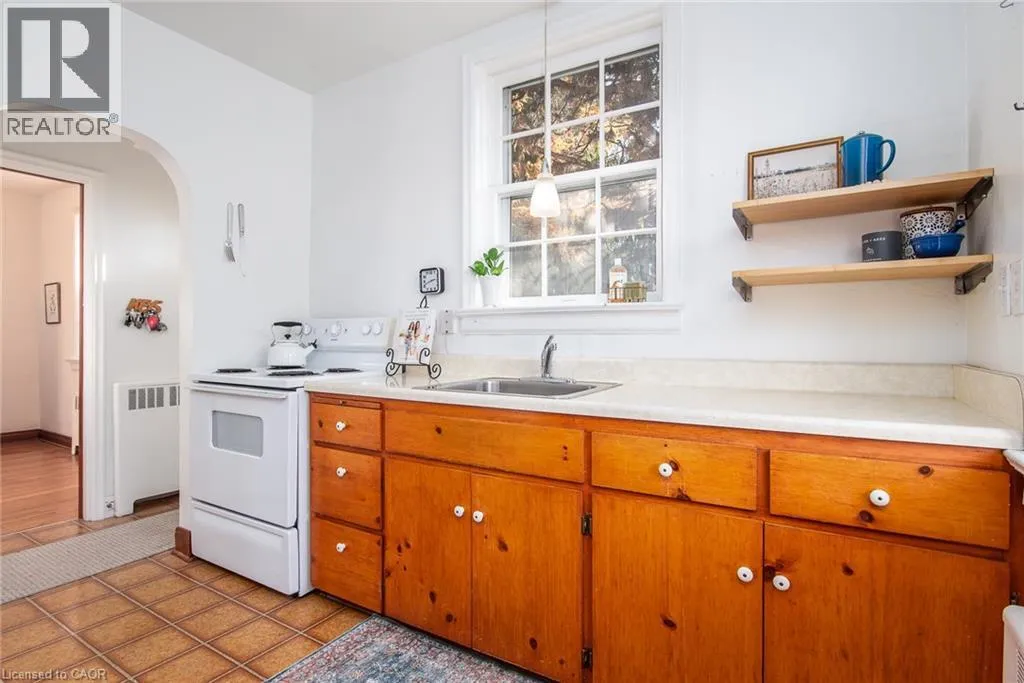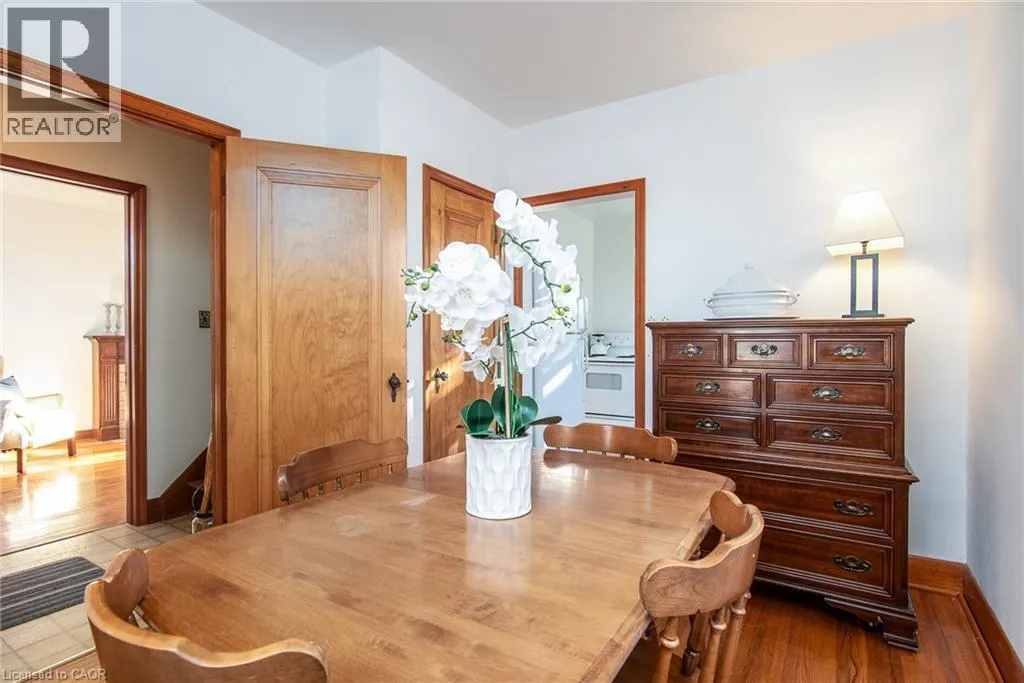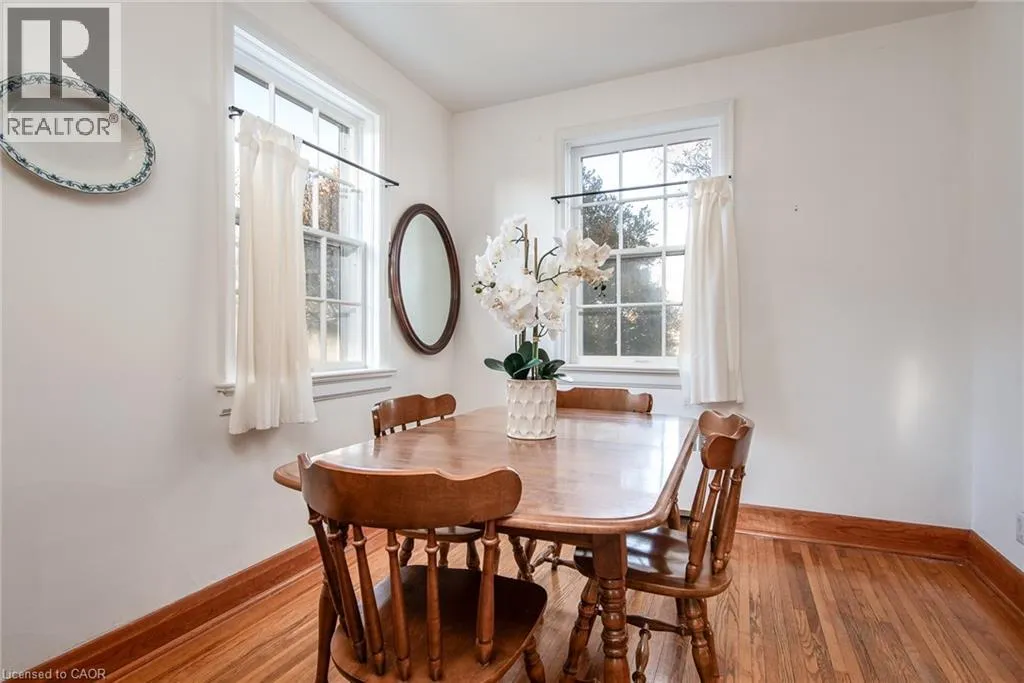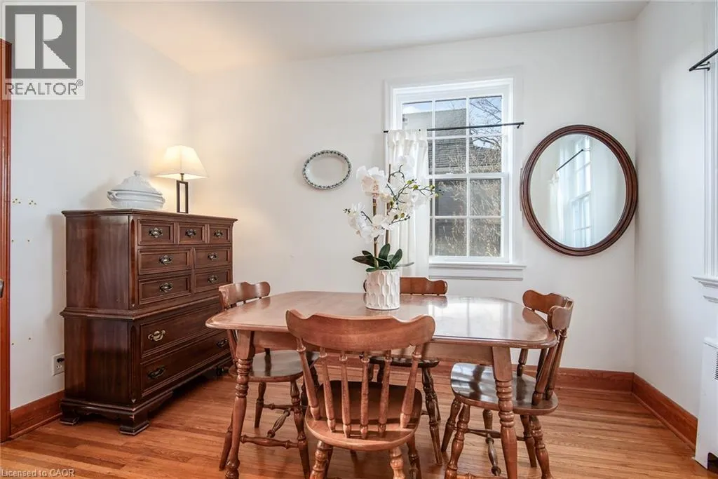 PRESTON ST TO FLORAL CRESCENT Cute as a button, this fully detached 1.5 story Kitchener home has been lovingly maintained by the same owner for close to 50 years, and represents a fantastic opportunity for anyone seeking to break into the market who would love to avoid condo fees. Step inside and you'll find beautiful hardwood flooring through much of the main level, and an overall charm that harkans back to yesteryear. The main level offers a spacious family room with tons of natural light and a wood-burning fireplace. Next up is the white eat-in kitchen, and the main level is capped off by an inviting formal dining room where youâll love hosting. Upstairs youâll find two bedrooms including the generous primary, along with a second bedroom boasting a large walk-in closet. Thereâs also a 4 piece bathroom up here as well. The unspoiled basement offers lots of storage space, and potential for a variety of future uses. The backyard is accessed via the main level and offers nice greenspace, along with a shed for your outdoor storage. With parking for 3 cars and located at the dead-end of a crescent, thereâs minimal road traffic immediately in front of the home. Centrally located close to all amenities and with quick highway access, getting around town is a breeze from this location. Youâre also just steps from Rockway Gardens and the Rockway Golf course. Donât miss your chance to see this well maintained home! (id:27476)