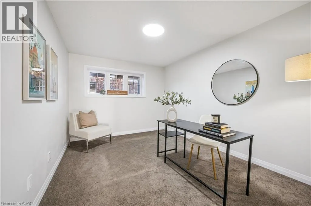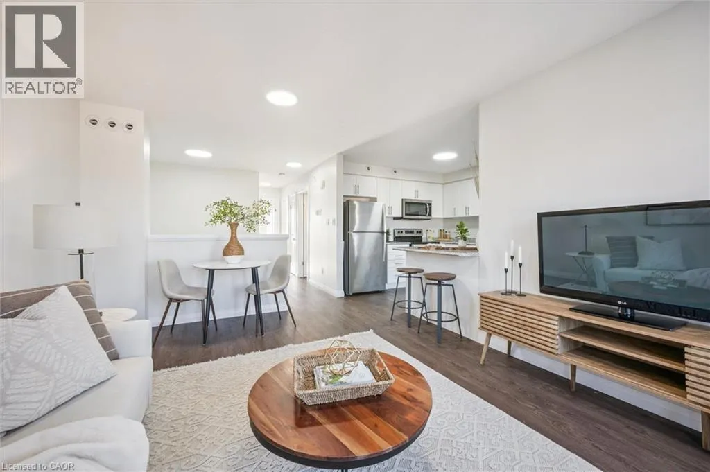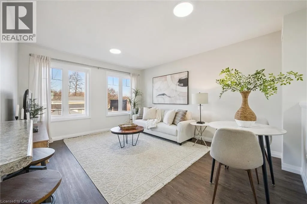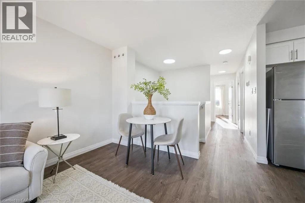 King Street East/ Morrison RD Step into this beautifully refreshed multilevel townhome, featuring exceptional versatility and modern comfort. This home features two bedrooms, two bathrooms, and a rare bonus of two parking spaces. The main floor room provides valuable flexibility and can serve as a third bedroom, home office, gym or an additional tv room, making it easy to tailor the space to your family's needs. The home has been freshly painted, new kitchen backsplash, new lighting throughout, with laminate flooring throughout for a clean, cohesive look. The bright, open kitchen opens to a terrace balcony. It also has a convenient upstairs laundry and two generously sized bedrooms. Centrally located in Kitchener, this property has quick access to Highway 8, the 401, Fairview Park Mall, Conestoga College, and everyday amenities. Move in ready and exceptionally functional, this is the perfect home for first time buyers, young families, or anyone seeking adaptable living in a prime location. (id:27476)