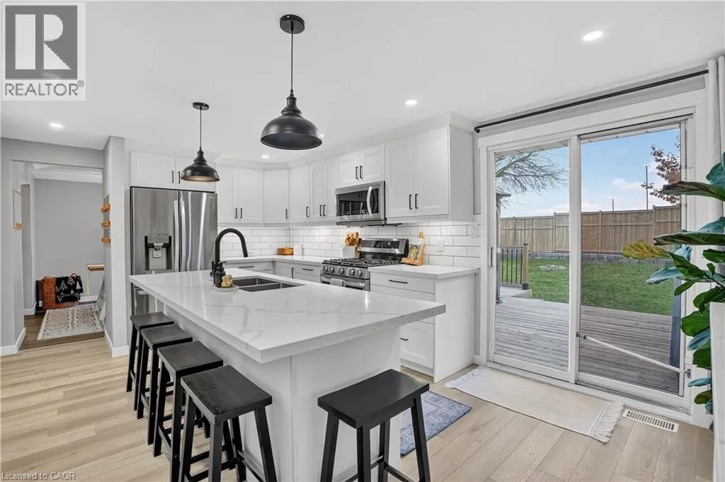 Bleams Road to Thistledown Drive to Rushbrook Drive. Welcome home!  Not only is this beautiful home move in ready, but is has been totally and lovingly renovated, nothing has been overlooked. This home sits on a large lot on a quiet mature crescent. Recent improvements include a stunning new kitchen with a large island and quartz countertops, and new laminate flooring throughout. Furnace was replaced in 2019, Central Air in 2025, Driveway 2024, Fence 2023, Deck & Shed 2021. Upstairs are 3 spacious bedrooms and a renovated bathroom. The finished basement is the ultimate hang out space. The large yard is completely fenced and gives off major 'backyard oasis' vibes with the deck, gazebo and hot tub. You won't want to waste any time before inviting your friends and family over! (id:27476)