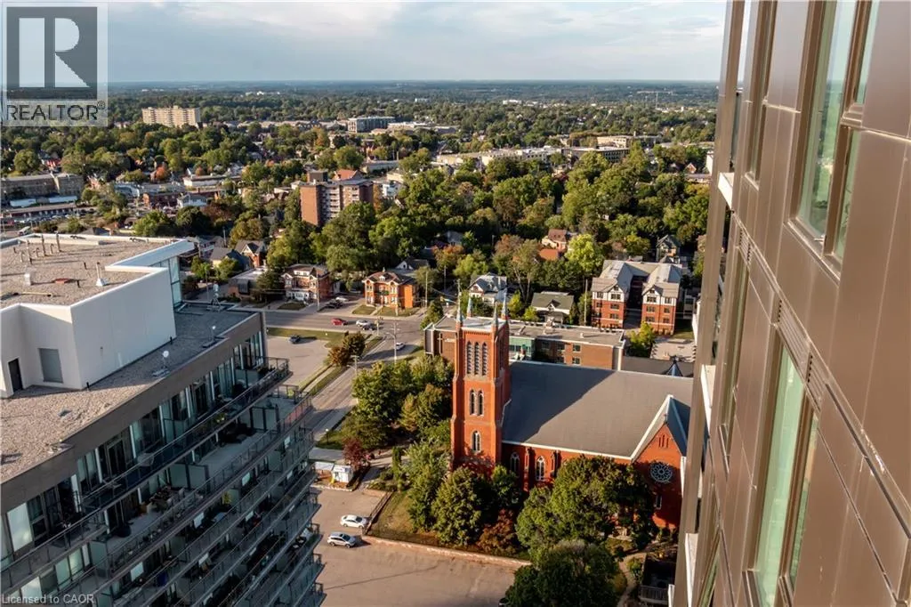 Duke & Young Street FRESHLY PAINTED! UNDERGROUND PARKING INCLUDED ! 10-FOOT CEILINGS! Welcome to upscale urban living in this stunning 2-bedroom, 2-bathroom corner unit on the 24th floor of the prestigious Young Condos in downtown Kitchener. Available IMMEDIATELY, this meticulously upgraded suite is flooded with natural light and boasts breathtaking panoramic views, offering an unmatched blend of elegance, comfort, and functionality. Step into a thoughtfully designed open-concept layout with high-end finishes throughout. The kitchen features premium stainless steel appliances and ample storage. Both bedrooms are generously sized, with the primary bedroom offering a private ensuite. An in-suite washer and dryer adds everyday convenience. This lease includes two rare underground parking spaces and one private storage locker. Young Condos offers a range of modern amenities, including a fitness center, a dedicated yoga room, a rooftop terrace with a BBQ, a resident lounge, and more. Located in a vibrant, walkable area near shopping, restaurants, the LRT, Google, and Victoria Park, this is not just a condoâitâs a lifestyle (id:27476)