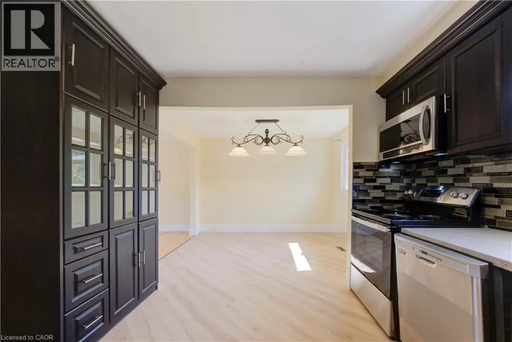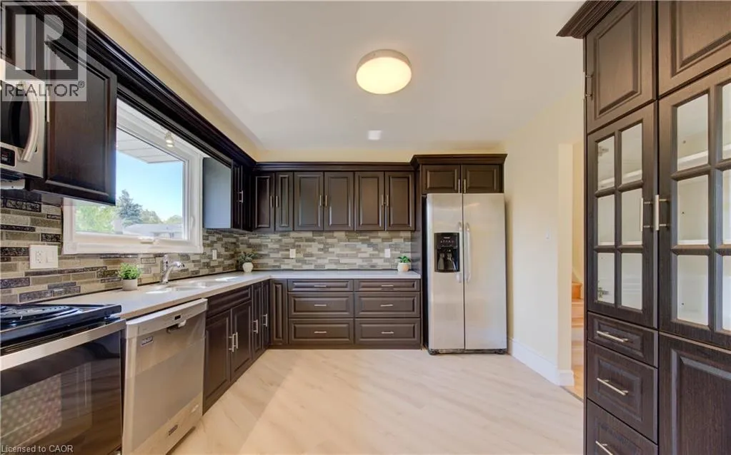 Highland and Fischer-Hallman Welcome to this move-in ready 3-bedroom, 2-bathroom detached side split in a great location. The home features a bright foyer/mudroom entry, a newly renovated kitchen, and a spacious open-concept living and dining area with plenty of natural light. All bedrooms are well-sized, offering comfortable space for the whole family. A cozy additional living room includes a fireplace and sliding doors that open to the backyard, creating a perfect spot to relax or entertain. The finished basement provides even more space for recreation, hobbies, or a home office. The property also offers a generous backyard, ideal for gatherings and play, plus a garage for parking and storage. Conveniently close to public transit, grocery stores, schools, and quick highway access. (id:27476)