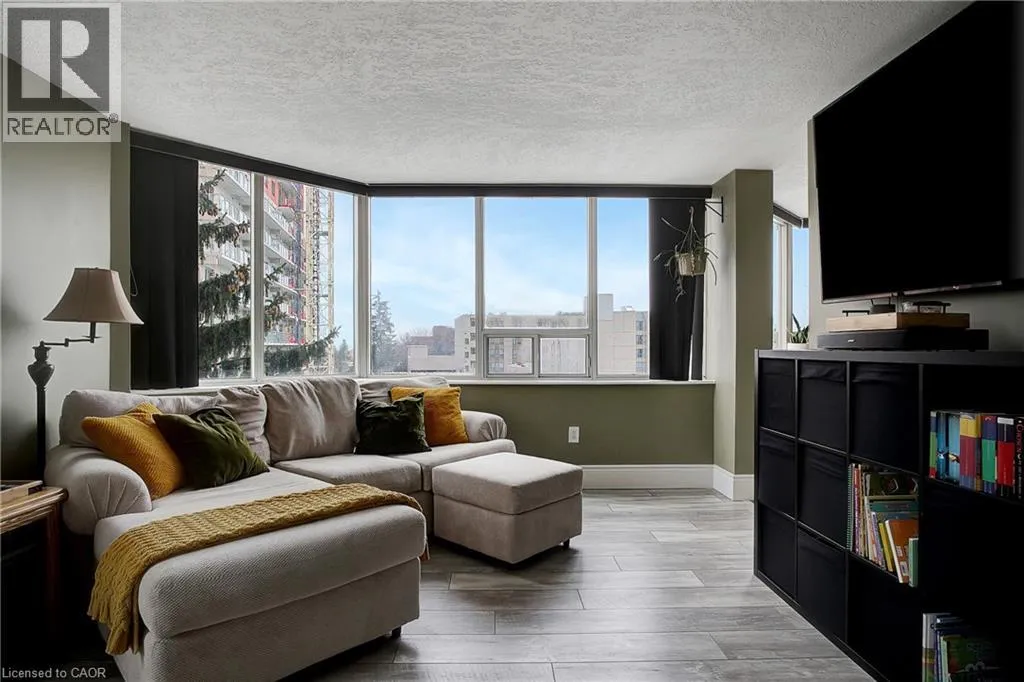 Fairway Rd N to King St E Welcome to 409-3227 King St E, an executive corner unit designed for modern comfort and convenience. Located in a vibrant community with easy access to transit, the 401/expressway, and premier amenities like Fairview Mall and Chicopee Ski Resort, this home offers both style and practicality. The spacious and bright living room seamlessly flows into the updated eat-in kitchen, complete with modern finishes and stainless appliances. The large primary bedroom features a 3pc ensuite with a new glass walk-in shower, ensuring a private retreat. A versatile second bedroom can be used as a guest room, office, or nursery, making this suite adaptable to your lifestyle. An additional 4pc bathroom and in-suite laundry with a new washer and dryer add to the functionality of the space. This unit includes secure underground parking and an assigned locker, providing convenience and peace of mind. The building offers a range of amenities, including a fully equipped gym, an indoor pool, a library, and a party room. Step outside to enjoy the outdoor patio area or explore the many restaurants, shops, and recreational options nearby. Whether you're seeking a home that's close to work, play, or both, this property delivers on every level. With its exceptional location, modern updates, and well-maintained features, 409-3227 King St E is ready to welcome you home. (id:27476)