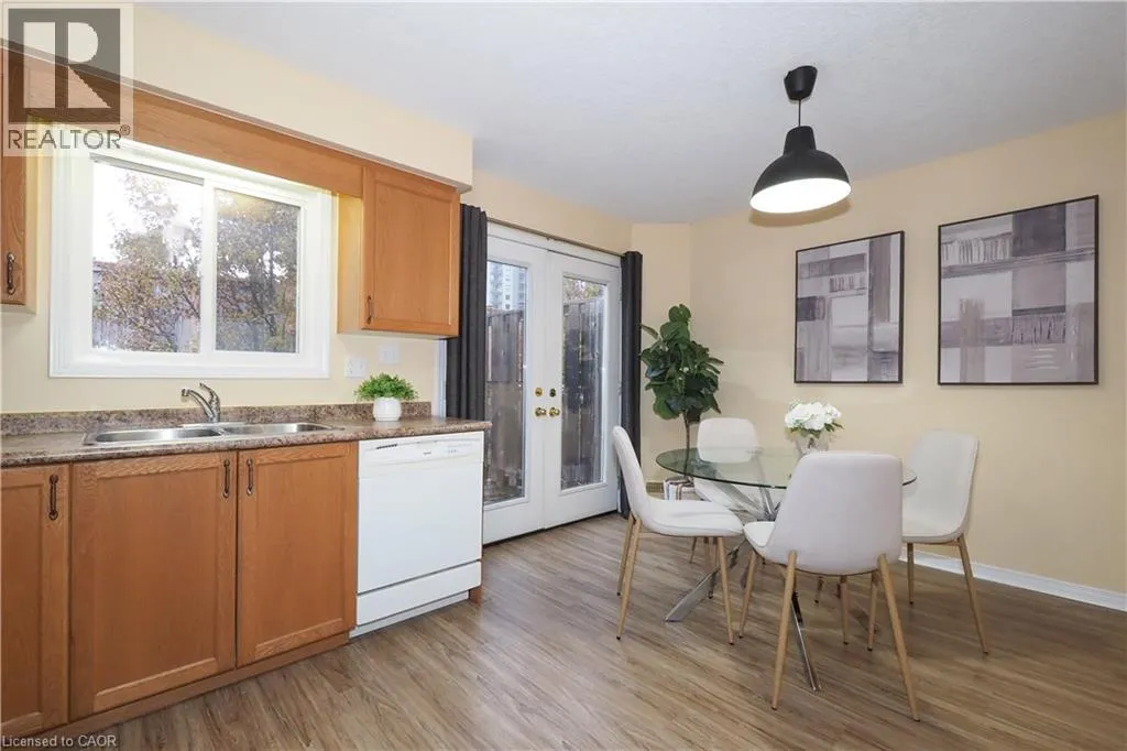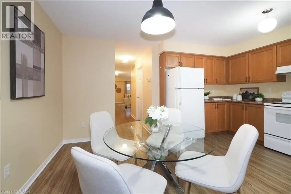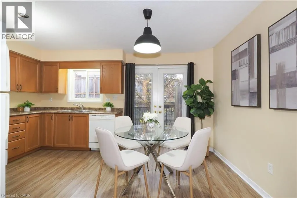 Victoria St S. to Bramblewood St. to Westmeadow Dr. Luxurious Townhouse Condo in Highly Sought-After KW Location! This meticulously maintained, 3-bedroom, 2-bathroom, 2-storey townhouse condo offers incredible value and a sophisticated, stress-free lifestyle. Prepare to be captivated by this stunning residence. With over 1,450 square feet of living space, this home is ideal for modern families and individuals. The Heart of the Home features an open-concept, spacious eat-in kitchen with a walk-out to a private, generous deck, dining area and living room. The main level is complete with a 2-piece powder room, a laundry/utility room and storage closet. The upper floor features three bright bedrooms with large closet spaces and a 4-piece bath. Five appliances are included with the sale. The very low monthly condo fee covers snow removal and landscaping, giving you back your time to enjoy the things that matter most. One assigned parking space is included, plus there is plenty of additional parking available. The complex also features a kids' playground for your family to enjoy. Situated in a superb location, you are steps away from every amenity imaginable at The Boardwalk at Ira Needles, including groceries, shops, restaurants, LCBO, theatre, fitness centers, medical centers, and more. Plus it is close to parks and great schools. To make your commute easier, this home is closely located to public transportation and Highways 7/8. This is more than just a home; it's a strategic investment and a sophisticated, effortless lifestyle waiting for you. Don't miss the opportunity to make this exceptional townhouse condo yours! Book your private showing today! (id:27476)