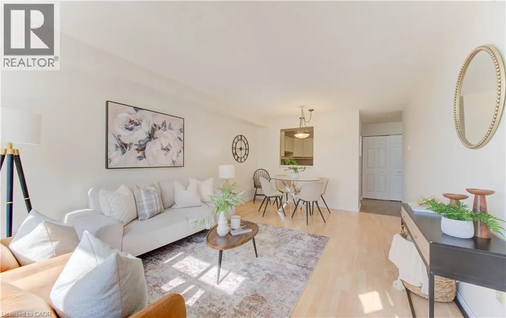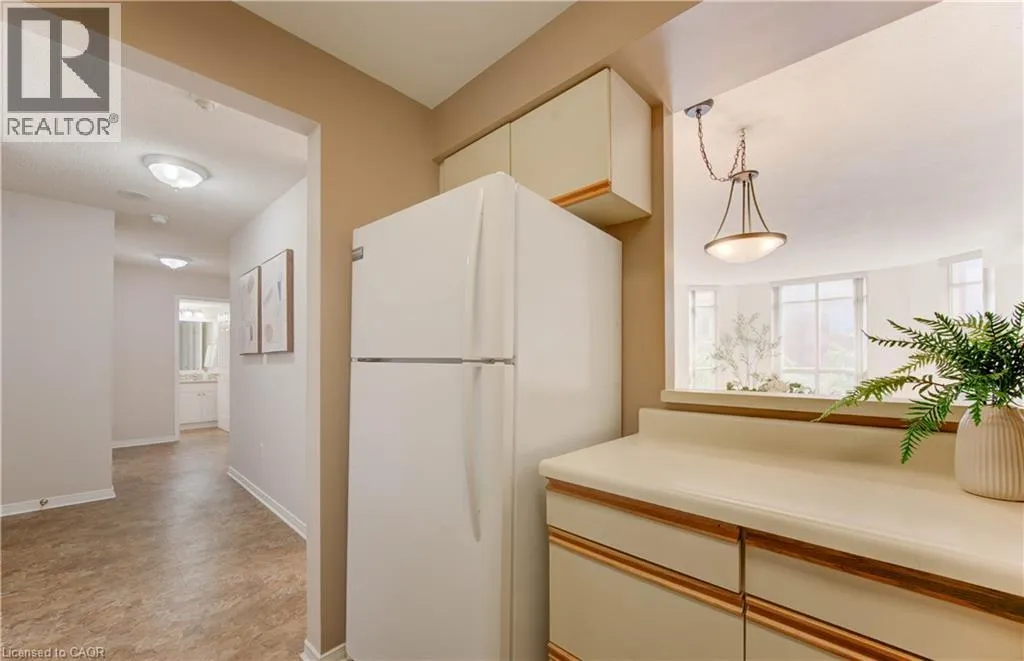 North into Eastwood Community off of King Welcome to Eastwood Community â 55+ Living at Its Best! Outdoor parking available at no cost and no extra condo fee for it! This bright and spacious 2-bedroom, 1-bath condo offers comfort, convenience, and a wonderful community lifestyle. Located in a well-established building at 1414 King St E, this unit features a nicely renovated bathroom, in-suite laundry, and a functional kitchen with a pass-through window to the open-concept dining and living room. Enjoy your morning coffee with fresh air on the east-facing balcony. Each room fills with natural light creating a warm atmosphere through out the day. The primary bedroom is generously sized, complemented by a second bedroom thatâs perfect for guests or a hobby space. Additional locker storage is included for your convenience. Life at Eastwood goes beyond your unit â the building is full of outstanding amenities, including a bowling alley, community room, planned weekly events (music, dinners, games, arranged meals in dining hall with take out options and more). Perfectly situated across from Rockway Golf Course and steps from the beautiful Rockway Gardens, this is an ideal spot for active, social living. Whether youâre looking for community, comfort, or location, this condo has it all! (id:27476)