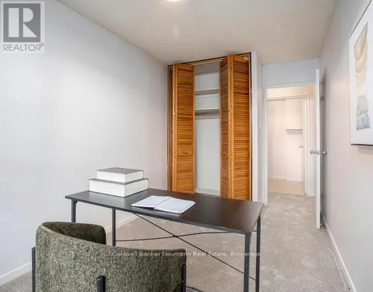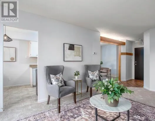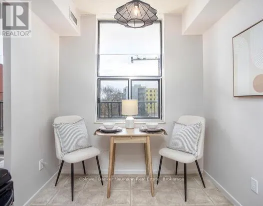 Cross Streets: Benton. ** Directions: Benton & Church. Welcome home! This charming 2-bedroom downtown condo has been freshly painted for its new owner (November 2025) and features brand-new carpeting (2025) for added comfort. Step inside to a spacious living room that opens onto an expansive, one-of-a-kind balcony with sweeping views of the vibrant downtown skyline-perfect for relaxing mornings or unwinding after a long day. Just off the efficient galley kitchen is a welcoming dining room, ideal for family dinners, hosting gatherings, or entertaining friends. The unit also includes in-suite laundry and generous storage, adding everyday convenience. The oversized bathroom has been beautifully maintained and offers both comfort and style. The two bedrooms are spacious and the whole unit has large windows which allow for plenty of natural light. The building is rich with amenities, including an indoor pool, sauna, party room with pool table and small library, bike room, newly remodeled fitness room, workshop, and a fully fenced outdoor entertaining area complete with BBQ facilities and picnic tables. Even better-your condo fees cover heat, hydro, and water! One underground parking space (#4, P3) is included with the unit. Situated within walking distance to Downtown Kitchener, the Kitchener Farmers' Market, Victoria Park, countless restaurants, ION public transit, places of worship, banks, shops, the LRT, and the scenic Iron Horse Trail, this condo offers an unbeatable location for convenience and lifestyle. Don't miss out on this lovely home-perfect for downsizers, first-time buyers, or investors. Book your private showing today-you won't be disappointed! (id:27476)