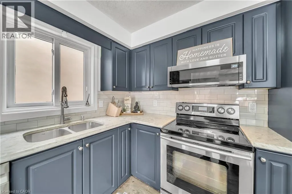 Strasburg Rd to Templewood Drive *WALKOUT BASEMENT* Welcome to 35 Templewood Dr, Kitchener - this beautiful family-friendly home is located in the highly desirable Brigadoon neighborhood. This home offers over 2,465 sq ft of finished living space, including a fully finished WALKOUT BASEMENT - perfect for first-time home buyers, large families, or investors seeking strong income potential. You will notice the great curb appeal right away, with a STAMPED CONCRETE PORCH, 1.5 car garage, and parking for two additional vehicles on the exposed aggregate CONCRETE driveway. A welcoming front porch leads into an OPEN-CONCEPT MAIN FLOOR with a bright living and dining area and a durable LAMINATE flooring throughout. The UPDATED KITCHEN is a true highlight, featuring a center island, QUARTZ countertops, modern backsplash, and stainless steel appliances â ideal for family meals or entertaining guests. The living area opens to a spacious UPPER DECK with a gas BBQ line, creating the perfect space for outdoor gatherings. Additional main floor features include a powder room, convenient laundry area, and direct access to the garage. Upstairs, you will find a comfortable FAMILY ROOM with a gas fireplace and three generously sized bedrooms. The primary bedroom includes a WALK-IN CLOSET and a 4-piece ensuite featuring a CORNER SOAKER TUB and SEPARATE STANDING SHOWER. The fully finished WALKOUT BASEMENT adds even more versatility, spacious recreation room with POT LIGHTS, oversized windows, direct access to a lower-level STONE PATIO and beautifully LANDSCAPED FENCED YARD. Itâs an ideal setup for entertaining, extended family living, or a potential IN-LAW SUITE. Recent updates includes: Roof shingles(2022), Furnace(2020), Heat pump(2024), Washer/Dryer(2024), Fridge(2020), Stove(2020), Dishwasher(2025), Microwave(2021). Enjoy nearby walking trails, excellent schools, parks, and convenient shopping â all within minutes. Don't miss the chance to call this exceptional property your home - book your private showing today! (id:27476)