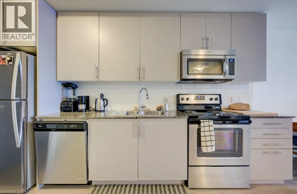 Duke at Young Street Welcome to this bright and modern 1-bedroom, 1-bathroom condo in the heart of Downtown Kitchener, complete with in-suite laundry and underground parking for added convenience. Enjoy effortless access to public transitâincluding the LRTâand walk to shops, restaurants, parks, and trails. The open living area features floor-to-ceiling windows that fill the space with natural light. The building offers impressive upscale amenities: a concierge-attended foyer, stylish sitting area, spacious party room, and a beautiful rooftop deck and garden with private outdoor dining and BBQ spaces. As a resident, youâll also have access to the premium amenities at 55 Duke Street, including a rooftop running track, fitness studio with boxing/kickboxing stations, TRX, a swim area, and a dedicated yoga space. This unit comes complete with one parking space and a large storage lockerâa rare combination for downtown living. Book your private showing today! (id:27476)