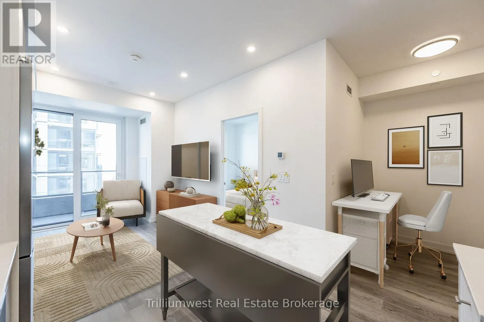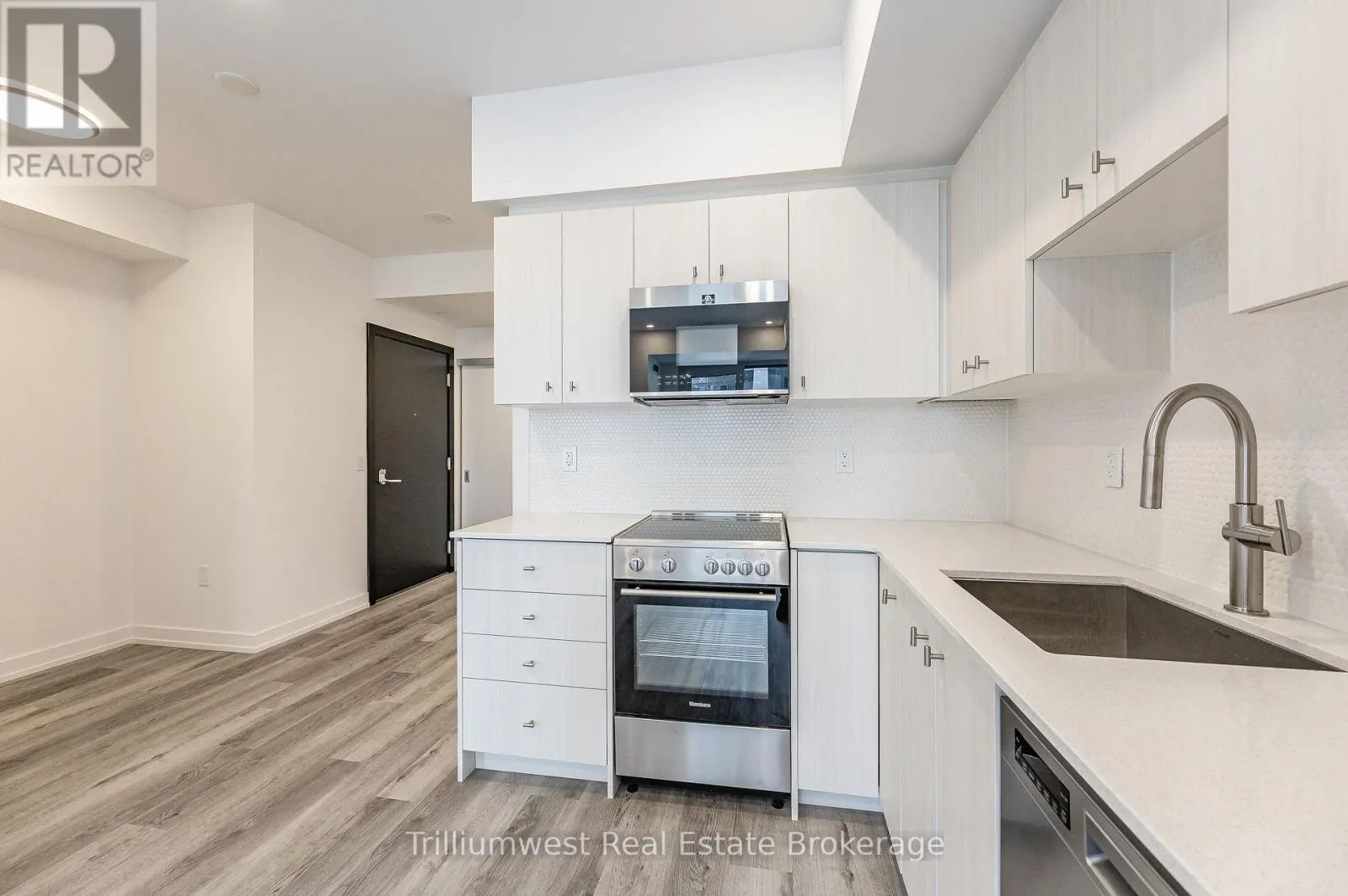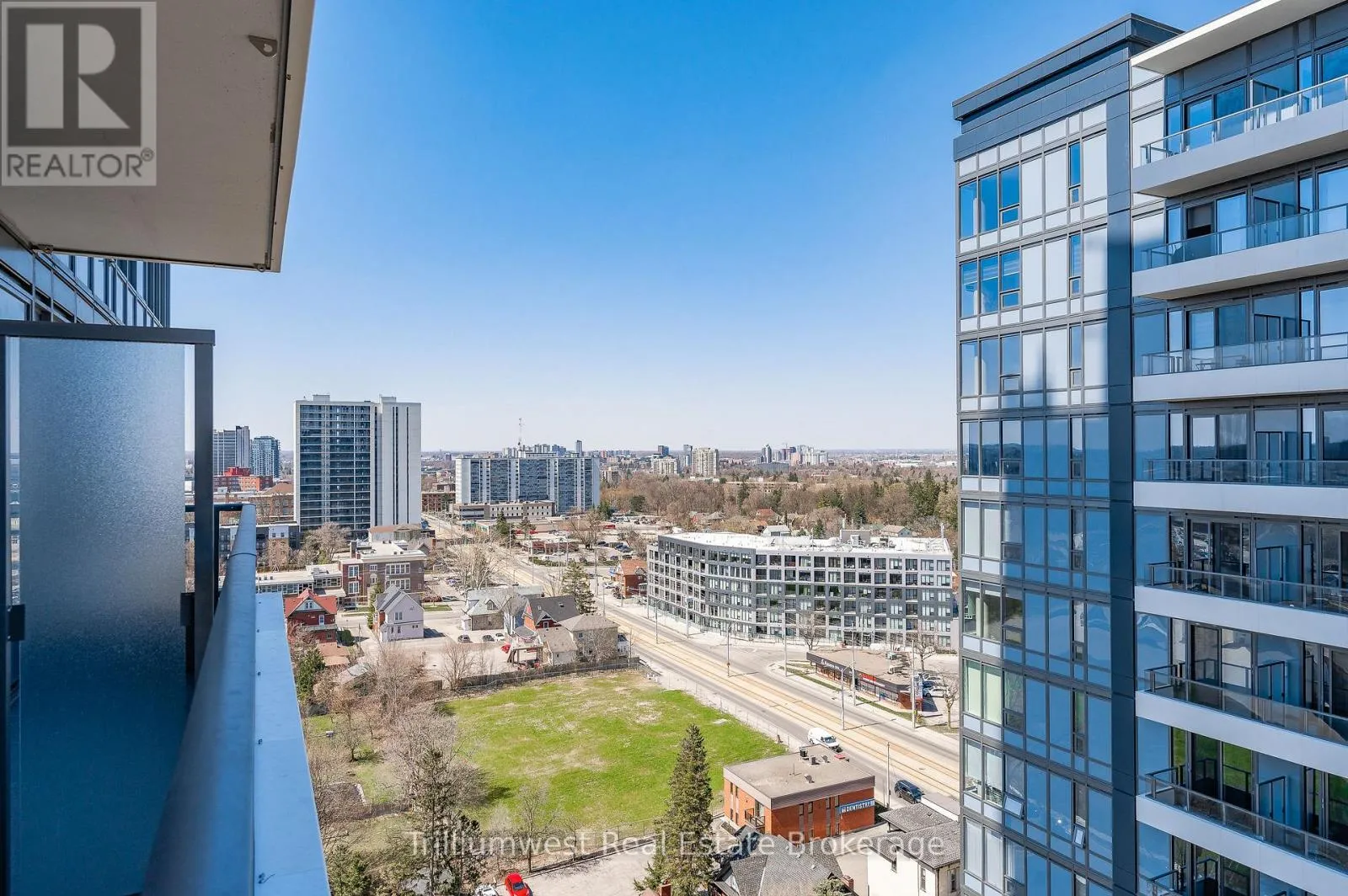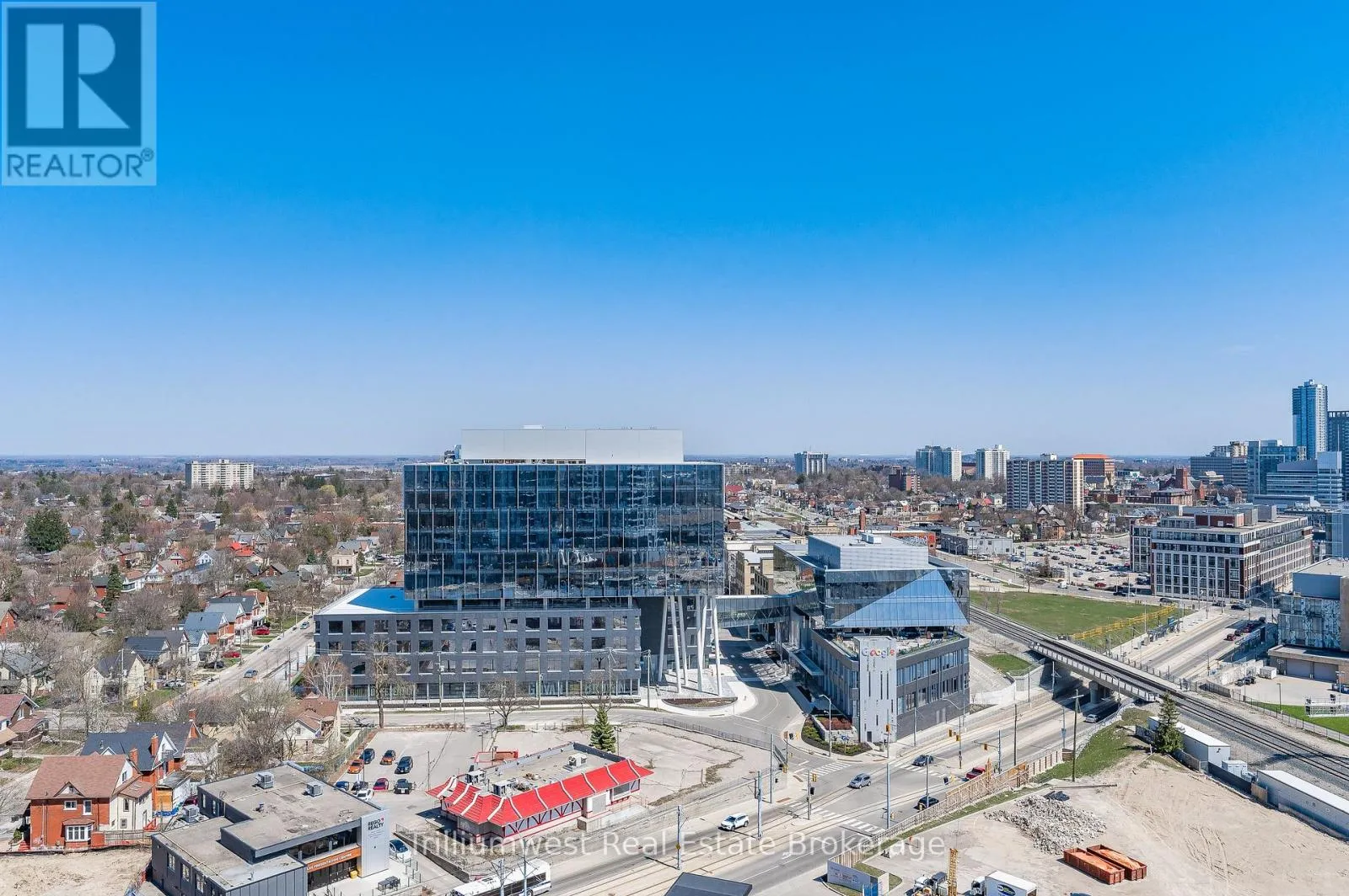 Cross Streets: King W and Wellington S. ** Directions: King St W to Wellington St S, Park on Walter St. One of the sweetest layouts for a One Bedroom Plus Den condo in the much hyped Station Park Tower 2. This one includes Underground Parking, along with Heat and AC. Station Park is a seriously stylish property with lifestyle built right in, including but not limited to: a Swim Spa, Gym, Peloton Room, Yoga Studio, Bowling Alley, Pet Spa, Arcade Hall, Bike Storage, and an Outdoor Terrace with Community BBQ's. Centrally located in the Innovation District with transit, restaurants, entertainment, coffee shops, and shopping only steps away. Suite-specific upgrades include gorgeous granite counters, a timeless white penny-round backsplash, beautiful stainless steel appliances, in-suite laundry, and a huge balcony with amazing views of Downtown Kitchener. Floor-to-ceiling windows flood the unit with happiness, and extra closet space makes this an absolute must-see. Come and take a closer look... whether you're searching for an investment or for a place to call home, this may well be the perfect fit for your stylish urban lifestyle. (id:27476)