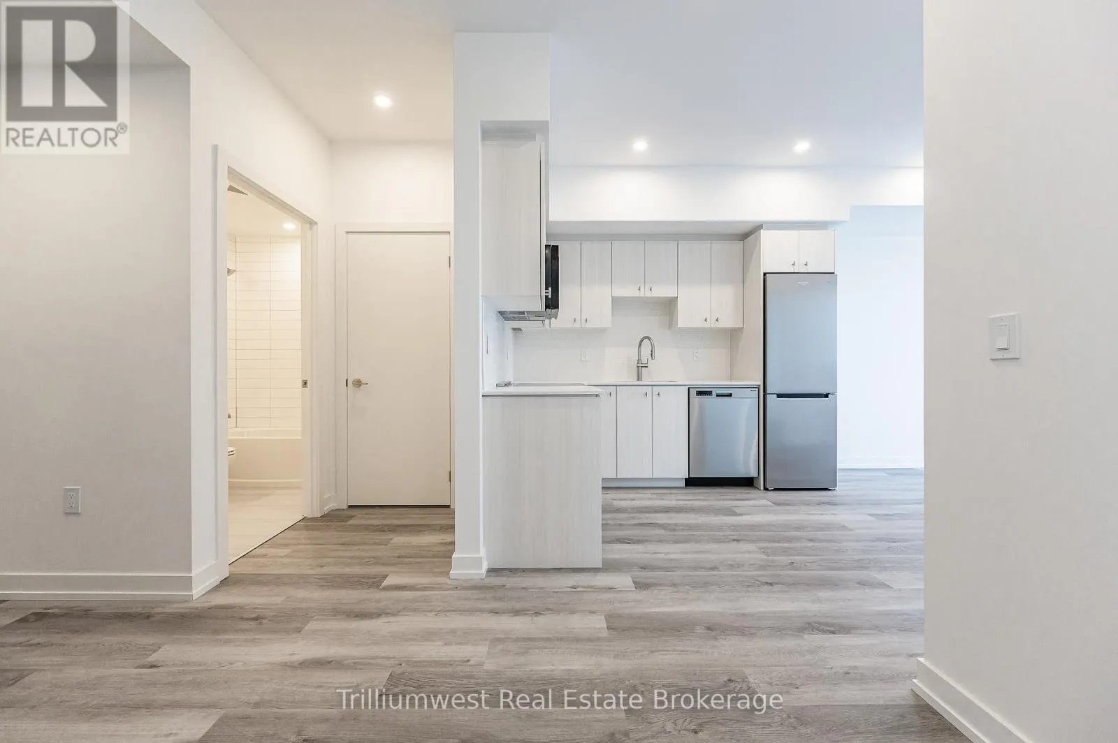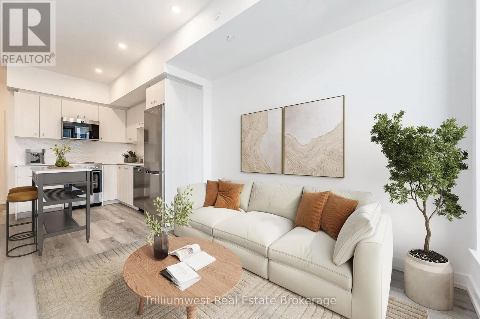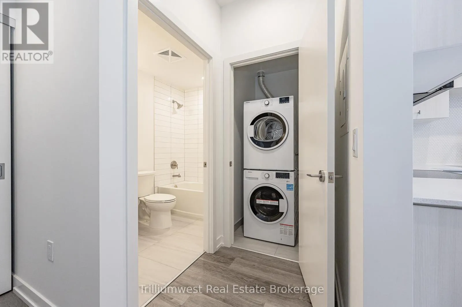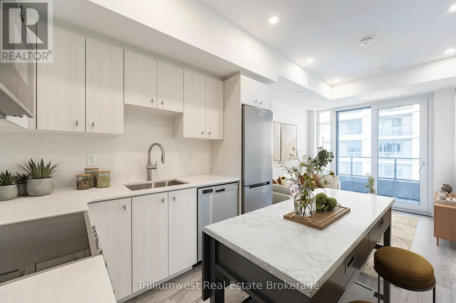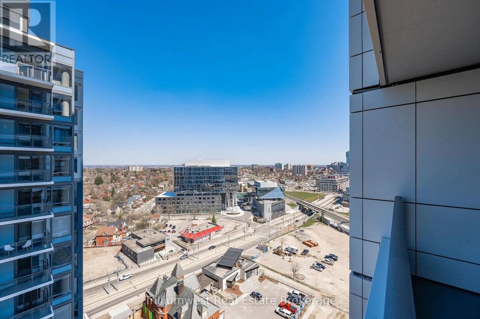 Cross Streets: King W and Wellington S. ** Directions: King St W to Wellington St S, Park on Walter St. One of the sweetest layouts for a One Bedroom Plus Den condo in the much hyped Station Park Tower 2. This one includes Underground Parking, along with Heat and AC. Station Park is a seriously stylish property with lifestyle built right in, including but not limited to: a Swim Spa, Gym, Peloton Room, Yoga Studio, Bowling Alley, Pet Spa, Arcade Hall, Bike Storage, and an Outdoor Terrace with Community BBQ's. Centrally located in the Innovation District with transit, restaurants, entertainment, coffee shops, and shopping only steps away. Suite-specific upgrades include gorgeous granite counters, a timeless white penny-round backsplash, beautiful stainless steel appliances, in-suite laundry, and a huge balcony with amazing views of Downtown Kitchener. Floor-to-ceiling windows flood the unit with happiness, and extra closet space makes this an absolute must-see. Come and take a closer look... whether you're searching for an investment or for a place to call home, this may well be the perfect fit for your stylish urban lifestyle. (id:27476)