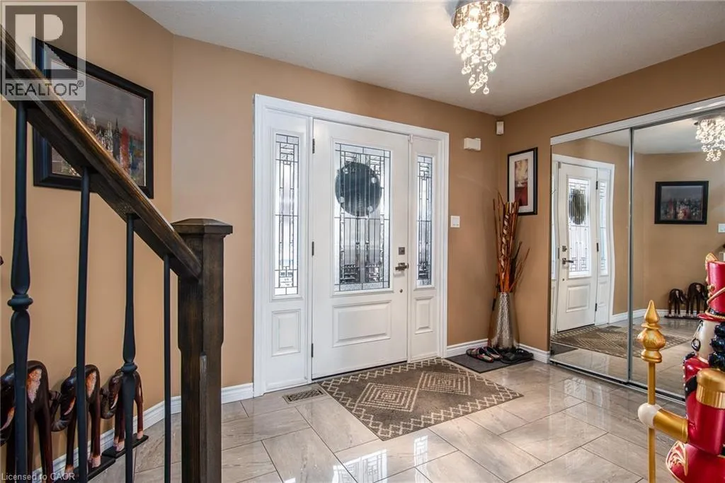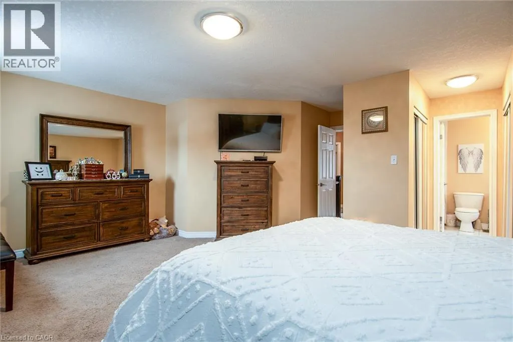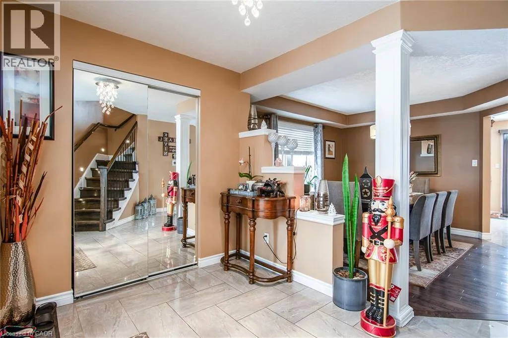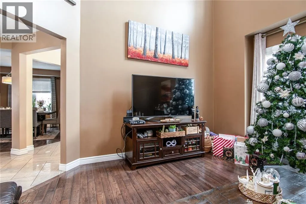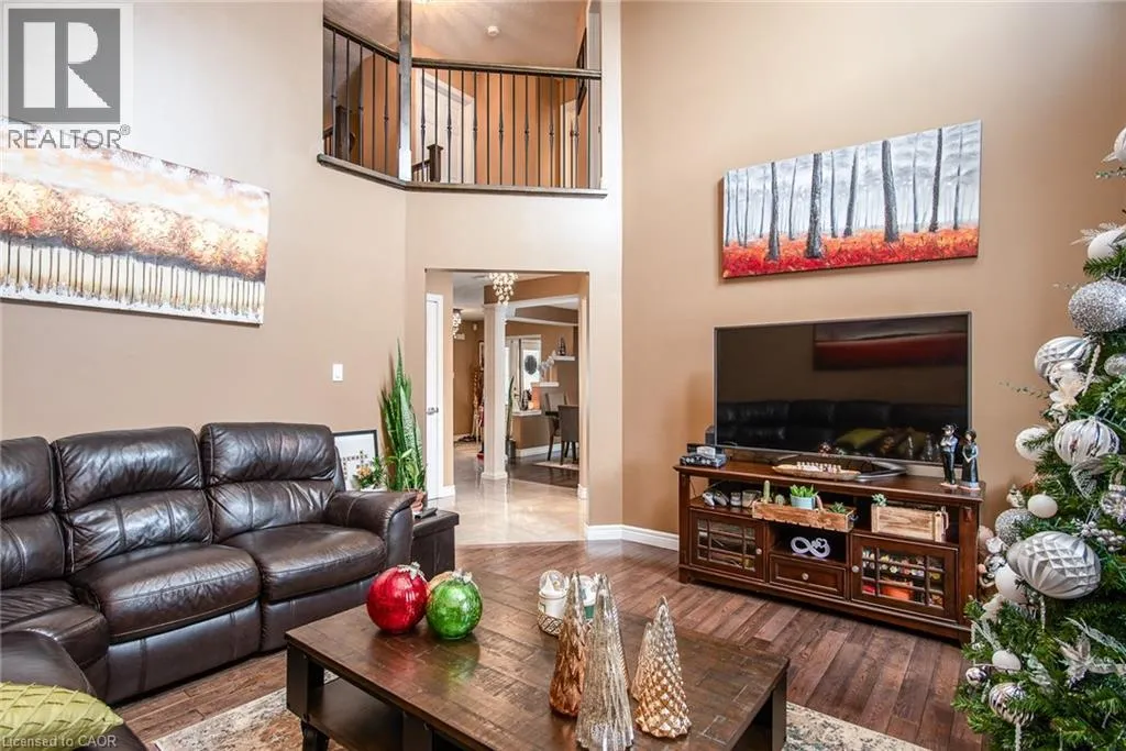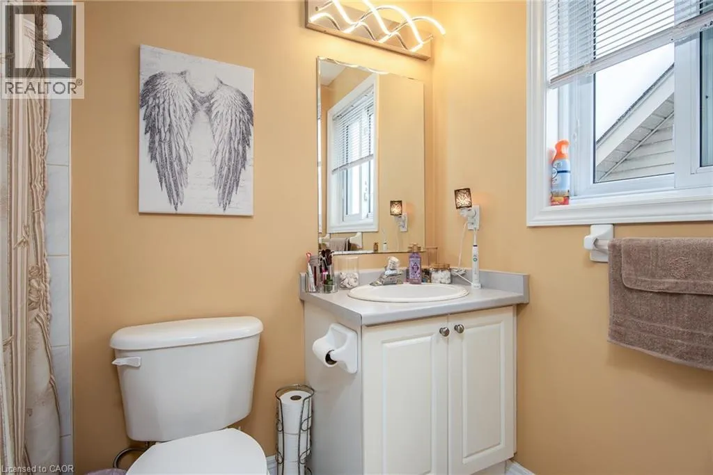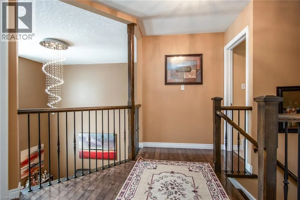 Homer Watson to Doon South Welcome to this inviting 3-bedroom, 2.5-bathroom home located in a fantastic neighbourhood close to all amenities with easy highway access. The spacious foyer opens into a bright kitchen featuring quality cabinetry and granite counterops, along with a large dining room accented by hardwood flooring. The living room boasts an impressive 16-foot ceiling, creating an open, airy feel and offering a stunning view to the second floor. From the kitchen, step through the sliding doors onto a deck that overlooks a beautifully landscaped, fully fenced yard, perfect for entertaining. Enjoy an additional patio area, a fire pit, and lush gardens, plus a strudy stone-faced shed (hydro run to shed but not connected). Upstairs, you'll find three comfortable bedrooms, including a bright primary suite with its own ensuite. A second full bathroom serves the remaining bedroom. This well-maintained home offers comfort, style, and convenience. You will not be disappointed. (id:27476)