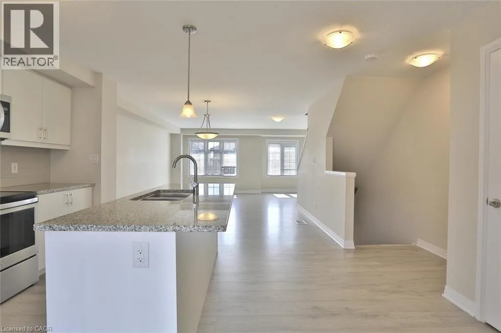 THOMAS SLEE DRIVE, RIGHT ON BLAIR CREEK TO RIDGEMOUNT STREET Newer Townhouse for Lease â Prime Location Near Hwy 401! Beautifully upgraded 3-bedroom, 3-bathroom townhouse available for lease in a desirable, family-friendly neighbourhood with quick access to Highway 401. This bright and spacious home is finished top to bottom and features an open-concept main floor with modern laminate and ceramic flooring, a stunning kitchen with granite countertops, stainless steel appliances, and a large islandâperfect for both everyday living and entertaining. The primary bedroom includes a walk-in closet and a private 3-piece ensuite with a ceramic and glass shower. Enjoy the convenience of second-floor laundry, central air conditioning, and a single-car garage with automatic opener and remotes. Located close to parks, shopping, and within walking distance of a brand-new elementary school, this home is perfect for professionals or families seeking a turn-key rental in a growing community. Photos as per vacant unit. Utilities paid by tenants include water heater and softener rentals. Good credit is required, and a full application must be submitted. (id:27476)