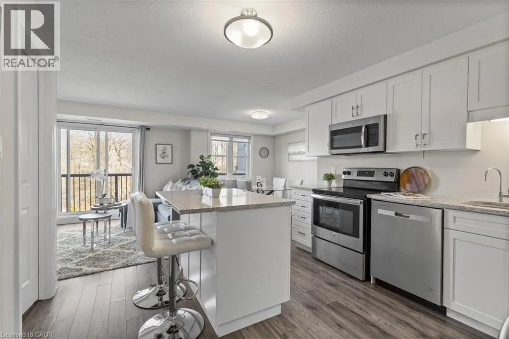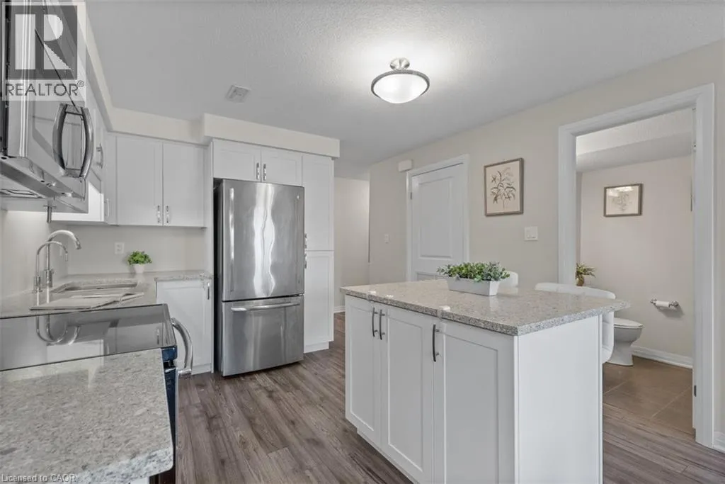 Fischer Hallman/Trussler Welcome home! This elegant Barrington model offers 1,005 sq. ft. of stylish, low-maintenance living with 2 bedrooms, 1.5 baths, and TWO balconies overlooking a peaceful pond and treeline. Enjoy the premium builder upgrades, including enhanced kitchen cabinetry, upgraded counter-tops, a modern island, pantry, upgraded fixtures, and six quality appliances. The bright, open-concept main floor is ideal for everyday living and entertaining, with direct access to the first balcony. The all-white modern kitchen with quartz counter-tops is waiting for you to showcase it every-time you host a dinner party. Upstairs features two comfortable bedrooms; your primary with its own balcony; a 4-piece bathroom, and convenient upper-level laundry. Perfectly located near Highway 7/8 and the 401, Sunrise Shopping Centre, grocery stores, restaurants, transit, parks, and scenic trails like the Iron Horse Trail, this move-in-ready home offers exceptional value and one of the best views in the community! (id:27476)