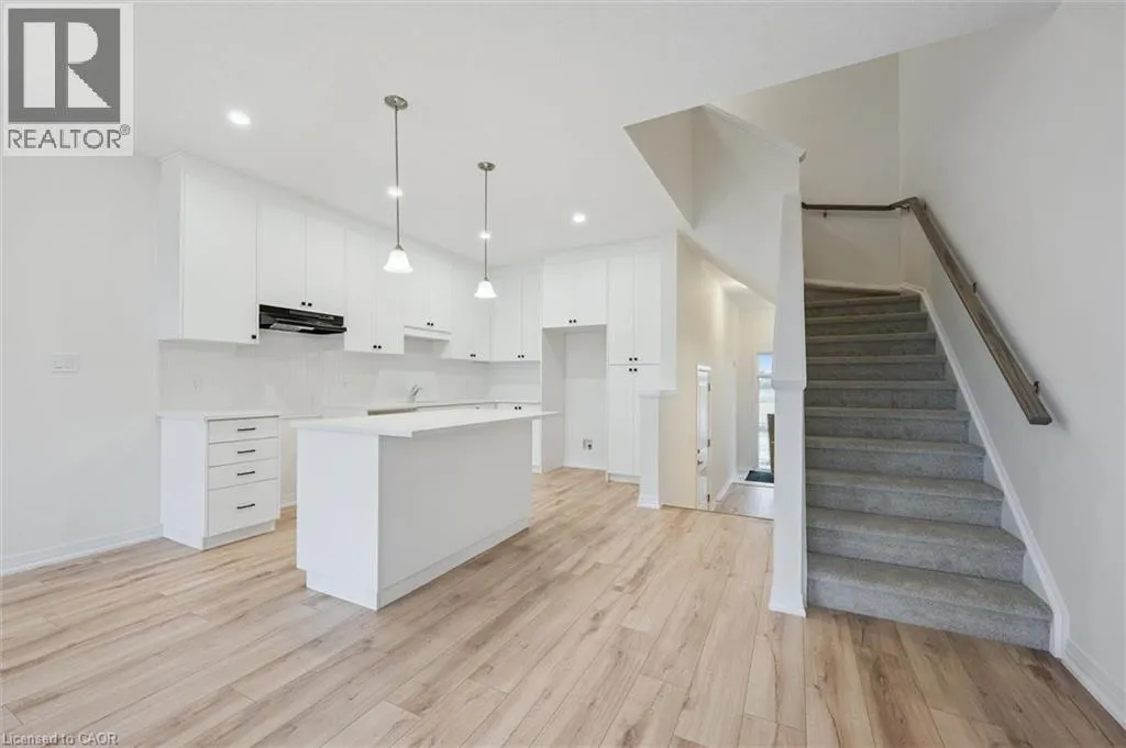 Stauffer Woods Tr to Jacob Detweiller Dr to Winter Wren Cres Brand new, FREEHOLD townhouse, ready now, at Harvest Park in Doon South, with finishes chosen by the builder's design team. 9 ft ceiling on the main floor, kitchen with white cabinetry, quartz countertops & island. Main floor with light-toned laminate flooring in kitchen, dinette and living room, and 12 x 24 tile in foyer and powder room. At the 2nd level, the primary bedroom is spacious and offers a large walk-in closet. The main, upstairs bath offers double vanity & quartz countertops. Three additional bedrooms complete this level. Excellent location in a sought-after neighbourhood - near HWY 401 access, Conestoga College and beautiful walking trails. Energy star certified! CURRENT PROMOTION - enjoy A FREE stainless FRIDGE, STOVE AND DISHWASHER. Sales Centre located at 154 Shaded Cr Dr in Kitchener - open Monday, Tuesday, Wednesday, 4-7 pm and Saturday, Sunday 1-5 pm. (id:27476)