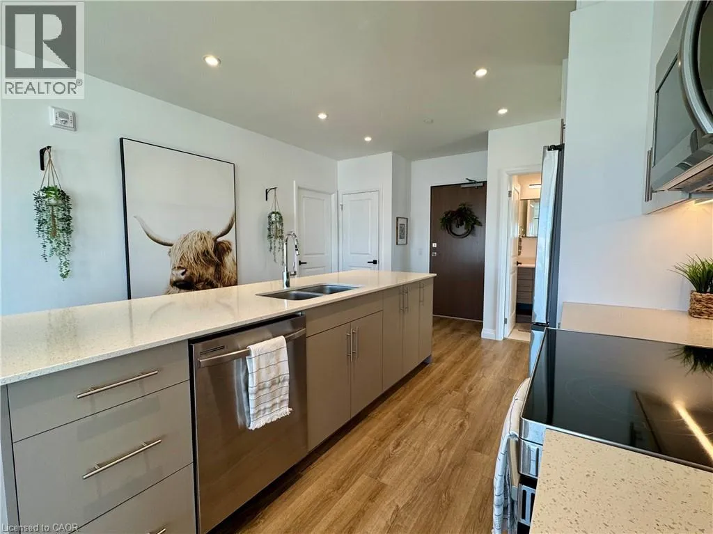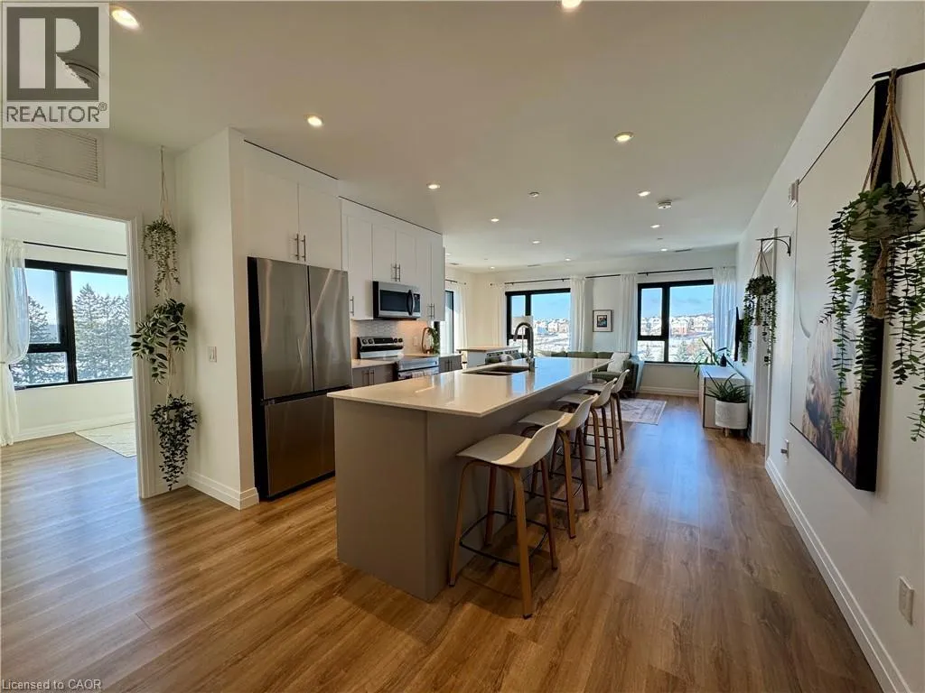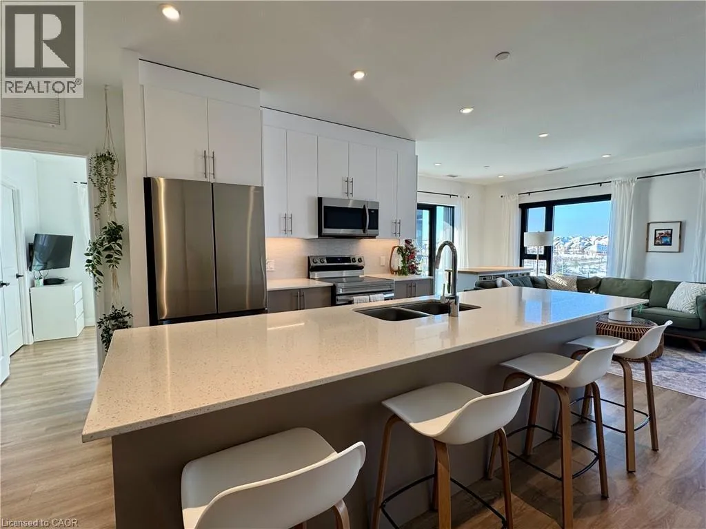 Homer Watson Blvd to New Dundee Rd Discover the charm of Rainbow Lake in this well-designed condo at Unit 502 â 525 New Dundee Rd. Offering 2 bedrooms, 2 bathrooms, and 1,055 sq. ft. of thoughtfully crafted living space, this lease combines modern style, comfort, and a connection to nature. The open-concept kitchen, living, and dining areas are bright and inviting, perfect for unwinding after a long day or hosting friends and family. The modern kitchen comes equipped with stainless steel appliances and ample cabinetry, ideal for everyday cooking or weekend entertaining. Step out onto the spacious balcony to take in breathtaking views of Rainbow Lake. Both bedrooms offer generous walk-in closets, with the primary bedroom featuring its own 3-piece ensuite for added convenience. Residents enjoy a wide range of premium amenities, including a fitness center, yoga studio with sauna, library, social lounge, party room, pet grooming station, and direct access to the serene Rainbow Lake conservation area. Donât miss your chance to call this highly sought-after Kitchener community home, where peaceful living meets modern convenience and exceptional amenities. (id:27476)