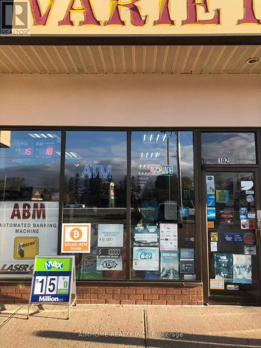 Sportworld Dr/King St E High margin convenience store located in a busy plaza, together with Tim Hortons , Subway, Factory burger, True north weed shop, 2001 video audio at same plaza. Weekly sales $9,000. Within this $9,000, cigarettes portion is 55% with profit Margin is15% , grocery 45% with 50% margin. Lotto commission monthly $2,000, ATM commission $200 a month, Bitcoin $350 a month, other rebates & ads income $100 monthly, has alcohol license. Rent $5,600 all inclusive ( tmi & water), hydro $550, internet & phone $150, alarm $30, insurance $250 , others $50. Lease until May 31, 2030, with + 5+5 options. Net income: $90,000 a year (salary included). (id:27476)