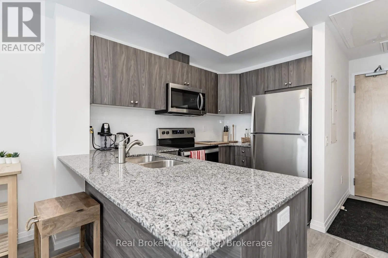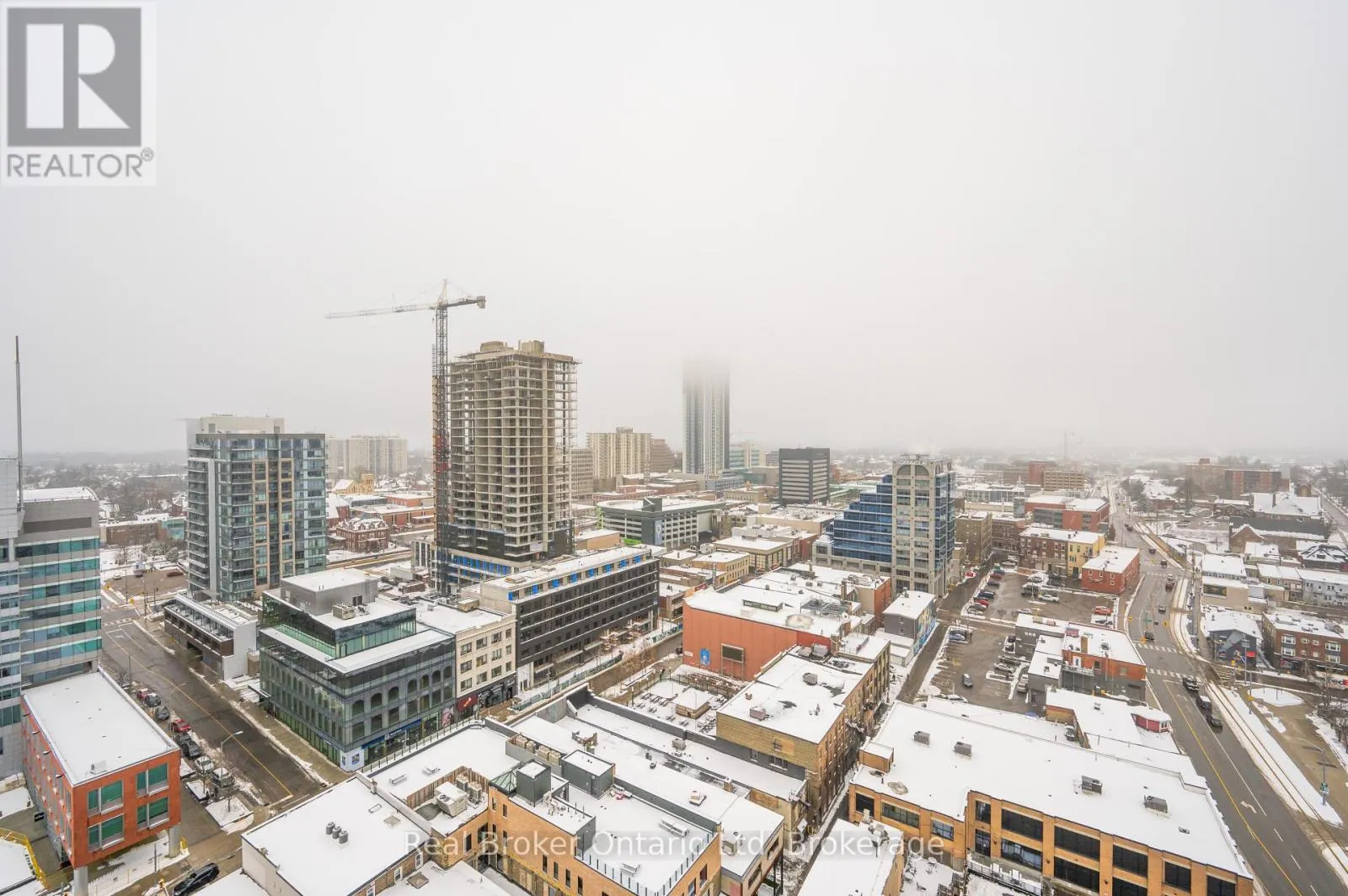 Cross Streets: Charles St W and Gaukel St. ** Directions: on Charles. February 1st possession! Welcome to the 20th Floor at Charlie West. Wake up above the city. This 1-bed, 1-bath suite puts you 20 storeys up with panoramic views and a private balcony to take them in. At 550 square feet, the layout is smart and the finishes are thoughtful-premium vinyl floors, soft-close cabinetry, expanded upper storage, and upgraded lighting throughout. The bedroom closet has been maximized for real-life living. Charlie West isn't just a building, it's a lifestyle. Residents enjoy a fully equipped gym, dedicated yoga studio, rooftop patio with BBQs, a bookable guest suite, concierge service, and a pet run complete with washing station. Hungry? Take the elevator down to 271 West, the Italian spot on the main floor. Step outside and you're in the heart of downtown Kitchener-steps from the ION LRT, GO Transit, Victoria Park, Google's Canadian hub, and the Tannery. McMaster Medical School and UW's School of Pharmacy are around the corner. Restaurants, cafés, and nightlife are all at your doorstep. Heat, water, and high-speed internet included. This is urban living without the commute, the hassle, or the hidden costs. Book your showing. (id:27476)