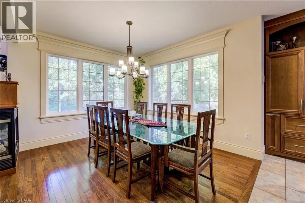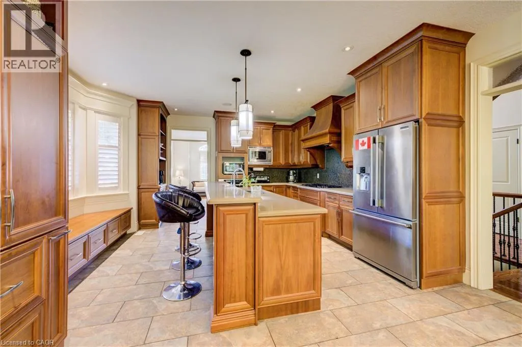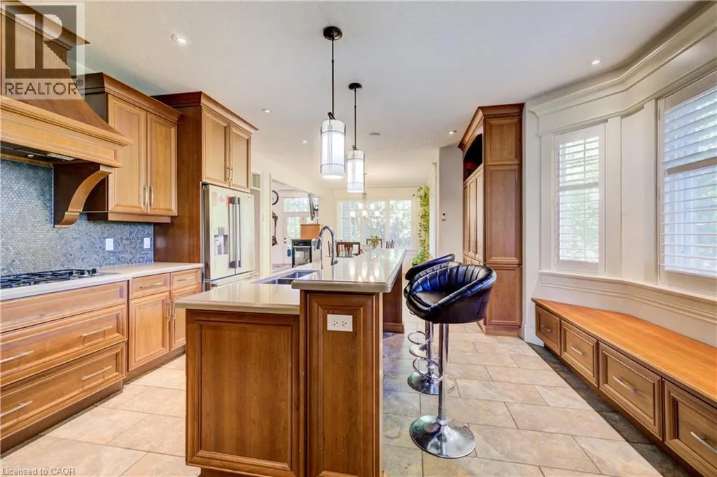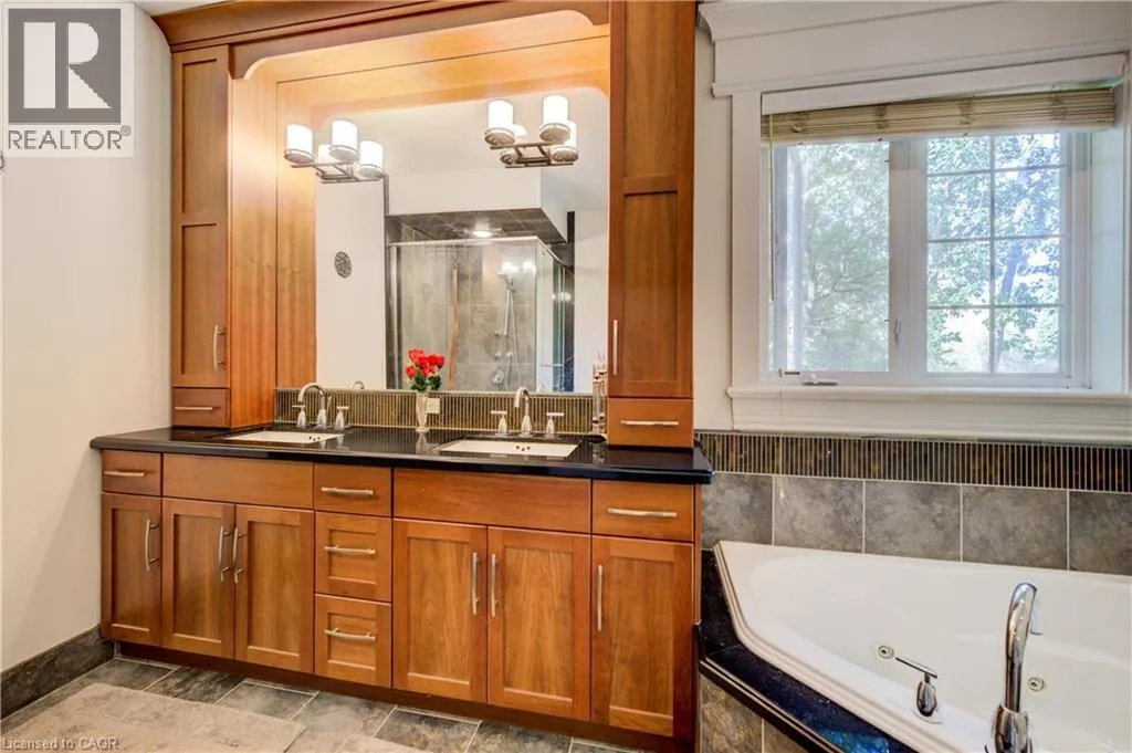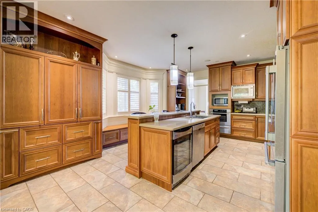 Deer Ridge Dr / Joseph Shoerg Cr EXECUTIVE HOME BACKING ONTO GREENSPACE. This stately stone-faced home combines elegance and comfort in one of Kitchenerâs most sought-after neighbourhoods. The main level features soaring ceilings, hardwood staircase, a versatile front room (ideal as a dining room, office, or den), and a chefâs kitchen with heated floors, custom cabinetry, built-in appliances (including gas cooktop), large island with breakfast bar, and cozy window seat. The kitchen flows to the dining area and a bright family room with a three-sided fireplace and walkout to a covered porch overlooking private, treed greenspace. The primary suite includes a walk-in closet and luxury ensuite with glass shower and jacuzzi tub. A powder room, laundry, and access to the double garage complete the level. Upstairs, the loft offers 2 spacious bedrooms with walk-in closets and a shared 5-pc bath. The fully finished basement has 9ft ceilings, heated floors, large windows, a rec room, 2 additional bedrooms (one with ensuite and walk-in closet), plus another full bath and storage. The landscaped backyard provides privacy with no rear neighbours, perfect for outdoor entertaining. Located between Riveredge and Deer Ridge Golf Clubs with quick access to trails, the Grand River, Hwy 401, and all amenities. Tenant(s) are responsible for heat, hydro, gas, water, tenant insurance, and hot water heater rental. A full application including credit check, credit score, and credit history is required for all applicants. Available immediately. (id:27476)