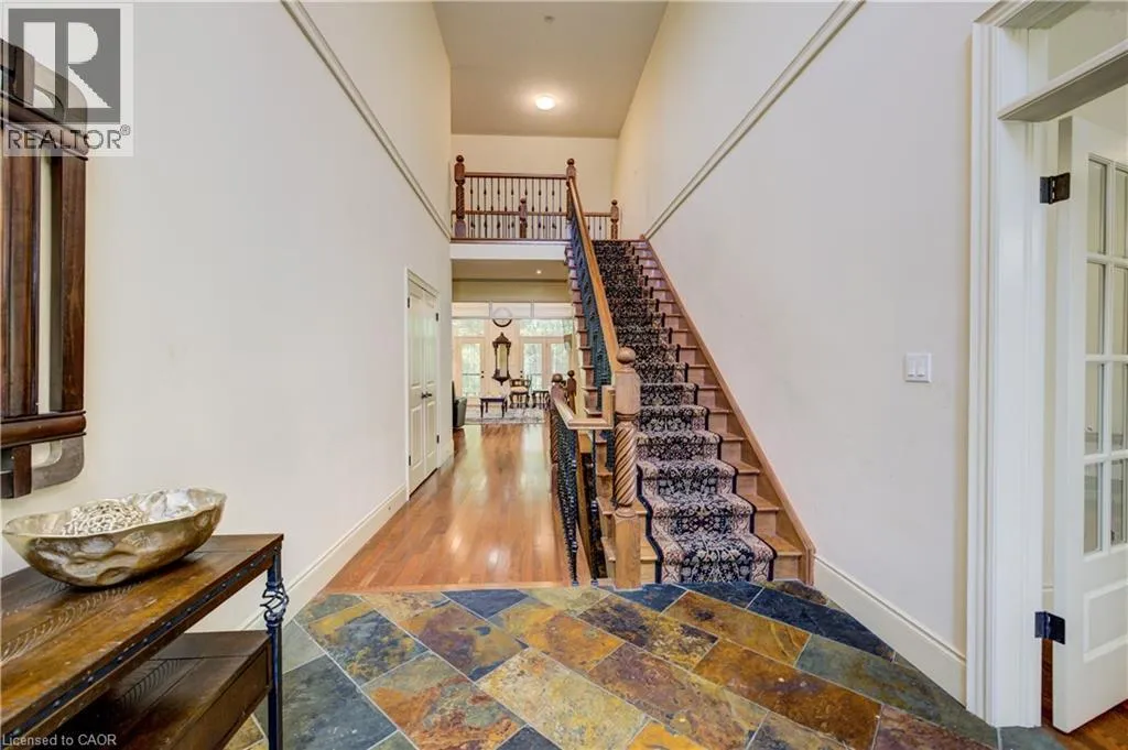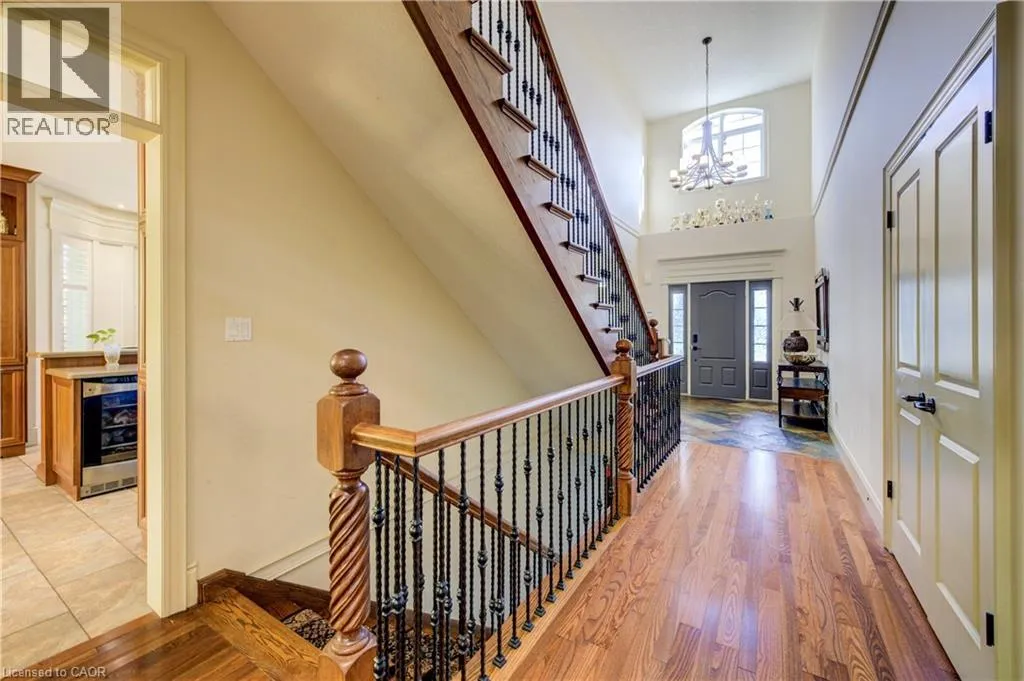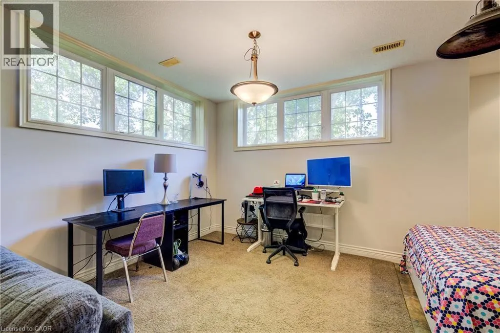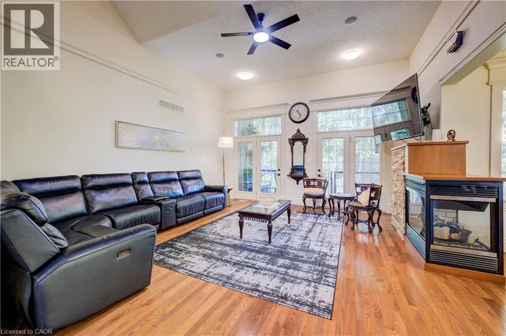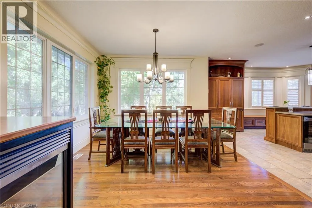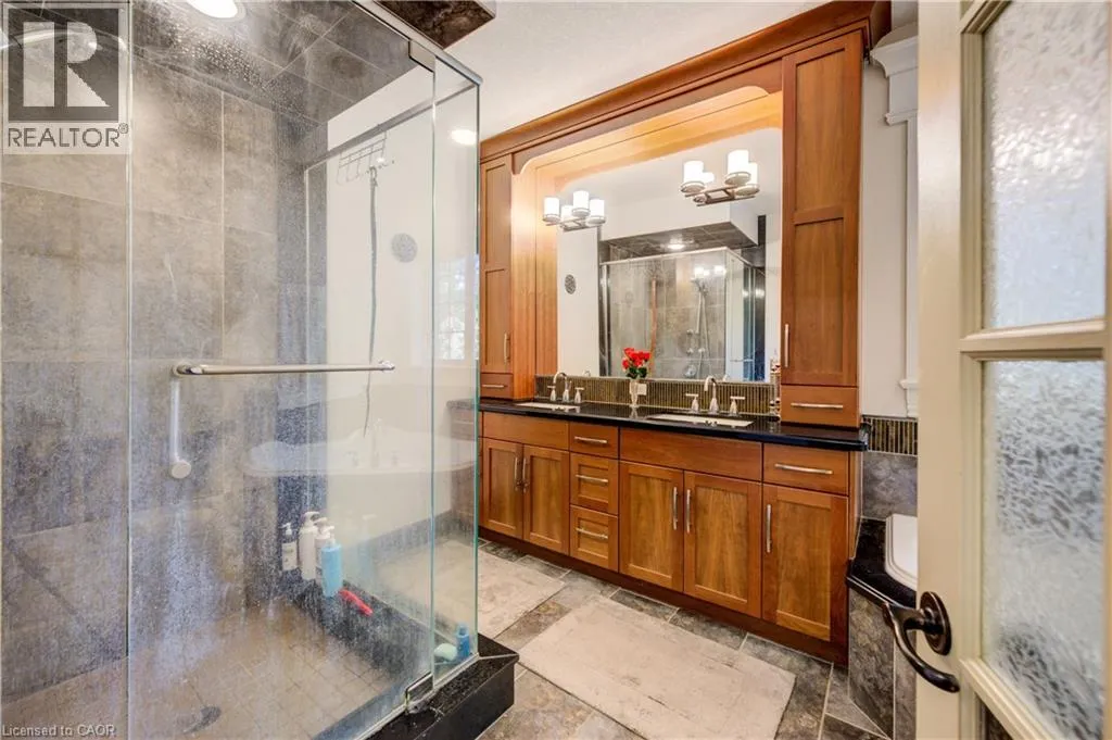 Deer Ridge Dr / Joseph Shoerg Cr EXECUTIVE HOME BACKING ONTO GREENSPACE. This stately stone-faced home combines elegance and comfort in one of Kitchenerâs most sought-after neighbourhoods. The main level features soaring ceilings, hardwood staircase, a versatile front room (ideal as a dining room, office, or den), and a chefâs kitchen with heated floors, custom cabinetry, built-in appliances (including gas cooktop), large island with breakfast bar, and cozy window seat. The kitchen flows to the dining area and a bright family room with a three-sided fireplace and walkout to a covered porch overlooking private, treed greenspace. The primary suite includes a walk-in closet and luxury ensuite with glass shower and jacuzzi tub. A powder room, laundry, and access to the double garage complete the level. Upstairs, the loft offers 2 spacious bedrooms with walk-in closets and a shared 5-pc bath. The fully finished basement has 9ft ceilings, heated floors, large windows, a rec room, 2 additional bedrooms (one with ensuite and walk-in closet), plus another full bath and storage. The landscaped backyard provides privacy with no rear neighbours, perfect for outdoor entertaining. Located between Riveredge and Deer Ridge Golf Clubs with quick access to trails, the Grand River, Hwy 401, and all amenities. Tenant(s) are responsible for heat, hydro, gas, water, tenant insurance, and hot water heater rental. A full application including credit check, credit score, and credit history is required for all applicants. Available immediately. (id:27476)