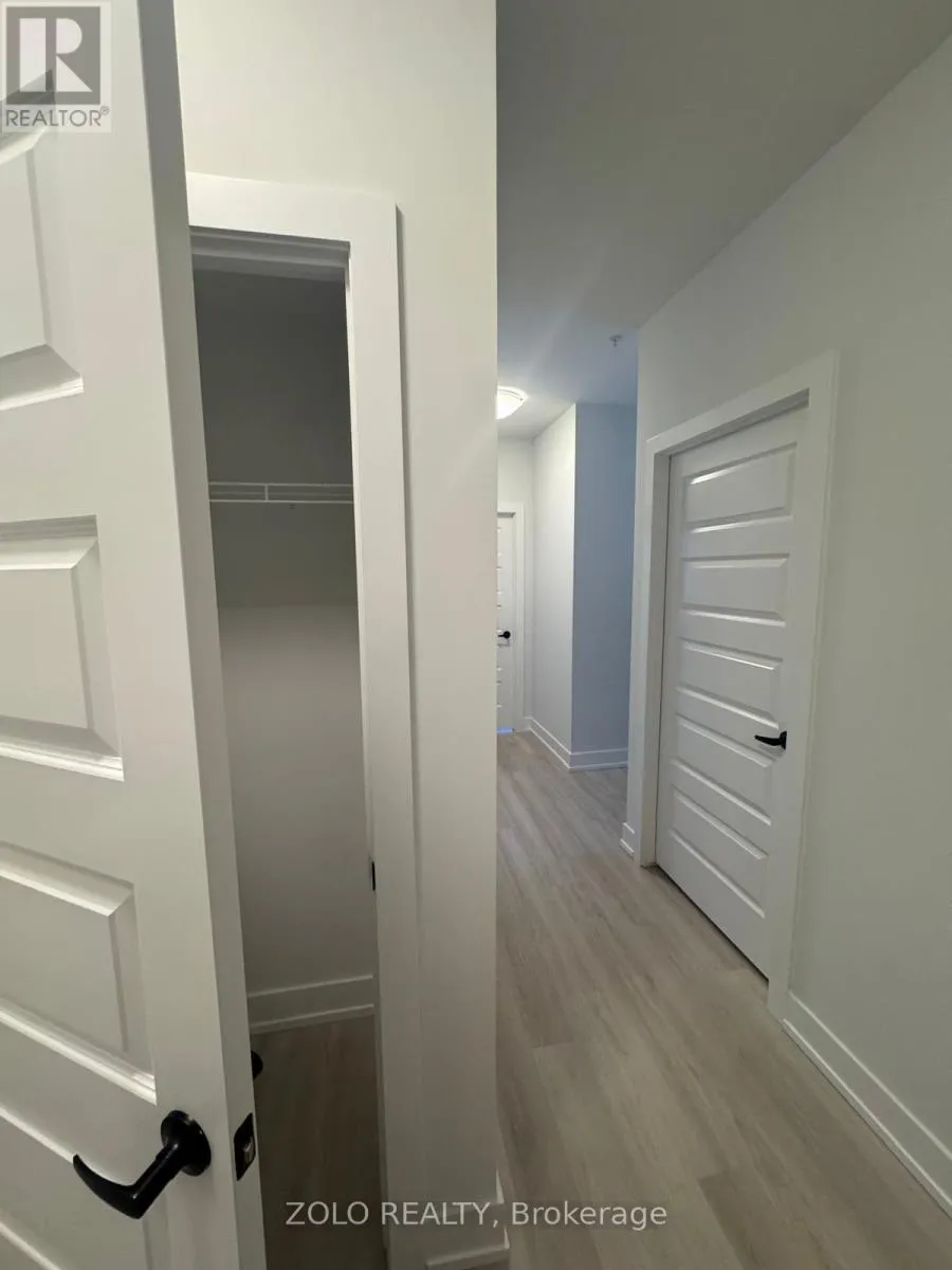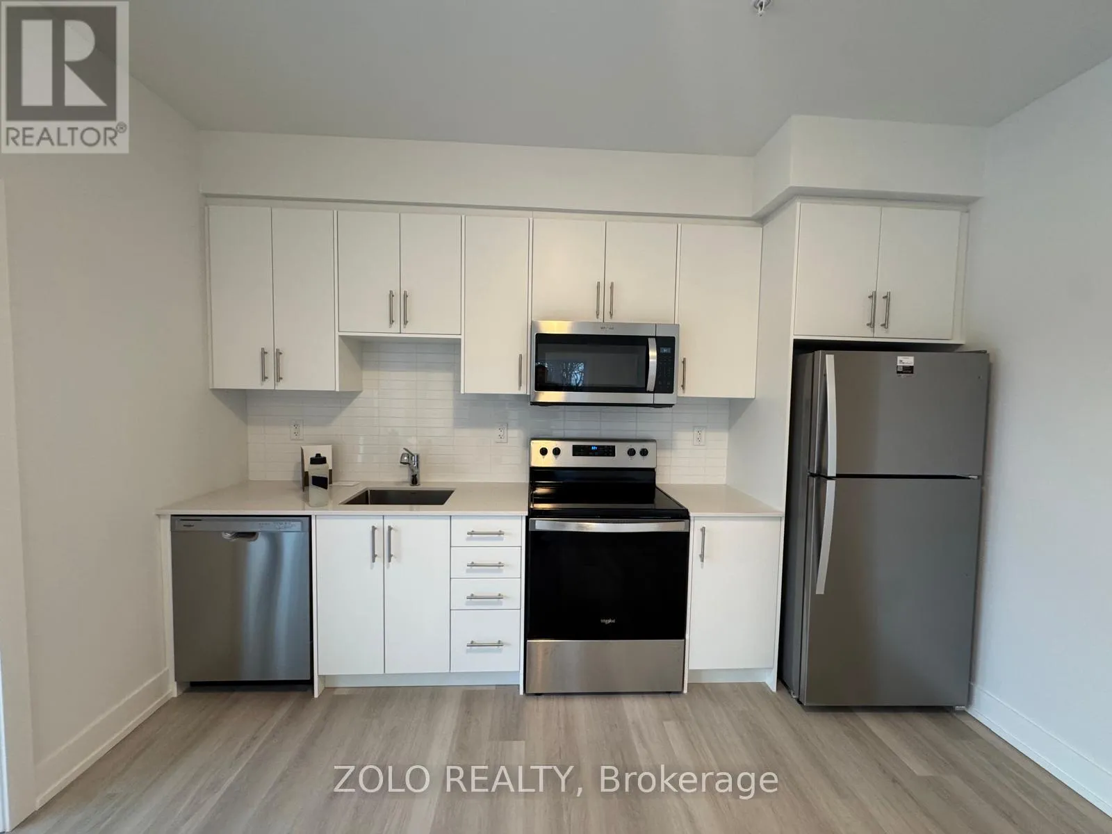 Cross Streets: Ottawa St N and Lackner Blvd. ** Directions: 1100 Lackner Place , 419 Kitchener N2A0M1. Welcome to this newly built, exceptionally bright CORNER-unit 2-bedroom, 2-bathroom condo in Kitchener's highly regarded Lackner Ridge community. Offering 930 sq. ft. of sophisticated interior living space plus a 170 sq. ft. L-shaped balcony, this suite blends modern comfort with a highly functional layout. The home features a spacious open-concept design, enhanced by contemporary modern finishes, stylish vinyl flooring, and large windows that fill the space with natural light. The upgraded kitchen is equipped with stainless steel appliances and ample cabinetry, providing both practicality and style within the main living area. Both bedrooms are generously sized and include walk-in closets. The primary bedroom features a private 3-piece ensuite and views of the surrounding greenery. Additional conveniences include in-suite laundry and a same-level storage locker, offering excellent accessibility. Step outside to the expansive balcony overlooking a peaceful wooded area-an ideal setting for relaxation, with frequent visits from local wildlife such as birds and deer. One underground parking space is included. Residents enjoy premium building amenities including a modern lobby, stylish residents' lounge, well-appointed party room, visitor parking, and outdoor seating areas. The location offers unparalleled convenience, with proximity to Walmart, Costco, Canadian Tire, Superstore, and walking distance to Food Basics, Rexall, and Dollarama. Commuting is effortless with easy access to Highways 7, 8, and 401, Grand River Transit (GRT), the GO Station, Downtown Waterloo, Wilfrid Laurier University, and the University of Waterloo. This vacant suite is available for immediate occupancy. (id:27476)