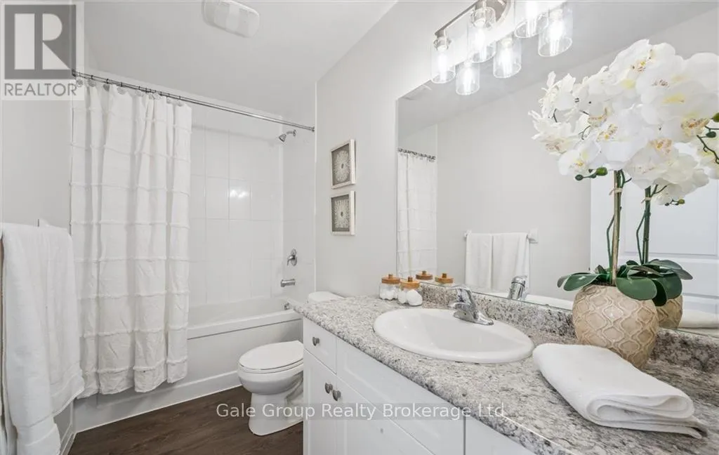 Cross Streets: King/Morrison. ** Directions: King Street East/Morrison Road. Step into this beautifully refreshed multilevel townhome, featuring exceptional versatility and modern comfort. This home features two bedrooms, two bathrooms, and a rare bonus of two parking spaces. The main floor room provides valuable flexibility and can serve as a third bedroom, home office, gym or an additional tv room, making it easy to tailor the space to your family's needs. The home has been freshly painted, new kitchen backsplash, new lighting throughout, with laminate flooring throughout for a clean, cohesive look. The bright, open kitchen opens to a terrace balcony. It also has a convenient upstairs laundry and two generously sized bedrooms. Centrally located in Kitchener, this property has quick access to Highway 8, the 401, Fairview Park Mall, Conestoga College, and everyday amenities. Move in ready and exceptionally functional, this is the perfect home for first time buyers, young families, or anyone seeking adaptable living in a prime location. (id:27476)